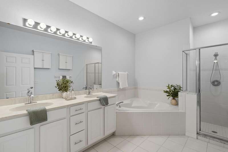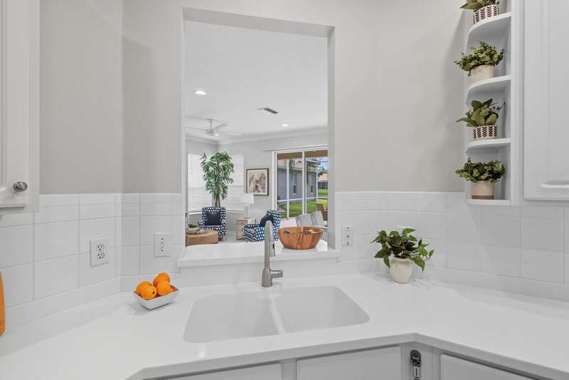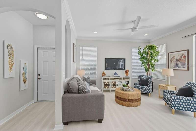 LAKEFRONT VILLA at Lakeridge Falls Welcome to one of Sarasota’s most desirable 55+ communities—Lakeridge Falls, known for its lush tropical landscaping, 16 shimmering lakes, and wonderfully updated clubhouse. A perfect location near to everything Sarasota has to offer… the lifestyle you dreamed about. This beautiful “Victoria model captures the essence of Florida living. From the moment you enter, your eyes are drawn to the captivating lakefront. High ceilings and elegant crown molding accentuate the main living spaces. New luxury vinyl plank flooring creates a seamless blend of warmth and sophistication. Step outside to your EXPANSIVE SCREENED LANAI (18x35)—a welcome surprise for any villa residence!. Designed for entertaining and unwinding, this outdoor retreat offers space for multiple seating areas, a hot tub spa, and features dimmable mood lighting for that perfect twilight ambiance. Imagine dining al fresco, hosting friends, or simply savoring quiet evenings overlooking the water. The chef’s kitchen is light and bright, complete with Corian counters, stylish designer cabinetry, new refrigerator, and breakfast nook. A thoughtful pass-through window connects the kitchen to the lake views, so even meal prep comes with a scenic backdrop. A built-in buffet cabinet and countertop provide a welcome convenience for entertaining. The Primary Suite is a private sanctuary, set apart by the split floor plan. Wake up to tranquil lake views, enjoy a spa-inspired bath, dual sinks, soaking tub, and step-in shower, plus a spacious walk-in closet. A second bedroom (also with walk-in closet) has a nearby full bath that ensures comfort for guests. Additionally, the flexible OFFICE/DEN can easily flex to become a third bedroom. Practical touches abound: a laundry room with storage cabinets, utility sink, and NEW MAYTAG washer & dryer; plus an OVERSIZED two-car garage with included chrome shelving, ceiling-mounted HVAC, and gas hot water heater. Life at Lakeridge Falls means enjoying a vibrant, active lifestyle. The beautifully updated clubhouse features a heated pool with lap lanes, fitness center, bocce ball courts, library, walking trails and even a unique sandy beach. Security is top-notch with 24-hour guarded front gate and resident-only entry systems. Best of all, your very reasonable HOA covers all grounds maintenance, so you can spend more time living the life you’ve imagined. The location is unbeatable— walking distance to Neighborhood Walmart, Publix, 5 minutes to Detwiler’s Farm Market, and just a short drive to UTC Mall, downtown Sarasota, world-famous beaches, and SRQ International Airport. Schedule your private showing today!