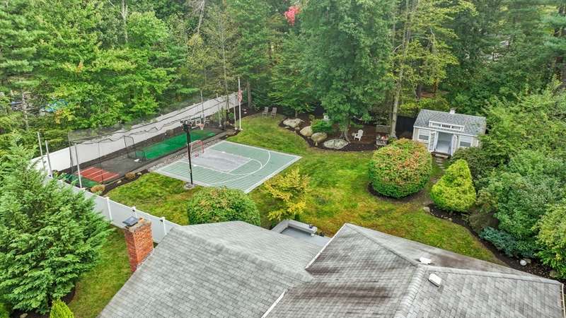 On a quiet cul-de-sac in North Hanover, 61 Deborah Road offers incredible amenities. The living room features a gas fireplace with herringbone marble, and a custom kitchen boasts high-end appliances, inset cabinetry, granite counters, built-in pet bowls, and ample storage. Upstairs are three bedrooms and a full bath. The finished lower levels include a media area, laundry, a Kaks basement system (mold-resistant flooring and walls), and a whole-house Humidex air circulation system. The backyard is built for entertaining with a sports court featuring custom sport court tiles for basketball, hockey & more, a full-size retractable hurricane-resistant batting cage, stadium lighting, a heated and insulated she shed/man cave, an additional storage shed, and a fenced yard. In the heated 2-car garage there is a generator hookup with Generac generator.