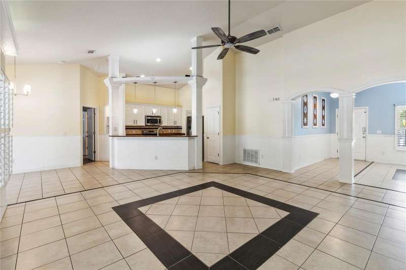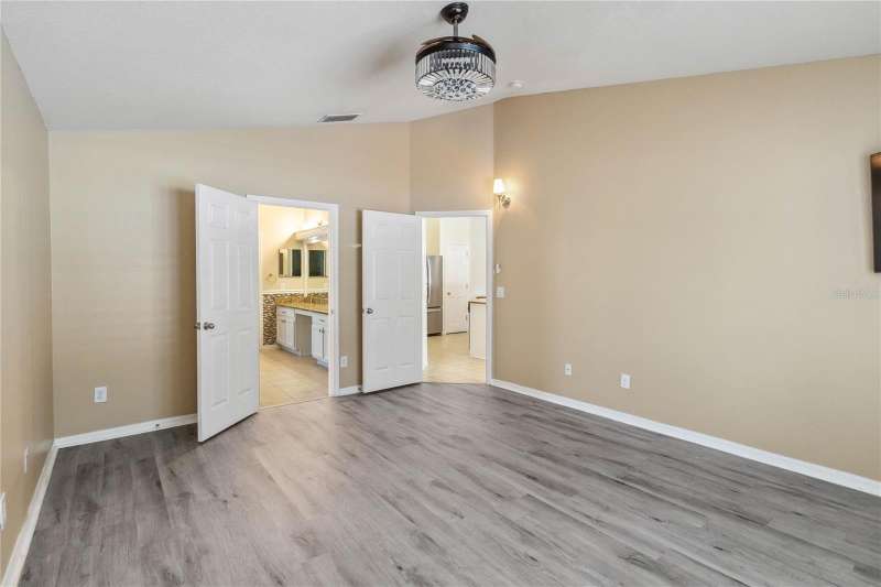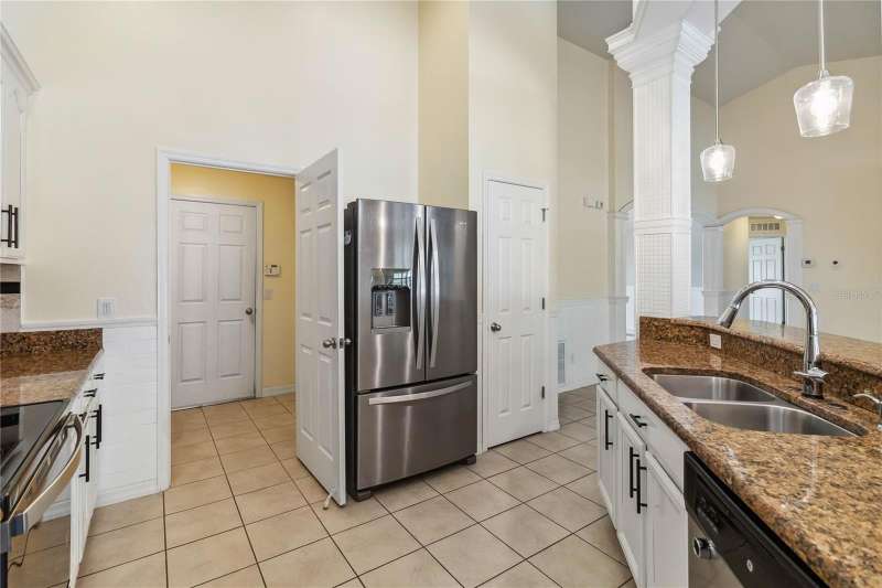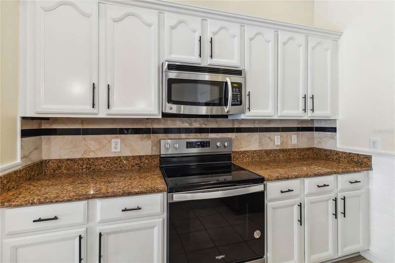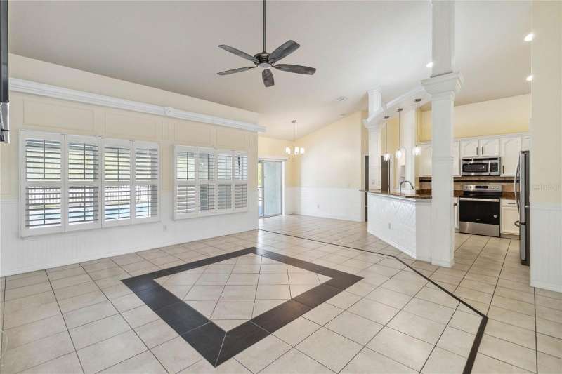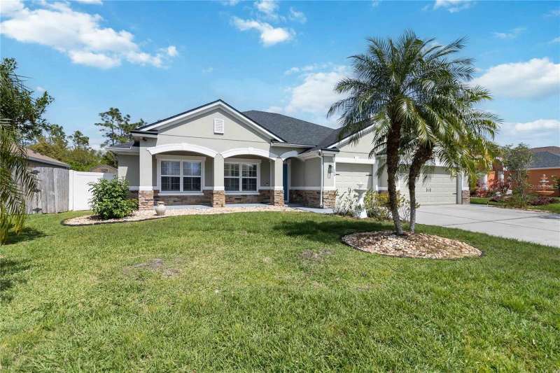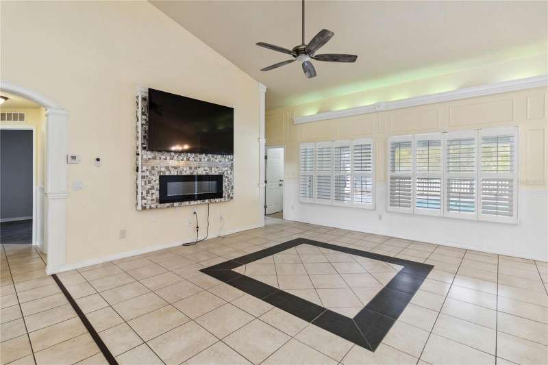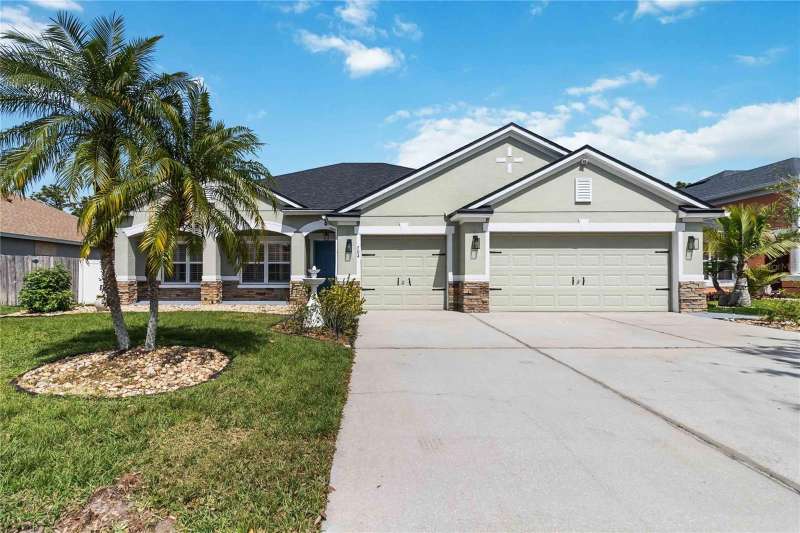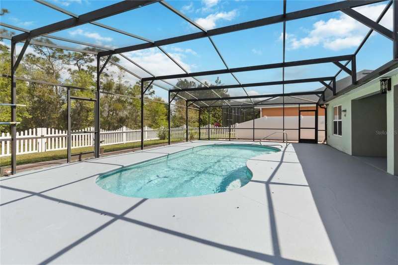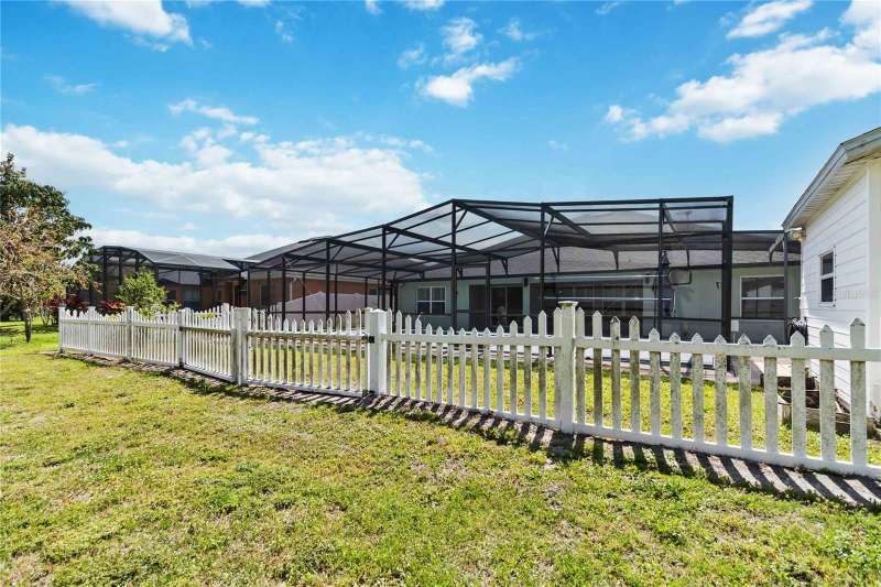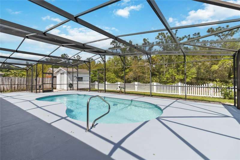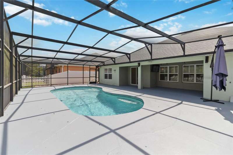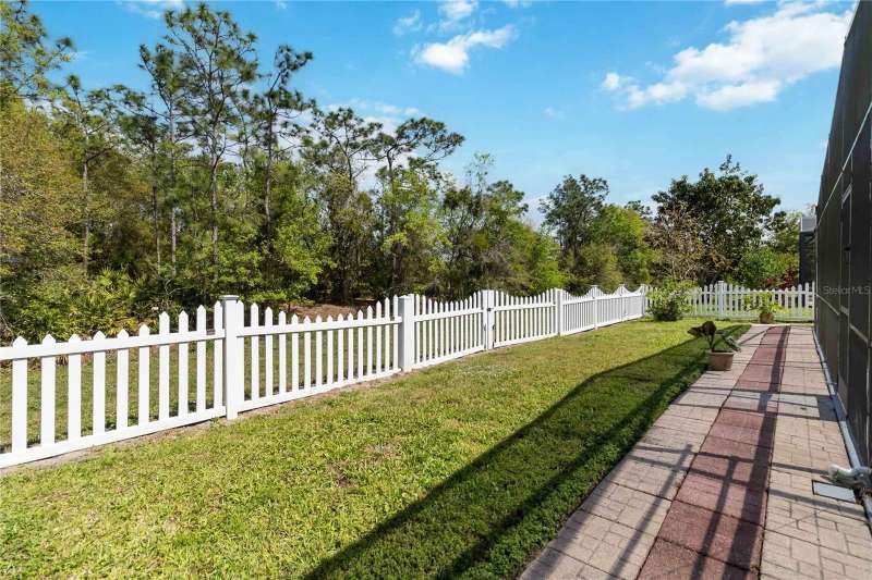 Under contract-accepting backup offers. This MOVE IN READY POOL HOME is loaded with upgrades, including a NEW roof (2022), solar attic fan, crown molding throughout, fresh interior paint, vinyl plank flooring in bedrooms, and ceramic tile in main areas. The kitchen features granite countertops, freshly painted cabinets with new hardware, stainless steel appliances, and BRAND NEW washer, dryer, refrigerator & stove. Enjoy the spacious open floor plan with a kitchen that overlooks the living room, kitchenette, and dining area. The split layout offers privacy, and the updated primary suite includes granite counters, a walk-in shower, and a stand-alone soaking tub. Relax in your screened-in, heated saltwater pool with a covered lanai and no rear neighbors—backing to a serene conservation area. Extras include a Taexx pest control system, smart thermostat, floating electric fireplace, irrigation system, and a shed with urinal and utility sink. Community amenities include a pool, tennis court, and playground. Low HOA dues and NO CDD!!!! Prime location near the Turnpike, shopping, and dining! Call to schedule a private showing today!