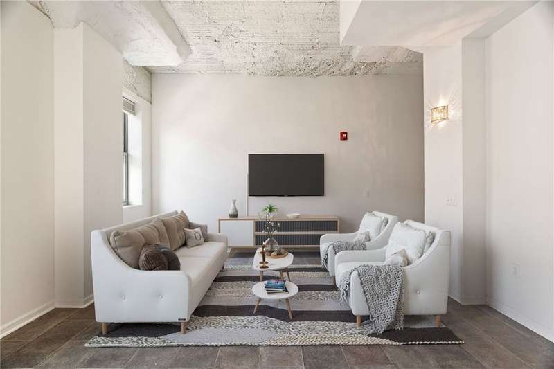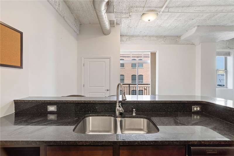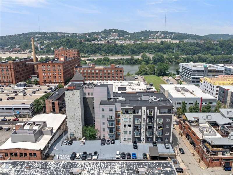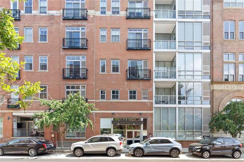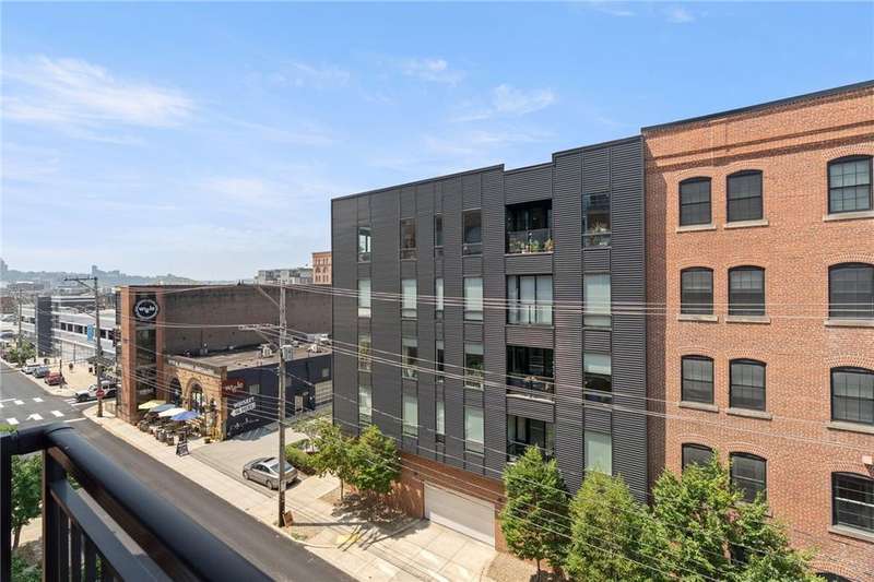 Experience urban living in this stylish 2-bedroom condo in the historic Otto Milk building, complete with 3 deeded parking spaces. Soaring ceilings, exposed ductwork, and open-concept living capture the Strip District's modern-industrial vibe. The kitchen features stainless steel appliances, granite countertops, and a breakfast bar, flowing seamlessly to the living and dining areas with a Juliette balcony overlooking Smallman Street. Enjoy the convenience of in-unit laundry, secure building access, fitness center, bike storage, and private storage locker. Just steps to renowned restaurants, markets, boutiques, riverfront trails, and Downtown attractions. HOA includes water, sewage, trash, building maintenance and common insurance. Pet friendly building.