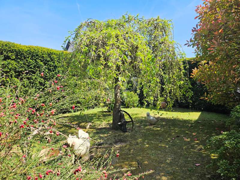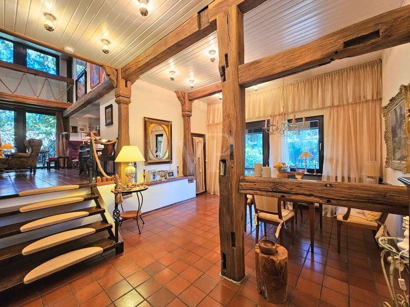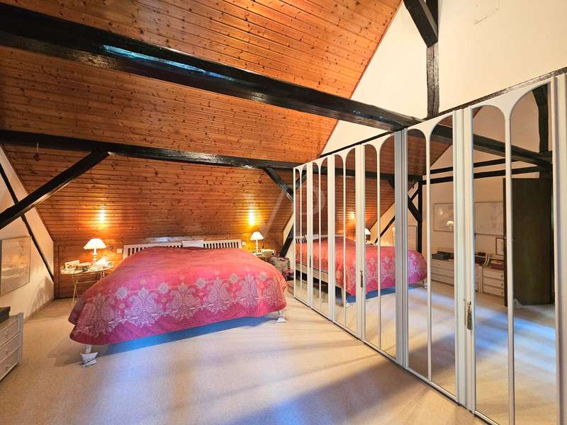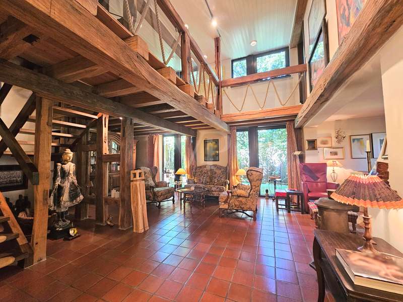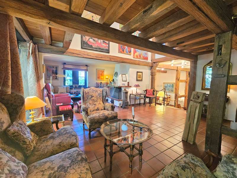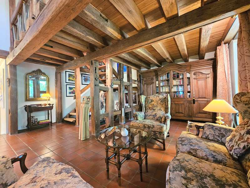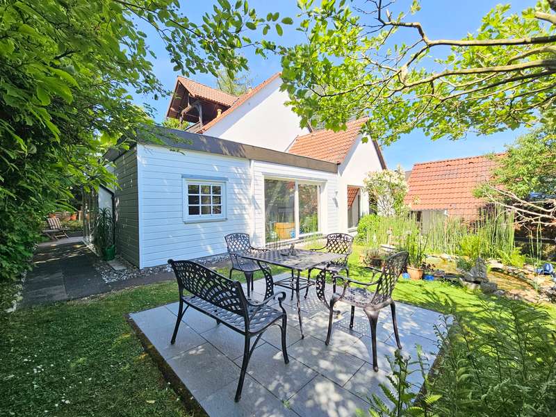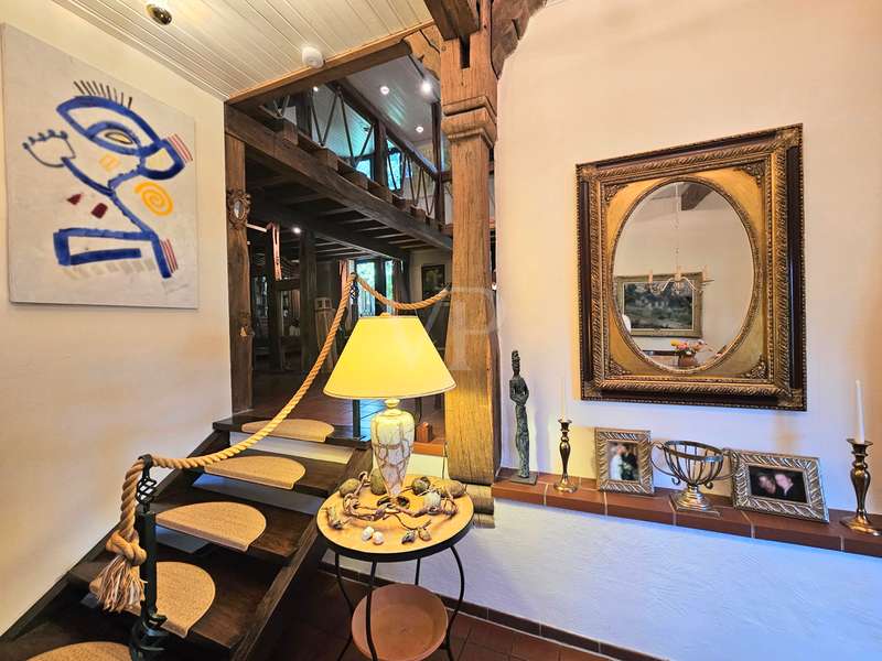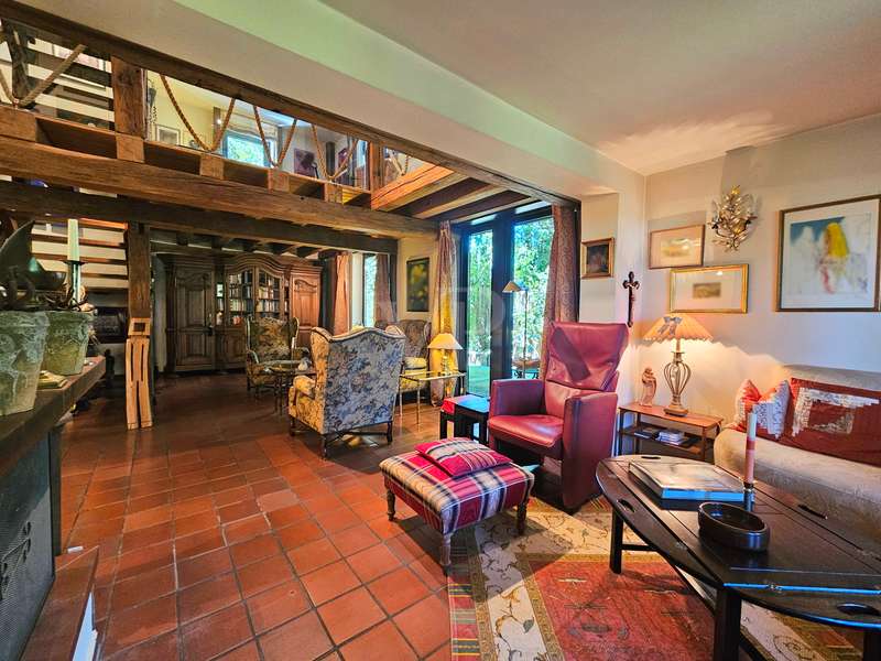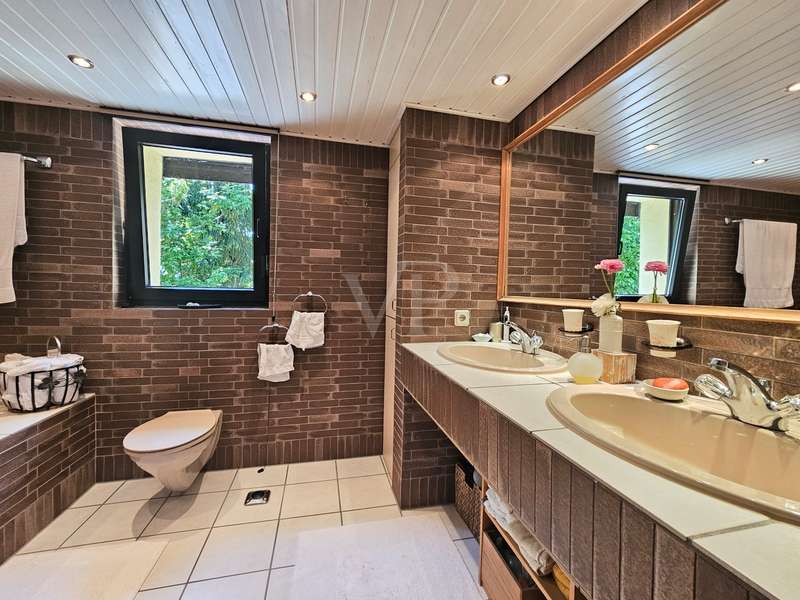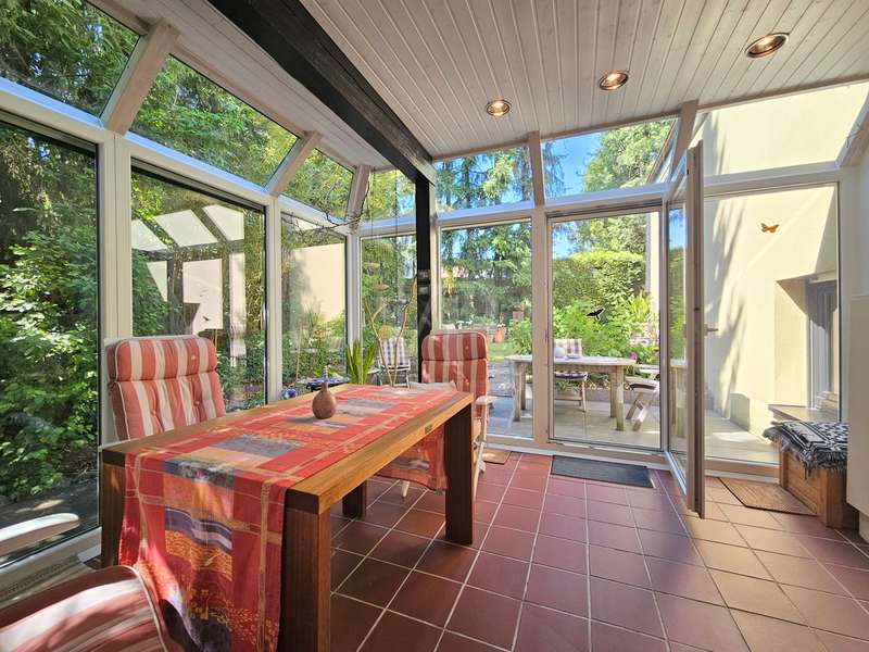 In a popular location in Usingen-Eschbach, a real collector's item awaits you. Not only the nearby Eschbach cliffs, but also the surrounding idyllic Taunus landscape invite you to enjoy leisure activities and relax in nature. The main shopping facilities, kindergarten and elementary school are within walking distance. Originally built as a barn in 1938, this property was converted into a residential house in 1978 with great sensitivity for the original building fabric - today it presents itself as an enchanting gem that will delight individualists, couples and small families alike. In 1995, the garage and conservatory were added, which was replaced with plastic in 2010. In addition, the heating, windows and most recently the kitchen have been renewed since 2000 and the north side of the house has been completely clad in natural slate. As soon as you enter the property, which is protected by a dense hedge, a world of its own opens up, sheltered from prying eyes - a place of peace, retreat and inspiration. This house is a symbiosis of history and style. The special architectural feature of this house lies in its mixture of stone walls up to 60 cm thick and the half-timbered construction typical of the region. Particularly impressive are the church beams, some of which are over 200 years old, which lend the open-plan living area a unique atmosphere and combine the charm of times gone by with modern living comfort. Here you can spend moments of coziness and relaxation in front of the fireplace. There are 6 rooms with 3 bedrooms, 3 bathrooms, a guest WC, a gallery and the very private wellness area with pool and steam sauna as well as a conservatory on a total of 3 living levels with a living area of approx. 210m². The spacious living area opens up to the dining hall - the communicative meeting point for family and friends - as well as to the two upper floors, which are connected by an open concept. The open gallery creates an airy feeling of space and also offers room for art, books or personal treasures. The bedroom under the roof has a separate WC and a loggia - ideal for that first coffee in the morning with a view of the greenery. Another highlight is the stylish indoor pool area with its own shower and steam sauna. Floor-to-ceiling windows and a sliding door open up the view into the well-tended garden - for the feeling of swimming in the middle of nature. Experience relaxation and wellness in your own private sanctuary. Right next door, the conservatory (added in 2010) offers a retreat with plenty of light and atmosphere as well as access to the garden at any time of year. The garden is a green paradise with several seating areas, a romantic pond and lovingly placed details - all embedded in complete privacy - a garden idyll with absolute privacy. Enjoy your private time-out from everyday life here, be it for reading, gardening or celebrating with friends. The large garage offers space for two vehicles and additional storage space in the roof This house is not an off-the-peg property - it is a home for people with a desire for something special. A place to feel at home, which celebrates individuality and offers the highest quality of living. The entire house is characterized by loving details. A truly unique property in a popular residential area. Experience this extraordinary home for yourself - we look forward to hearing from you!