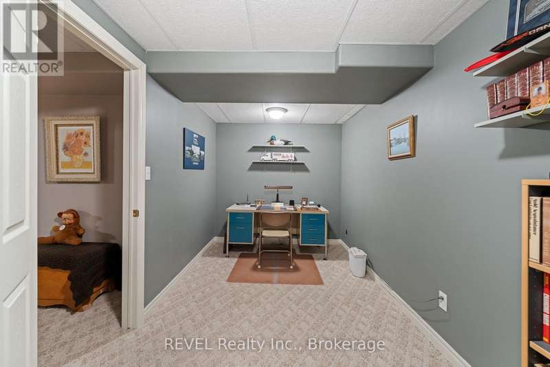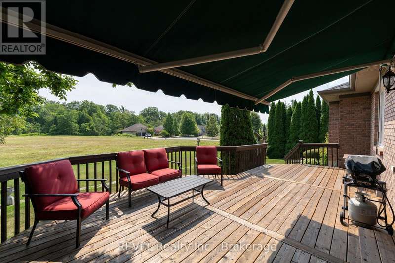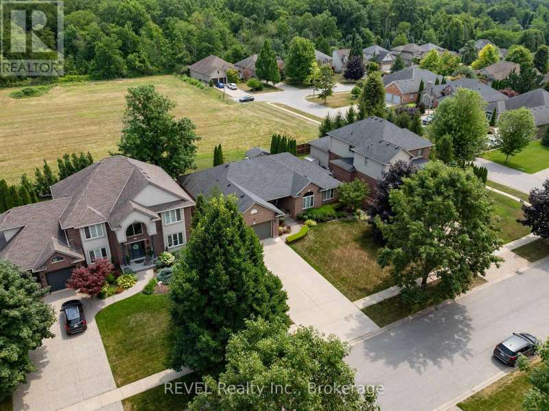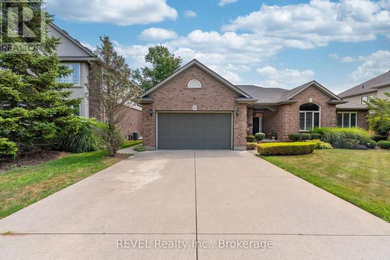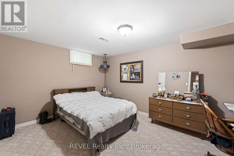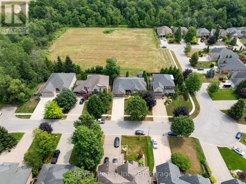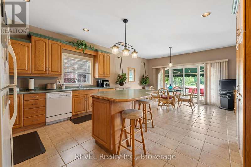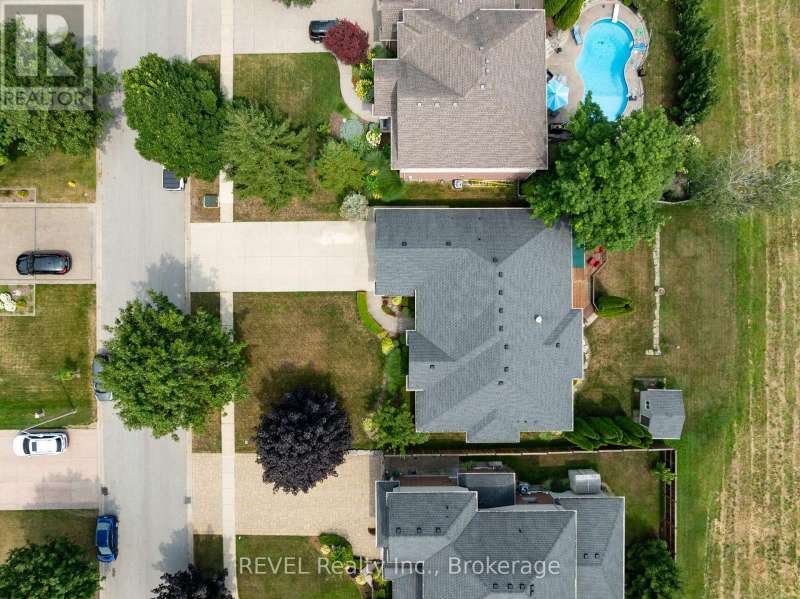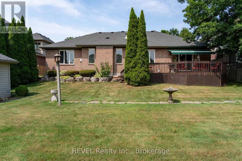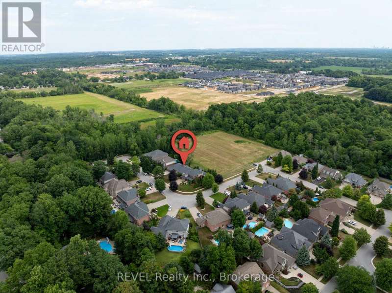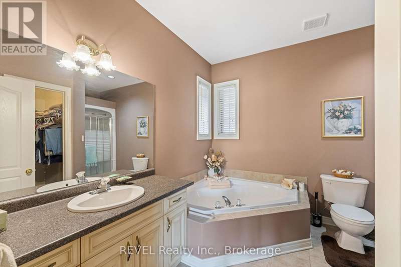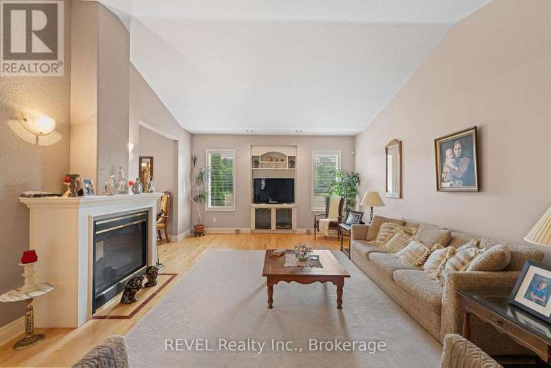 Welcome to this beautifully maintained, 2352 sqft one-owner brick bungalow in desirable Fonthill neighbourhood, built by Serafino Homes in 1998. Offering timeless curb appeal and thoughtful design, this home features 9-ft ceilings with cathedral ceilings in the main living and dining areas, creating a bright and airy feel. The living room and formal dining room share a cozy two-way gas fireplace, while the open-concept kitchen and dinette lead to a rear wood deck perfect for entertaining. The main floor boasts a spacious primary bedroom with walk-in closet, 4-pc ensuite, and its own gas fireplace. Two additional bedrooms, a 4-pc main bath, powder room, and main-floor laundry add convenience, while hardwood flooring flows throughout the level. The fully finished basement extends the living space with a spacious rec room, cozy family room, kitchenette, additional bedroom, office, 3-pc bath, and utility room. Practical updates include a roof (2015), furnace and A/C (2021), and a rental water heater (2018). Additional features include central vacuum, concrete driveway, and a 2-car garage. Set in a quiet neighbourhood close to all amenities, this home blends comfort, functionality, and location ready for its next chapter. (id:7434)