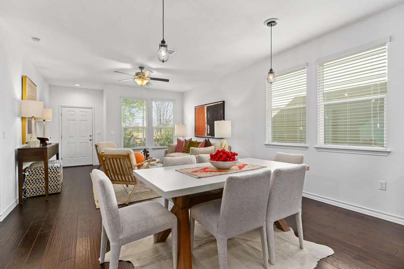 Charming two-story home in the 51 East subdivision just minutes from Mueller and Downtown! You'll love the modern exterior, open floor plan, and private backyard. Neighborhood amenities and conveniently located close to top restaurants, shops, farmer's markets, outdoor activities, and so much more. Washer + Dryer + New Refrigerator and Solar Panels included.