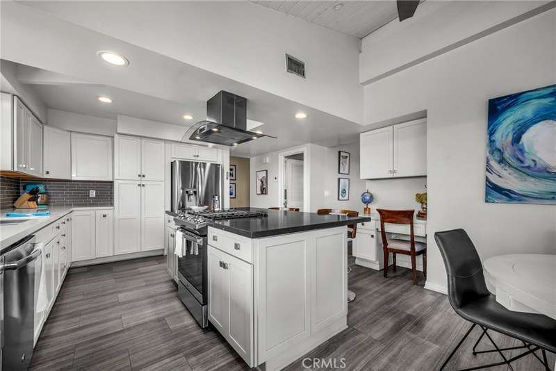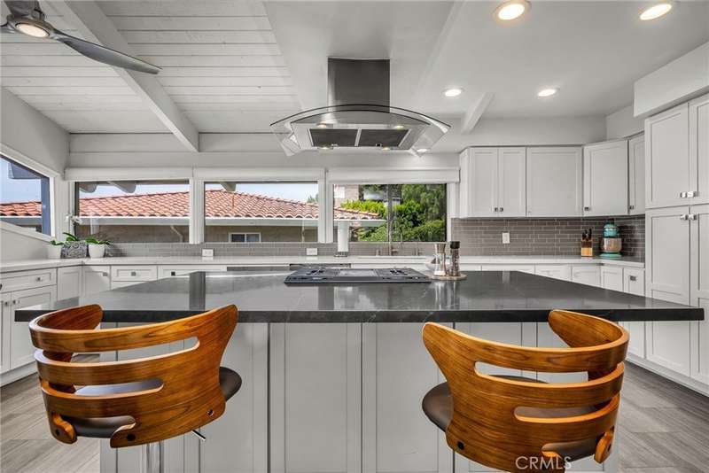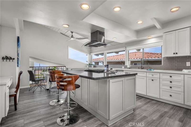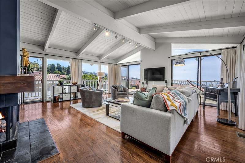 Huge price reduction!! Fabulous ocean and Catalina Island views from this contemporary 5 bedroom, 5 bathroom home in Upper Lunada Bay. Tons of light floods in from windows everywhere, to enjoy colorful sunsets and ocean breezes. Well placed decks surround the living room and off 4 of the bedrooms. Magnificent kitchen was recently remodeled – quartz countertops, stainless steel appliances, huge island, tall large expansive windows and an ocean view. One bedroom/family room has been converted to an ADU with a separate entrance if wanted. ADU/family room has a cozy fireplace, French doors with private patio, small fridge and built in cabinets plus remodeled private bath. Large master with private bath also includes a private entrance with access to the backyard. Two bedrooms share a “jack and jill” bathroom. House includes Air Conditioning, newer heater (2023), newer roof (2024 - original Spanish tiles used with all new underlayment). Whole house water filtration system recently installed. Attached large two car garage with additional storage. House is partially remodeled and ready for a new owner to make it perfect. Palos Verdes Estates is well known for its top ranked schools, incredible coastline, and quaint small town feel including concerts in the park, local small restaurants and a small local grocery store... And a recently opened Coffee Shop and Creamery!