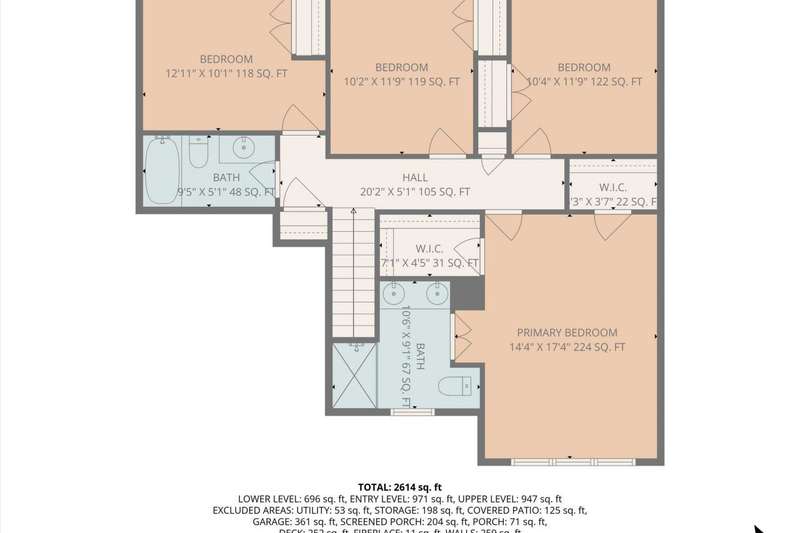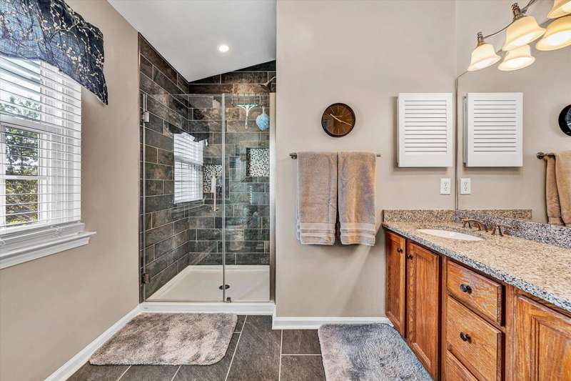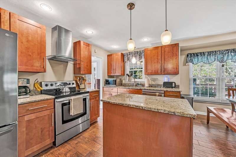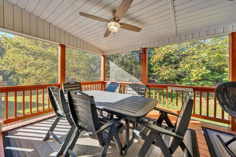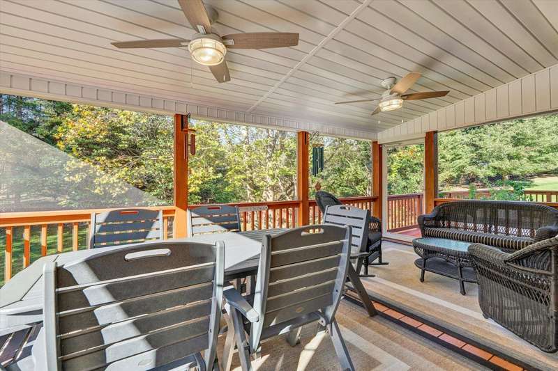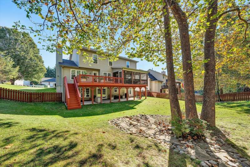 Beautifully maintained 5 bedroom home in quiet, very desirable neighborhood. Open kitchen to dining room and family room w/granite and custom cabinetry. Lovely screened porch for relaxing and dining opens to large deck and fenced back yard with lots of privacy. 4 bedrooms upper level including the primary bedroom w/ensuite bath. Lower level with BR, full bath and family room/game room. Excellent school district. Convenient location. Numerous upgrades including new roof-2019, new windows-2021, HVAC main and lower units replaced -2021, screened porch addition -2021, leaf filter gutters - 2025, new hot water heater -2024. Gas logs pass ''as is''.