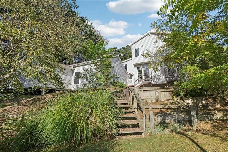 This Home is a Must-See! The property sits on 1 acre of land which includes a parcel to the left side of the home. There is a large 2 car detached garage beside the home and it has tall garage doors that can accommodate a truck and it has a storage room plus plumbing. Beautiful large backyard! The homes 1st floor boasts a sunken Great Room with high ceilings and a fireplace plus 2 glass doors to the backyard. The lovely dining room opens into the eat-in-kitchen. The laundry room is off of the kitchen and it could be turned into a office or a 1st floor bedroom. Full bathroom on 1st floor. The Living room at the homes' entrance is currently being used as a office. There are 4 bedrooms on the 2nd floor w/2 full bathrooms. The primary bedroom has its own full bathroom. Garage has a storage room in back & also has a toilet & a ladder to 2nd floor for storage. New furnace (2024), H2O (2023). Large backyard for relaxing or entertaining and playing games.Home Warranty included in sale.