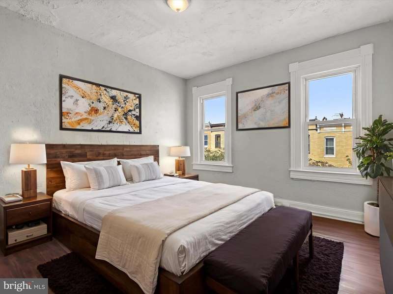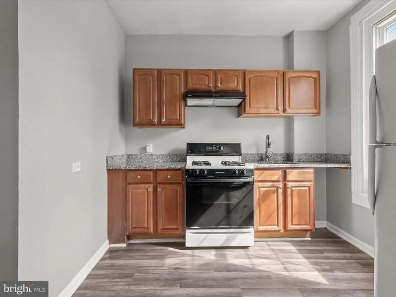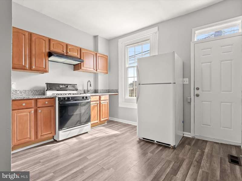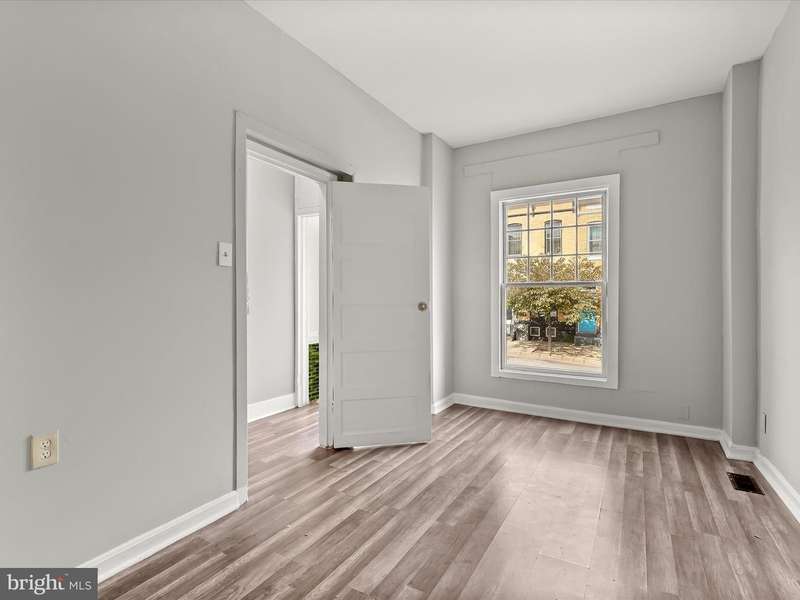 This 4-bedroom, 1.5-bath home offers historic details and practical updates, including a fresh neutral color palette throughout, new stair carpet, and a newly installed cement rear patio. The entry vestibule retains its original tile, leading to the main level with newer wood-look vinyl flooring for easy upkeep. A bright bedroom sits at the front of the home, followed by a living room that opens to the kitchen with a gas range and granite countertops. From here, step out to the fenced rear patio, a potential parking pad. A half bath completes the main level. Upstairs, a skylight brings light to the hallway connecting three bedrooms and a full bath with a tub/shower combination. The unfinished basement provides plenty of storage space and laundry area. The location offers convenient access to Patterson Park, the Highlandtown arts and shopping district, Oriole Park at Camden Yards, and Lexington Market. Nearby public transit options include the Johns Hopkins Metro station and the Charm City Circulator. Enjoy city living with green space, local culture, and everyday conveniences right at your doorstep in Patterson Park. Note: Select interior photos have been virtually staged.