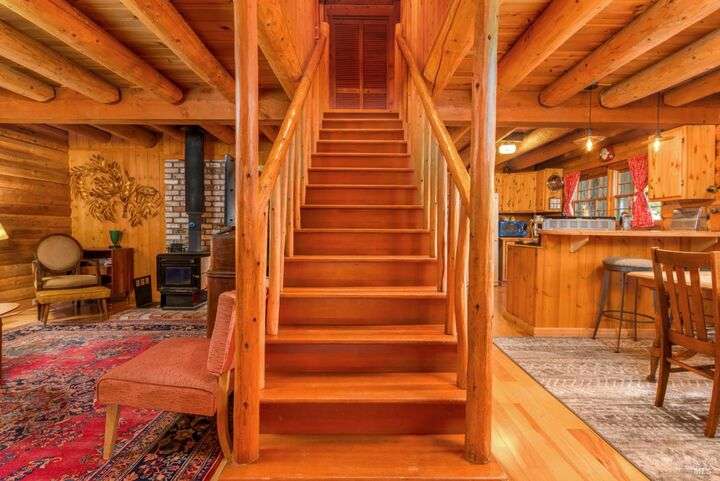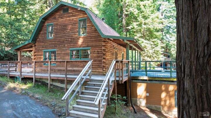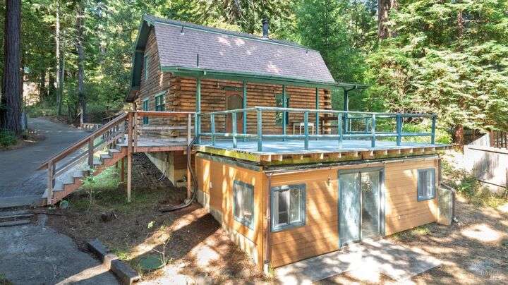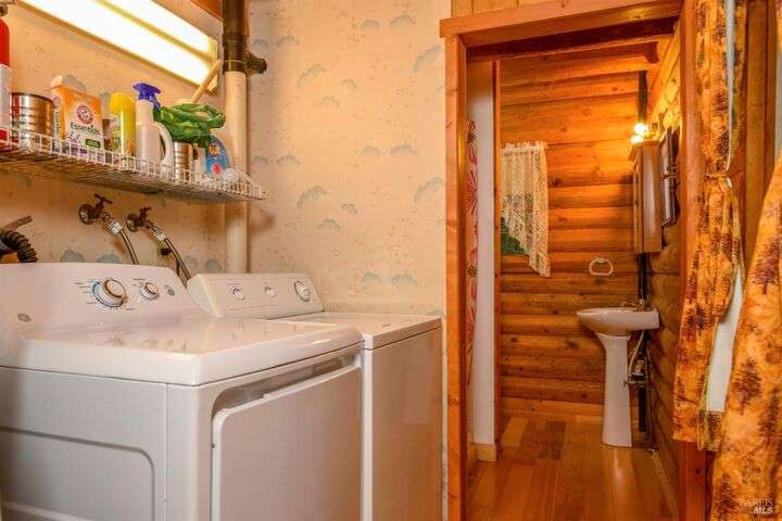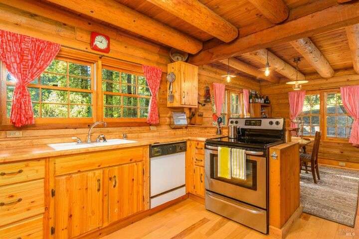 Darling log cabin home. This cozy 2 BD/3 BA log home with pine floors and log beams throughout is straight out of a story book. The warm interior provides a cozy country retreat. Home features a large wrap around deck and covered front porch. The back deck is large and sunny - perfect for entertaining or just relaxing amongst the trees. Below the deck there is a large workshop space with half bath, that could have multiple uses - art studio, yoga/exercise room, media/game room with full bath - bring your imagination. The redwood fairy ring in the yard has a paved seating area to enjoy the serenity of the forest. Whether your are looking for full time living or a sweet getaway on the coast, this home is conveniently located close to the town of Gualala, beaches and a community park. Home being sold fully furnished.