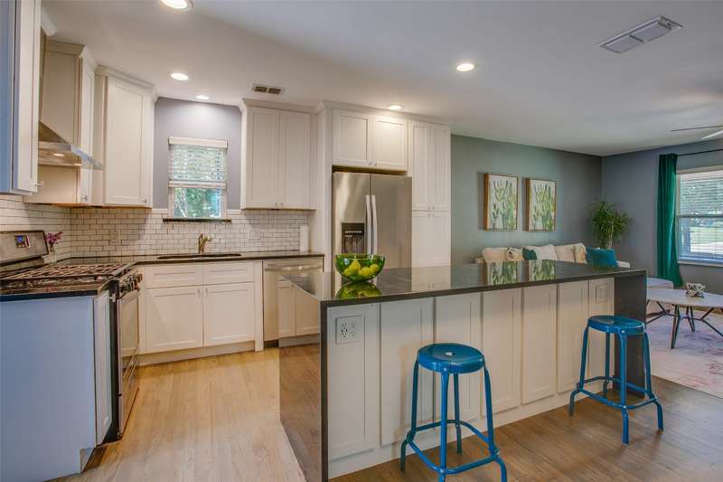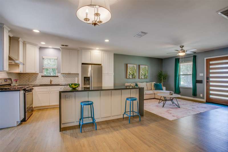 Eligible homebuyers may receive up to 3% of the purchase price for their primary residence and up to $7,500 toward closing costs!!!! Nestled on a deep lot in the heart of Oak Cliff, this adorable home blends character with modern updates. Step inside to find beautiful hardwood floors, an airy open-concept living space, and a sleek, fully updated kitchen with a spacious island, granite countertops, stainless steel appliances, and a gas rangeperfect for everyday cooking or entertaining. The stunning bathrooms and thoughtful finishes throughout add a touch of luxury, while the large backyard offers endless opportunities for relaxing, gardening, or gathering with friends. Completely renovated in 2017including a new roof, plumbing, electrical, windows, HVAC, and morethis home also boasts a fresh exterior paint job for crisp curb appeal. Bonus: The refrigerator, washer, and dryer all convey with the property, making this home truly move-in ready. All just minutes from Bishop Arts, shops, dining, and easy access to I-35.