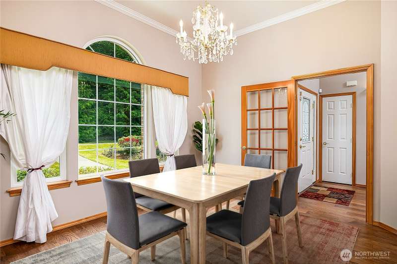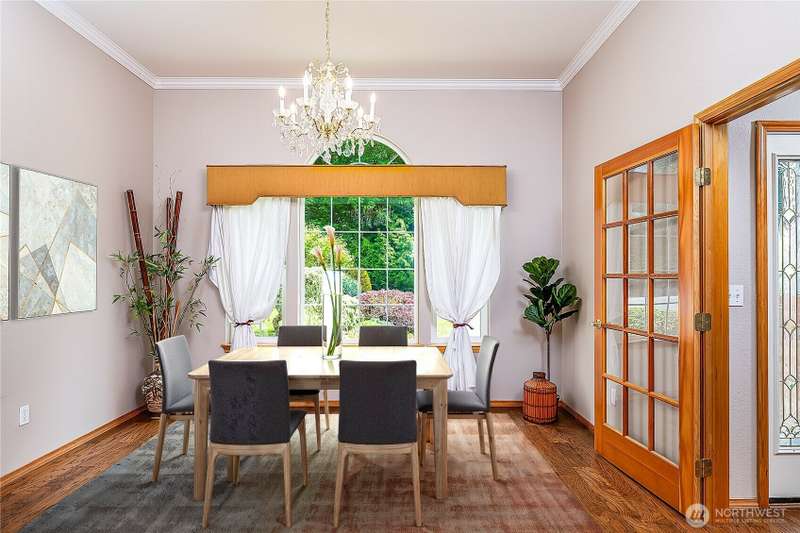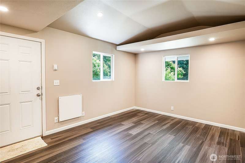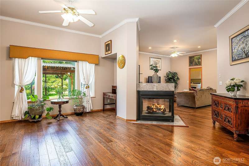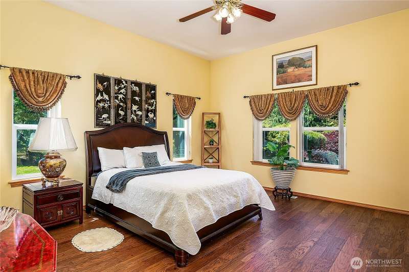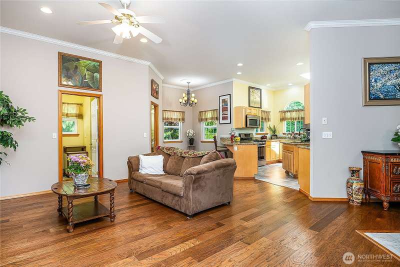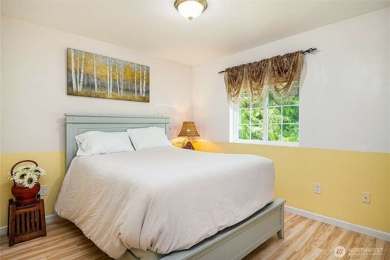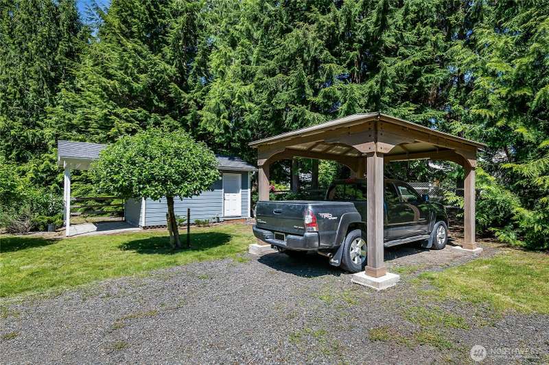 Tucked away at the end of a quiet cul-de-sac this beautifully updated retreat sits on nearly 2.5 private wooded acres filled with mature fruit trees and natural charm. The main home features fresh interior paint, new wood and tile flooring granite counters and thoughtful upgrades throughout. A finished heated studio offers ideal flex space for a home gym art studio or remote office. Beyond the electric gate, a charming guesthouse—formerly a thriving Airbnb—includes its own yard, patios, A/C, and new septic. The stunning backyard boasts a tiled fire pit, gazebo, garden paths, and room to play, garden, or entertain. Minutes from bases, ferries, and downtown Silverdale, this is a rare blend of comfort, flexibility, and Pacific Northwest beauty