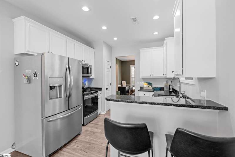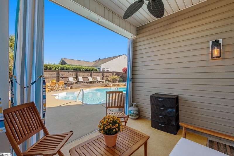 Welcome to 102 Durand Ct, a beautifully updated home in the desirable St. James Place neighborhood, zoned for the award-winning Riverside School District. Thoughtful design and modern upgrades make this home ideal for both everyday living and entertaining. The main level includes a spacious primary suite with a luxurious en-suite bath and walk-in closet, plus a second bedroom and full bath—perfect for guests, extended family, or a home office. Upstairs are two more bedrooms and a loft overlooking the living area below, offering flexible space for a media room, study, or playroom. Updates include designer lighting throughout, a remodeled laundry room with custom storage and hanging space, and a butler’s pantry cleverly tucked beneath the stairs. The upstairs bathroom has also been renovated with flexibility in mind, currently toddler-friendly but easily adaptable. Kitchen and laundry appliances—including washer, dryer, and beverage fridge—remain with the home. Major systems are current: the downstairs HVAC was replaced in 2023, the upstairs unit is new in 2025, and the roof was replaced in 2017. The in-ground pool has been updated with a brand-new 2025 liner, ready for years of enjoyment. Café lights around the pool create a warm, inviting atmosphere for evening swims or entertaining. A covered patio provides a shaded space for dining or relaxing. The St. James Place community adds to the appeal with HOA-included lawn care, sidewalks for evening walks, and a prime location near Pelham Road restaurants, conveniences, and quick access to I-85 for commuting. This home is listed by owner/agent. For more information please call Maggie Maher Laterza at 864-243-7424 or email Maggie@WilsonAssociates.net