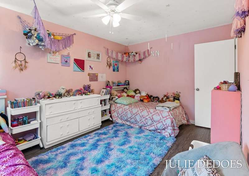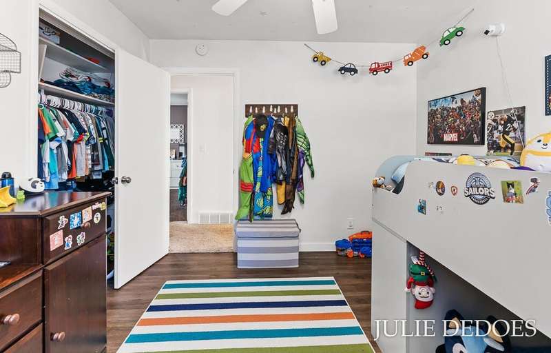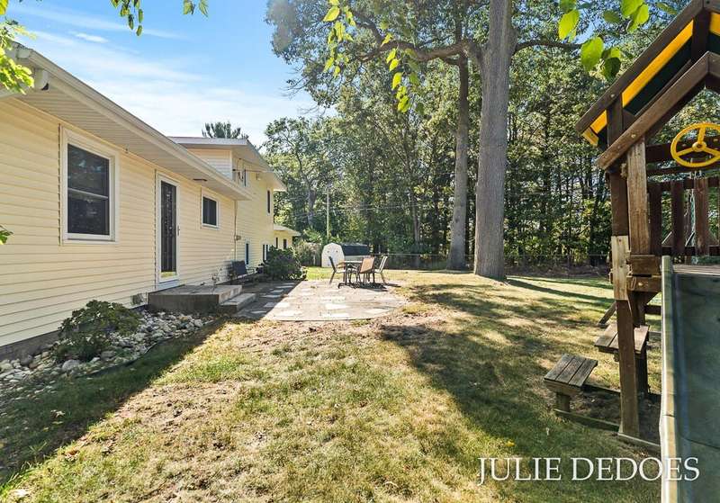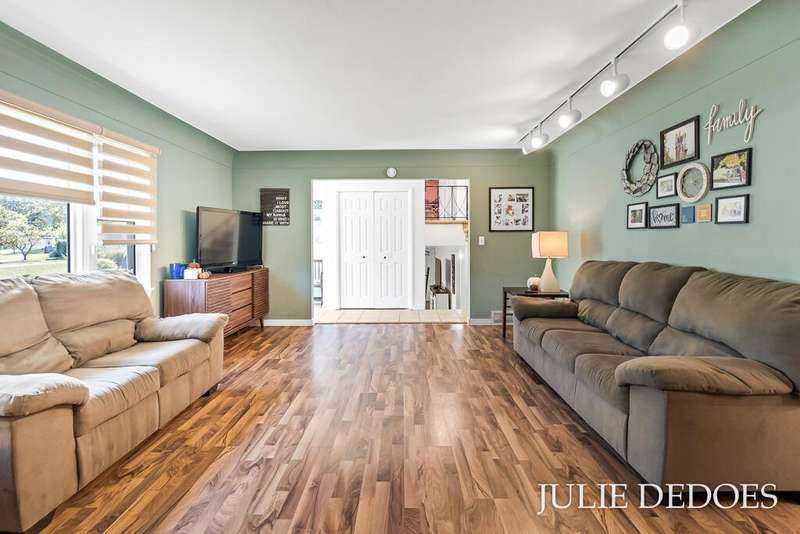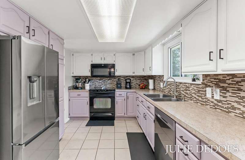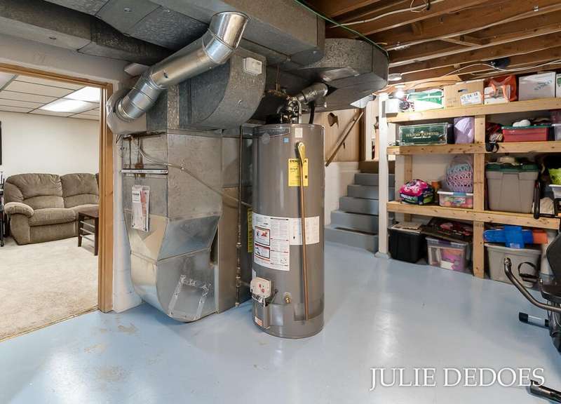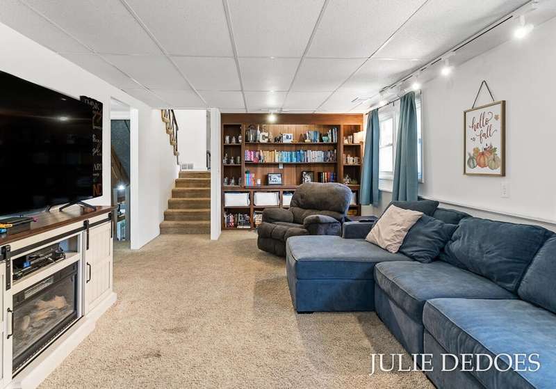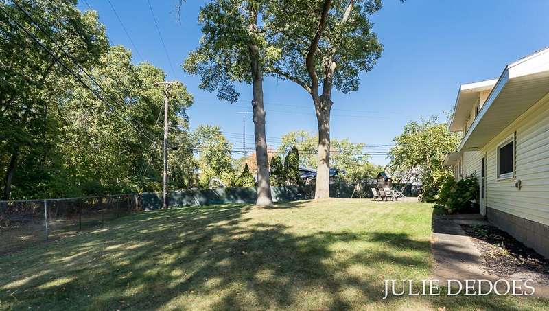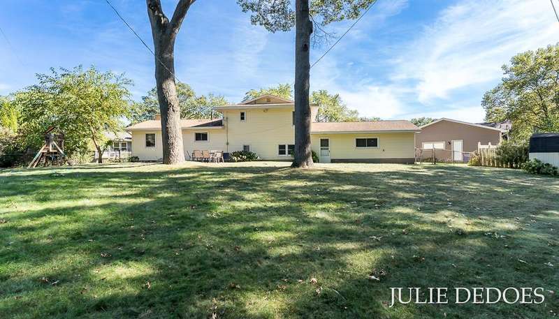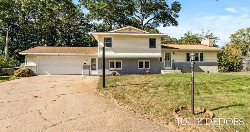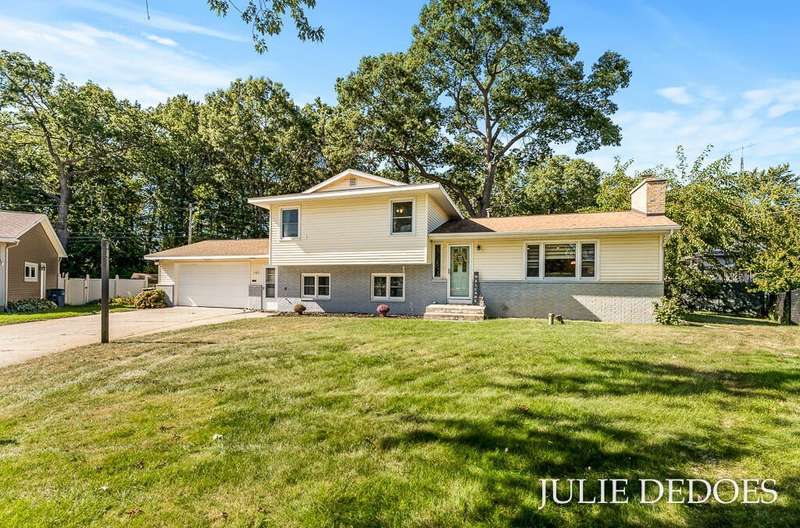 Lovely 5 bedroom, quad-level with over 2000 square feet, on a quiet cul de sac in Roosevelt Park. Main floor includes Large living room with gas fireplace, dining room, and kitchen, all with laminate flooring. Kitchen includes all appliances. Upstairs are 3 roomy bedrooms and a full bath. Lower level offers a large family room with built-in shelves, a full, remodeled bath, and a 4th bedroom. Basement level includes the 5th bedroom/office/rec room, laundry, and great storage space. Fenced Back yard backs up to Middle School, and offers privacy. Underground Sprinkling with separate well. Attached 2-stall garage. A great place to call Home!