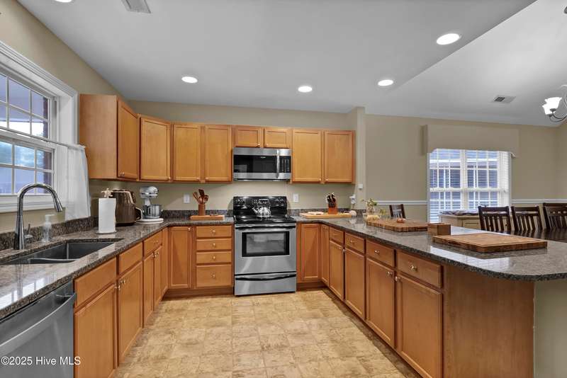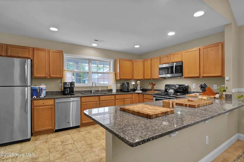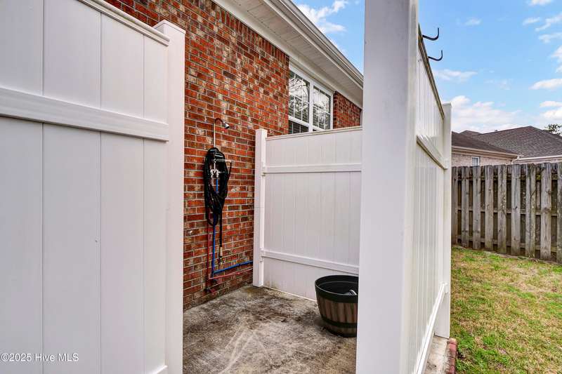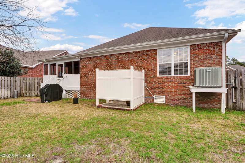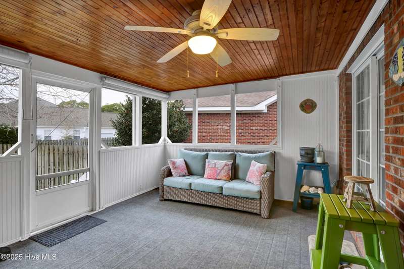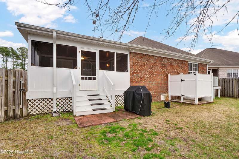 Easy one level living in this lovely brick home ready to move into. Beautifully maintained and updated. Large living room with fireplace open to large dining & kitchen with many improvements and spacious granite countertops. Large bedrooms. Two full baths plus half bath for when you have guest over. Large sun room overlooking screened porch. Home is great for those large gatherings with family and friends. Privacy fenced rear yard has outdoor shower for those days you come in from the beach. Easy bike ride over the bridge to Carolina Beach to walk on the beach or just to socialize with the locals. Or stay home and enjoy the amenities in your own neighborhood. Pool, tennis, par 3 golf, pickleball, basketball, shuffleboard area and a community owned nature trail along Telfair Creek you can walk or meet with friends in the Clubhouse. HOA maintains the front and side yards so more time to play! It even covers your trash pick-up. Little traffic to deal with as your home is on a dead-end cul-de-sac.