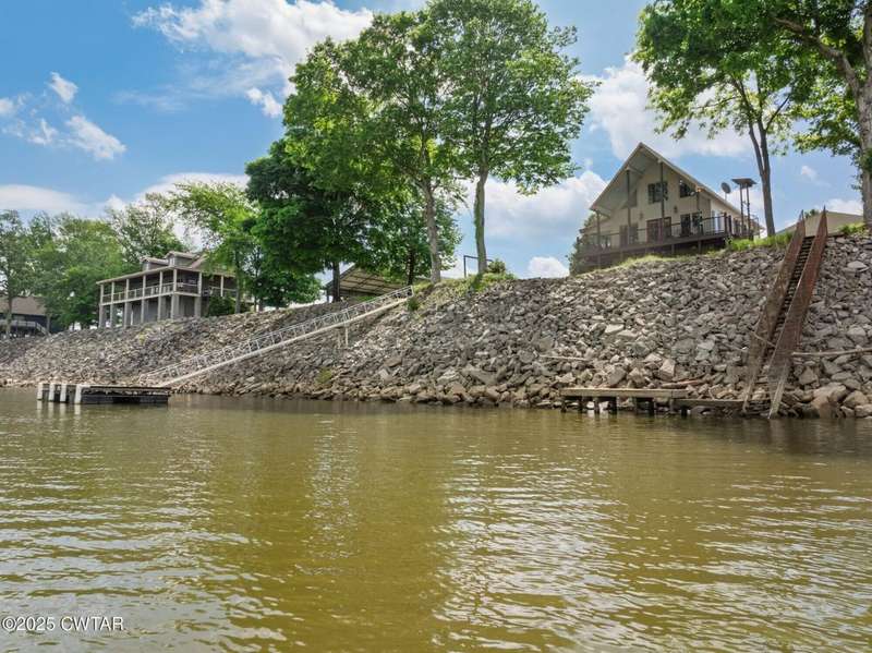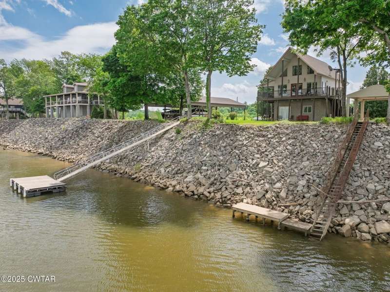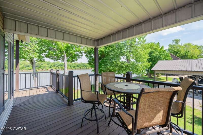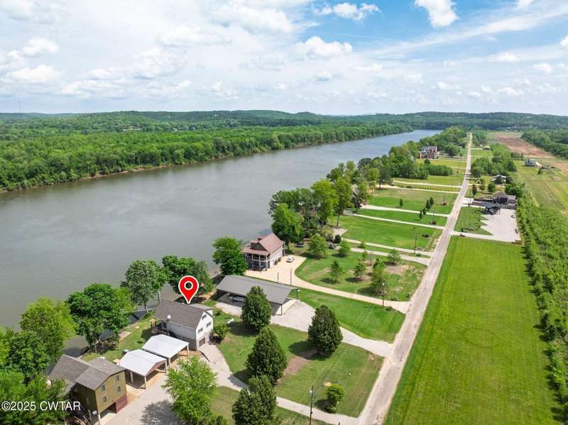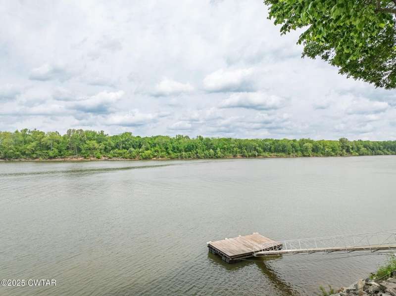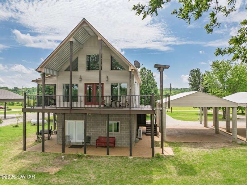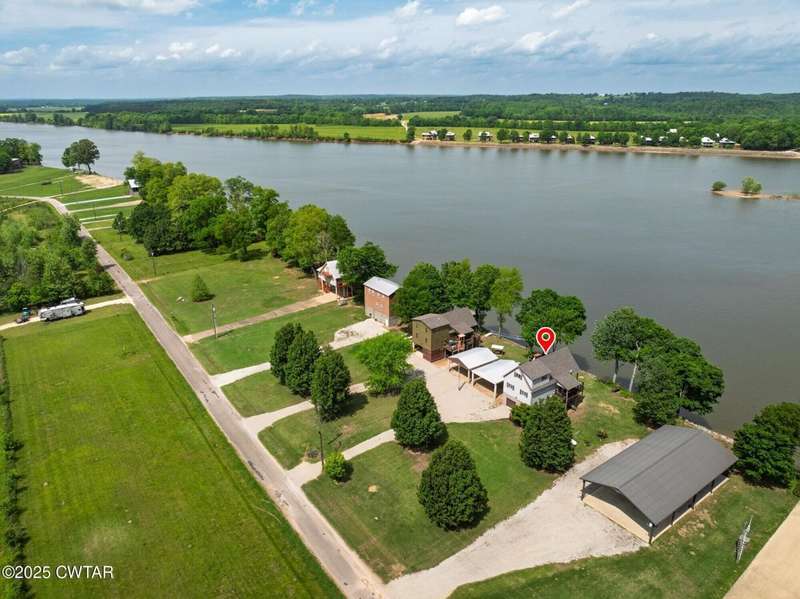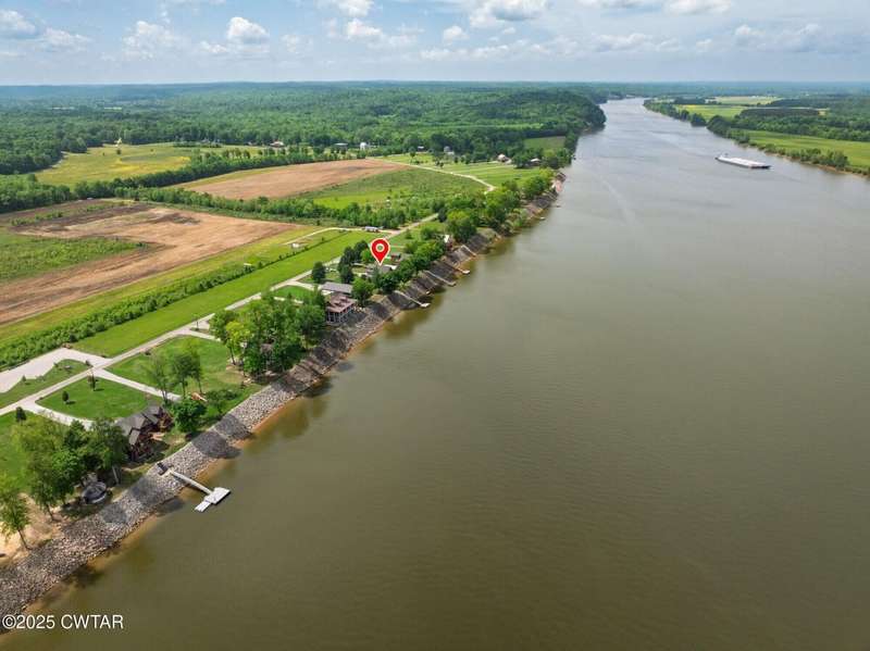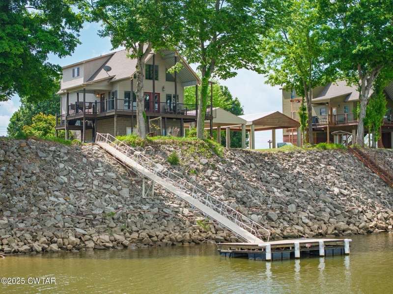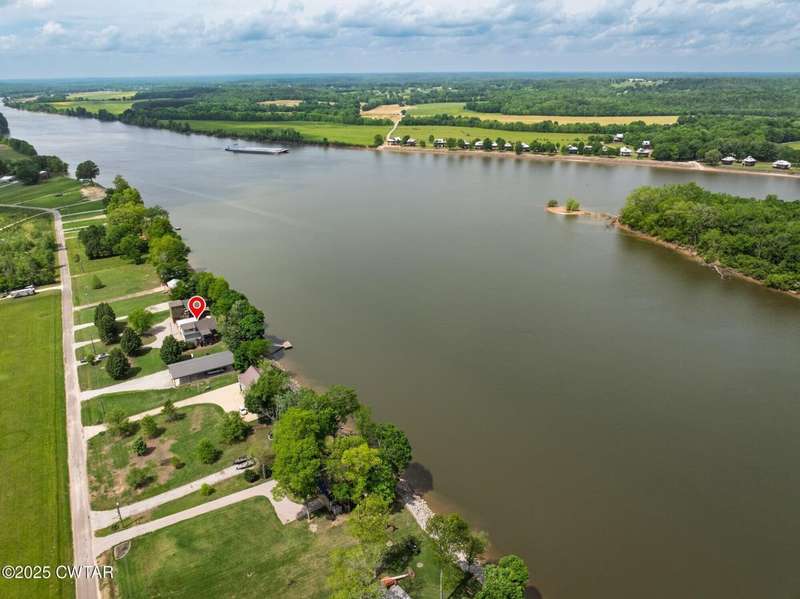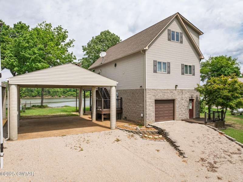 1.13 ACRE RiverFront Living! Mostly furnished & Custom 3BR home w/dock-plus separate 50x65 boat & camper shed! Newly installed composite decking & vaulted ceiling wrap around the waterview deck leading to the home's entry. A wonderful vaulted ceiling anchors the open living area featuring a fireplace & wall of windows-with all the water views! A pretty waterview dining/kitchen area accommodates a breakfast bar, custom cabinetry, granite counters, tile backsplash, & all appliances-w/side door out to the grilling/dining porch. 2 BRs, full BA, & washer/dryer in laundry room complete the main floor. Upstairs is a flexible open loft-roomy enough for an office, bunk room, or den & master BR w/private BA & roomy walk in closet. The heated/cooled garage features a half bath & a large flexible space perfect for gaming, sitting, or bunk area! Ground level covered patio features a perfect place to enjoy the magnificent sunsets as well as a 2nd location for grilling. Lrg covered double carport adds to the plentiful parking & the cargo elevator provides an effortless way to bring in groceries & other household items. Ramp leads to the private floating dock a set of steps down to the beach area are shared with the neighbor as is the well which is located on this 1.13 acre waterfront lot w/197 feet of water frontage overlooking the main channel of the TN River. The extra large boat/camper shed offers plenty of room for extra guests to bring their camper or for your boats & four wheelers/side by sides! Community boat launch next door as well as 2 commercial marinas nearby-located just off Hwy 641 mins from the small TN River towns of Clifton & Bath Springs-between Memphis & Nashville. Ready for a new Family-just bring the kids & the boat!