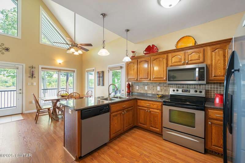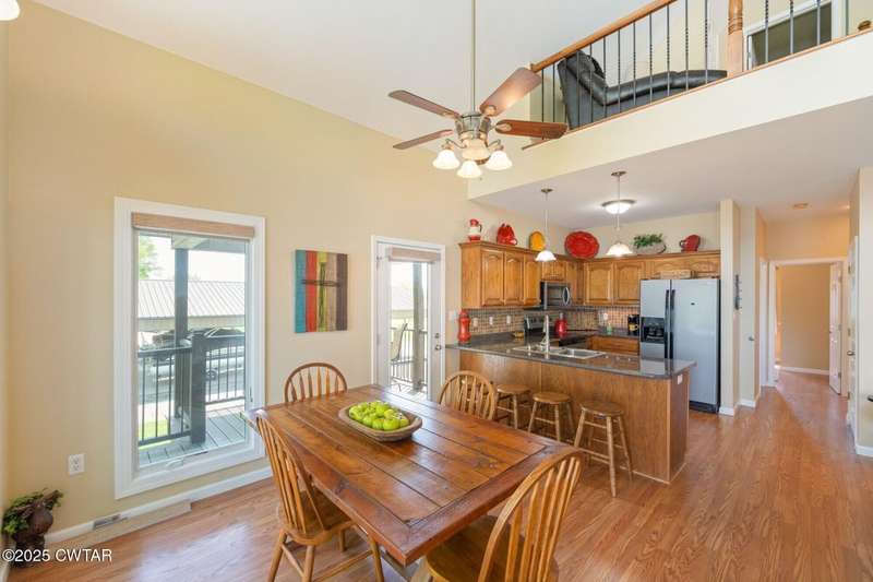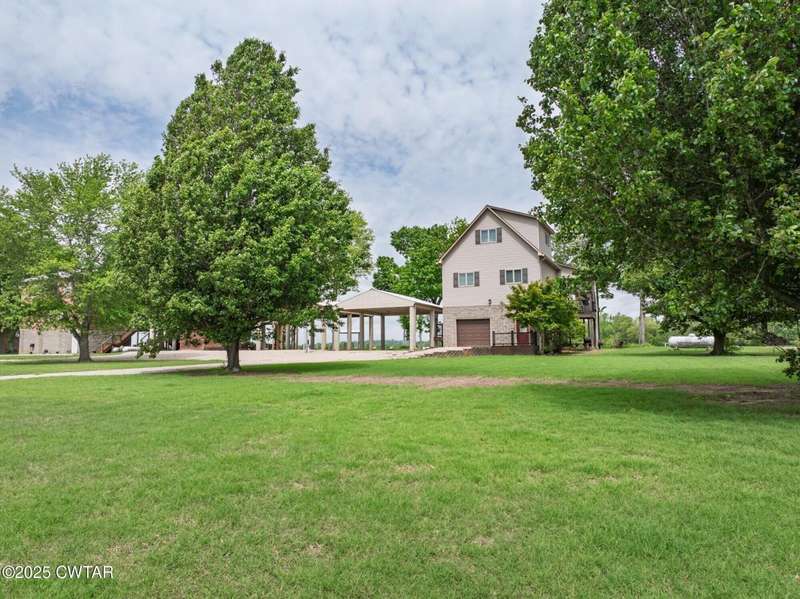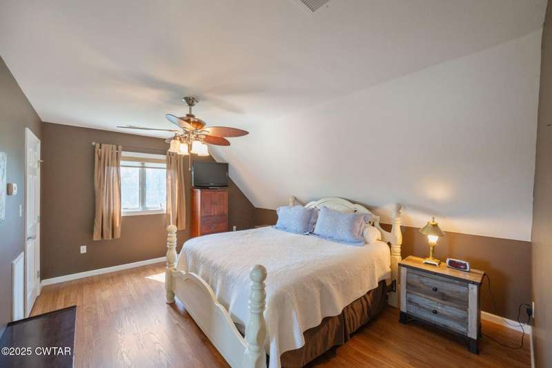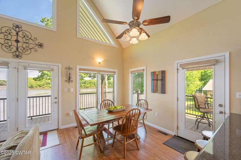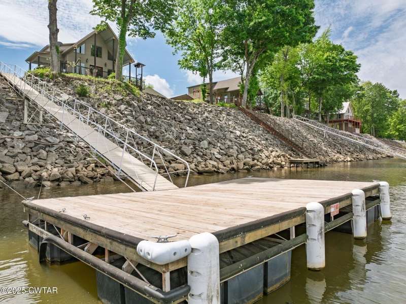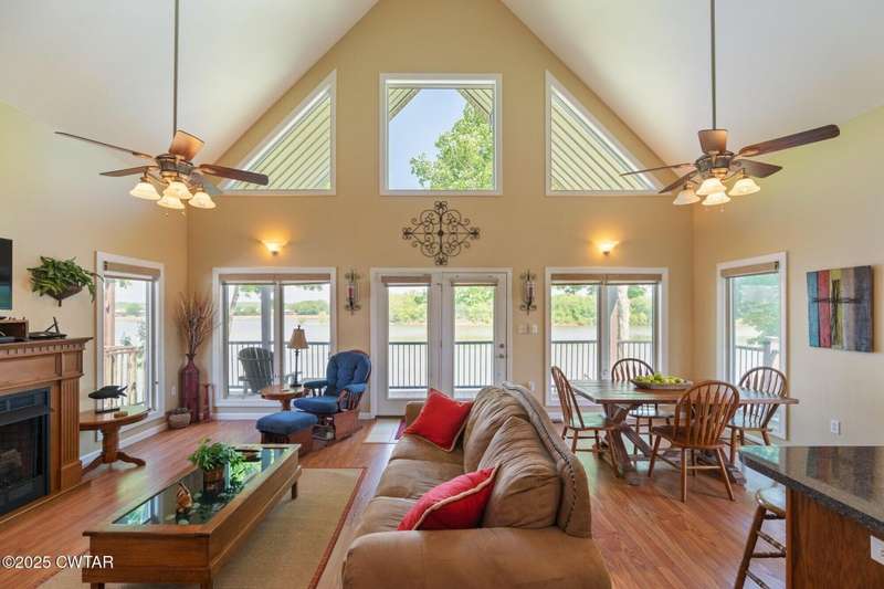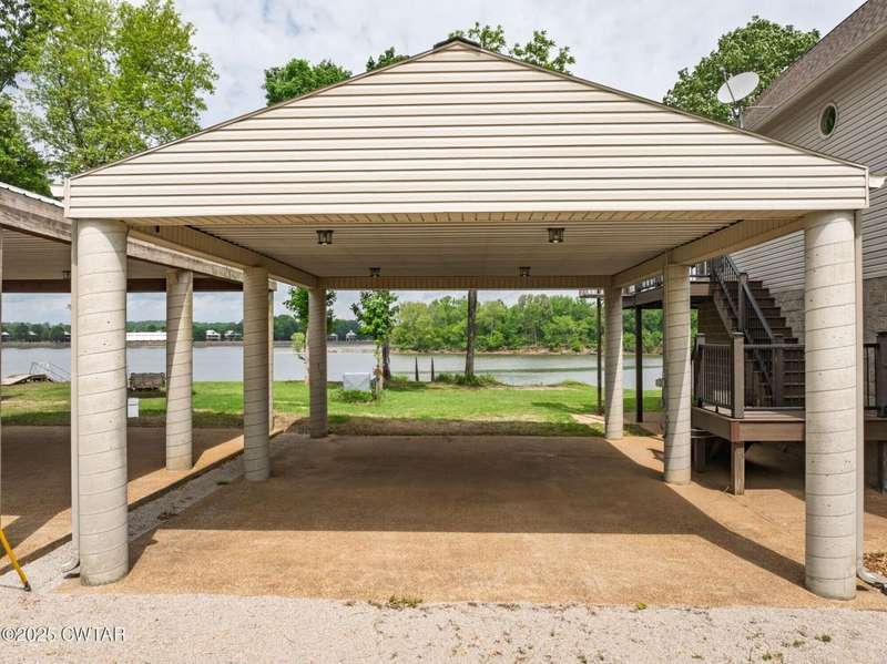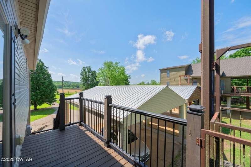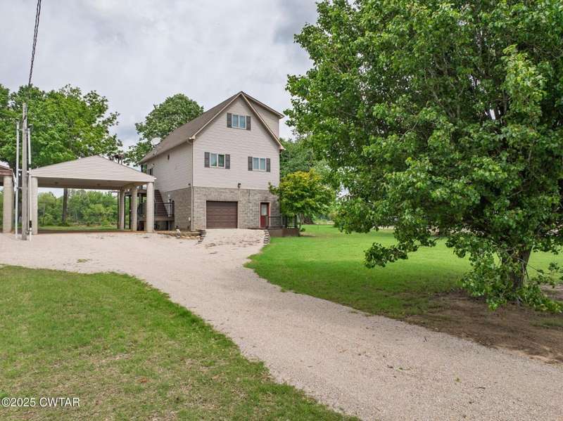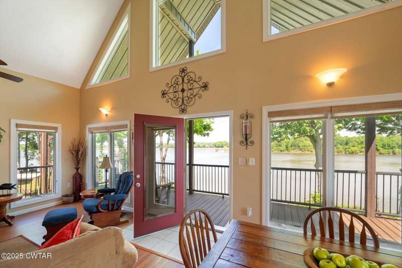 1.13 ACRE RiverFront Living! Mostly furnished & Custom 3BR home w/dock-plus separate 50x65 boat & camper shed! Newly installed composite decking & vaulted ceiling wrap around the waterview deck leading to the home's entry. A wonderful vaulted ceiling anchors the open living area featuring a fireplace & wall of windows-with all the water views! A pretty waterview dining/kitchen area accommodates a breakfast bar, custom cabinetry, granite counters, tile backsplash, & all appliances-w/side door out to the grilling/dining porch. 2 BRs, full BA, & washer/dryer in laundry room complete the main floor. Upstairs is a flexible open loft-roomy enough for an office, bunk room, or den & master BR w/private BA & roomy walk in closet. The heated/cooled garage features a half bath & a large flexible space perfect for gaming, sitting, or bunk area! Ground level covered patio features a perfect place to enjoy the magnificent sunsets as well as a 2nd location for grilling. Lrg covered double carport adds to the plentiful parking & the cargo elevator provides an effortless way to bring in groceries & other household items. Ramp leads to the private floating dock a set of steps down to the beach area are shared with the neighbor as is the well which is located on this 1.13 acre waterfront lot w/197 feet of water frontage overlooking the main channel of the TN River. The extra large boat/camper shed offers plenty of room for extra guests to bring their camper or for your boats & four wheelers/side by sides! Community boat launch next door as well as 2 commercial marinas nearby-located just off Hwy 641 mins from the small TN River towns of Clifton & Bath Springs-between Memphis & Nashville. Ready for a new Family-just bring the kids & the boat!
