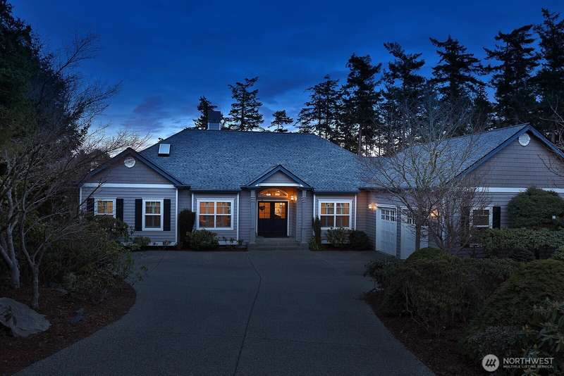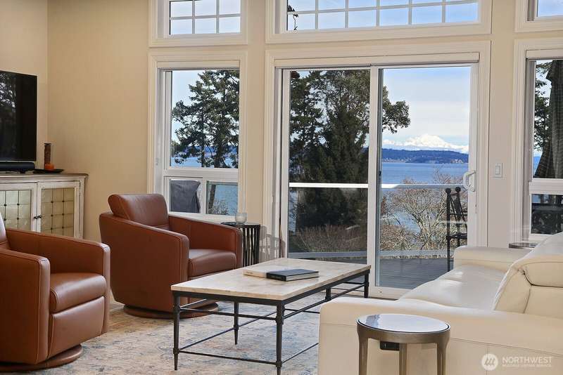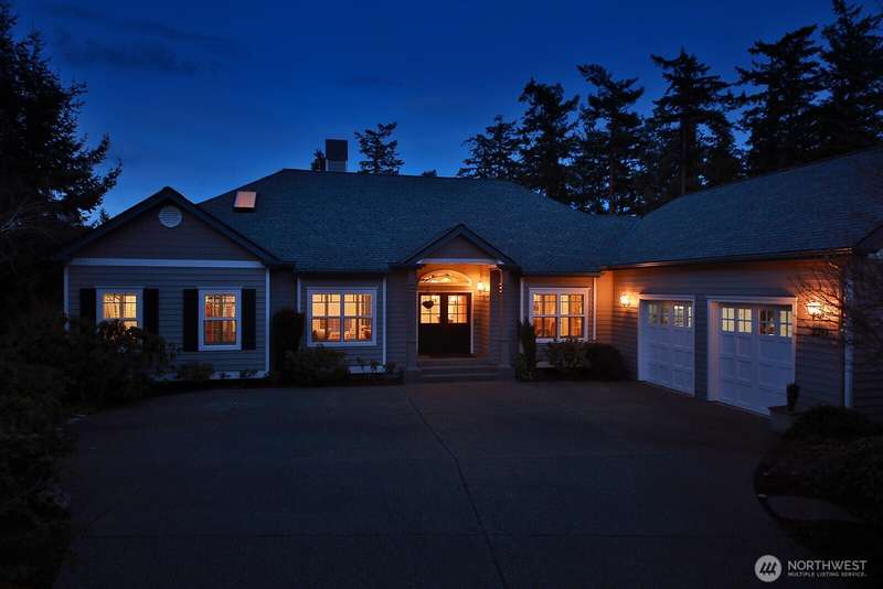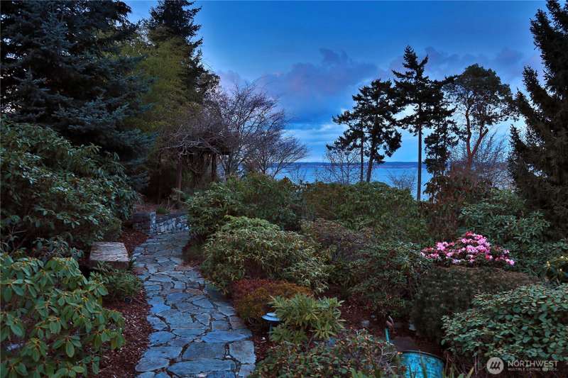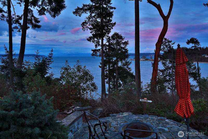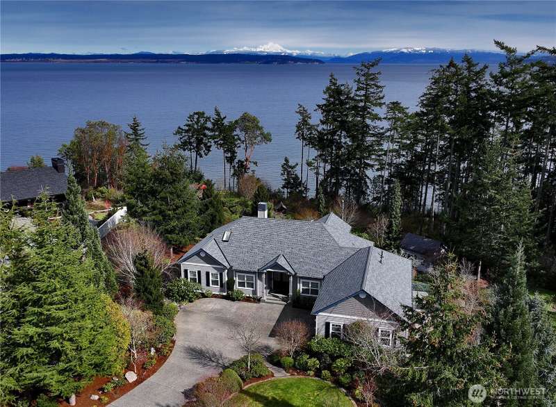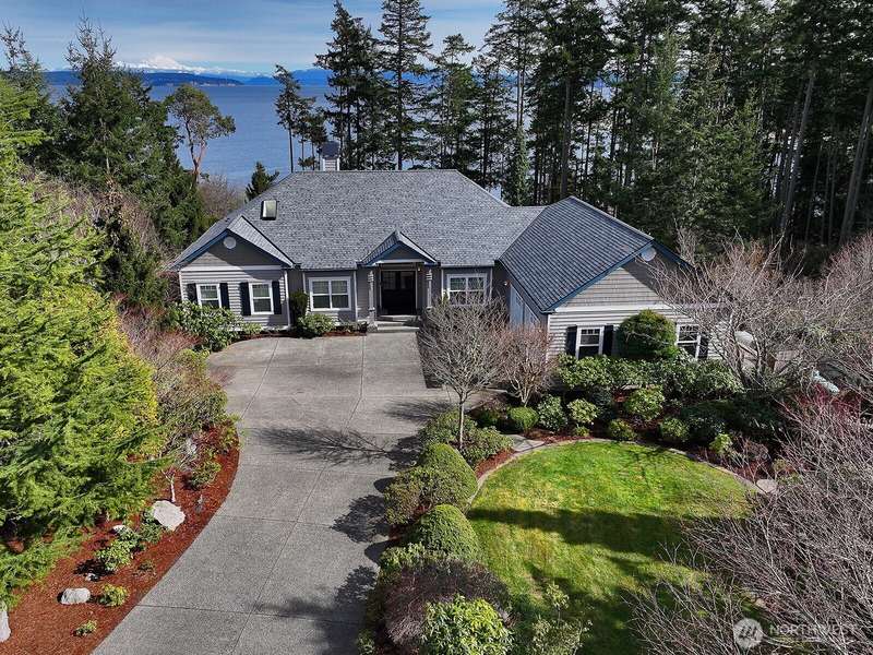 Experience the perfect blend of luxury and serenity in this stunning retreat. Greet each day with breathtaking views of lush gardens, sparkling water, and Mt. Baker’s glow. Wander through vibrant blooms, fruit trees, an artist’s studio, a totem pole, and inviting outdoor spaces. Expansive windows fill the open-concept living area with light, highlighting a double-sided travertine fireplace, custom cabinetry, and high-end appliances. The main floor was reimagined in 2023 by architect Stig Carlson and designer Lezlie Trujillo. New roof, exterior paint (2024), whole-house generator, Starlink, and a private lower-level apartment add versatility and peace of mind..
