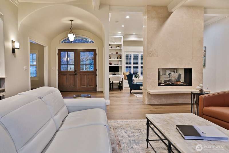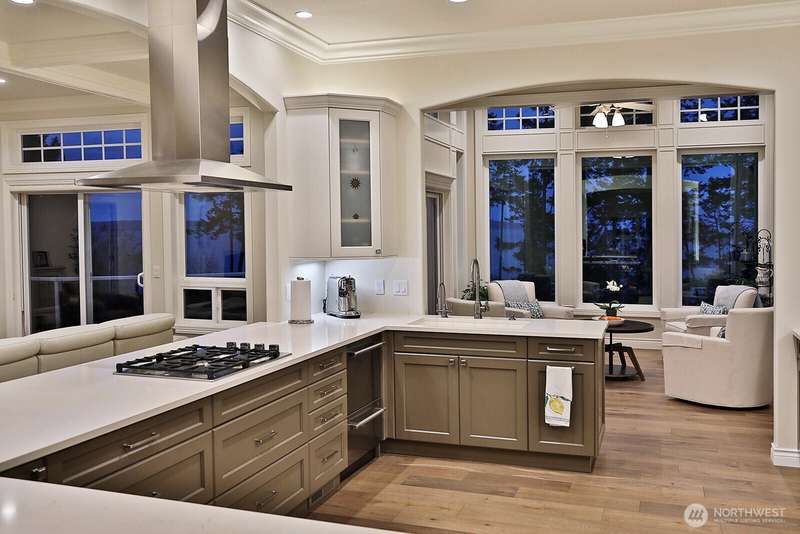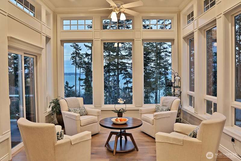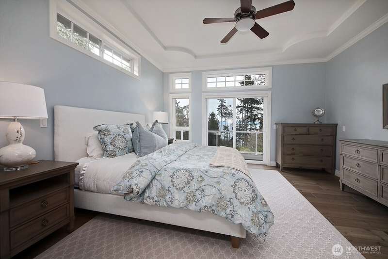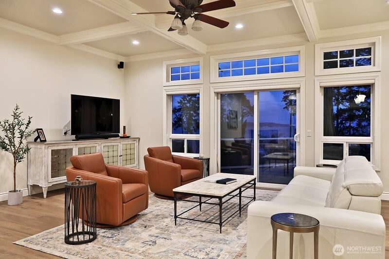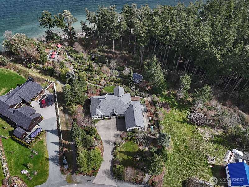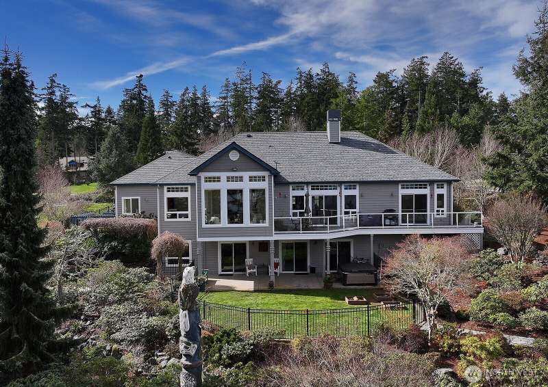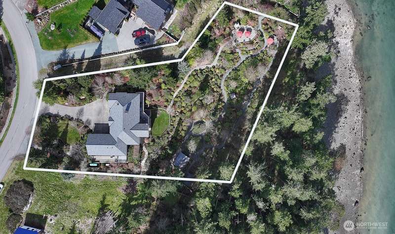 Experience the perfect blend of luxury and serenity in this stunning retreat. Greet each day with breathtaking views of lush gardens, sparkling water, and Mt. Baker’s glow. Wander through vibrant blooms, fruit trees, an artist’s studio, a totem pole, and inviting outdoor spaces. Expansive windows fill the open-concept living area with light, highlighting a double-sided travertine fireplace, custom cabinetry, and high-end appliances. The main floor was reimagined in 2023 by architect Stig Carlson and designer Lezlie Trujillo. New roof, exterior paint (2024), whole-house generator, Starlink, and a private lower-level apartment add versatility and peace of mind..