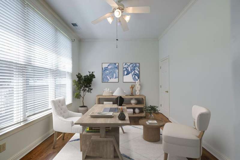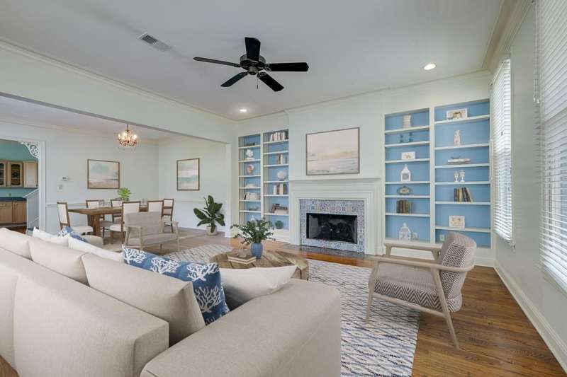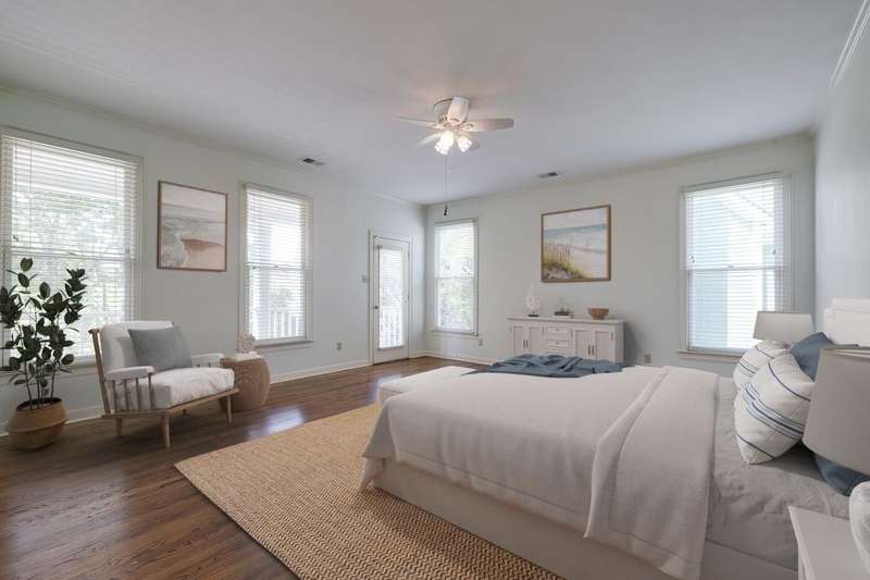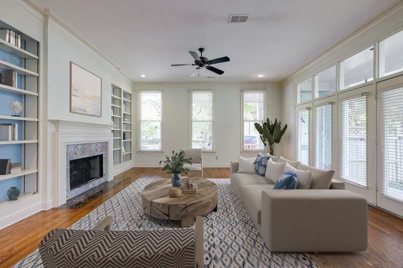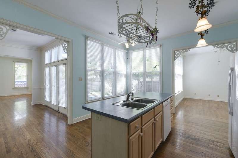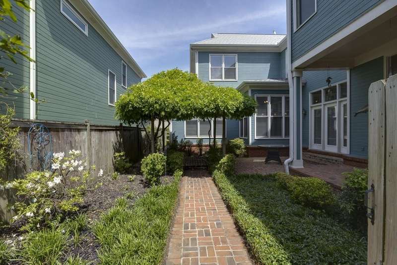 Harbor Town home w/4 bds + office or 5 bds and 3 full baths. Fantastic outdoor spaces including balcony, spacious porch, back patio & fenced yard. Downstairs has open floorplan w/tons of natural light. Pretty hardwood floors throughout home. 1 of the bedrooms can be used as a safe room (tornado) with reinforced walls and floors, steel doors & steel shutters. Roomy primary suite has large walk-in closet and ensuite with separate shower and whirpool tub. Back load 2 car garage. Both furnaces replaced in 2022