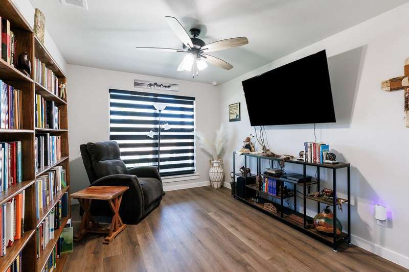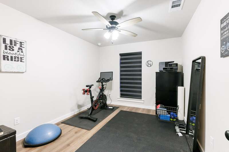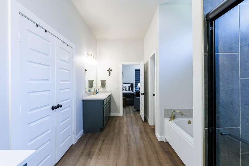 Upgraded to the MAX! This Abbey Glen Beauty is ready to welcome you HOME! Enhanced with premium features...gorgeous custom vision shades, warm wood accent walls flanking the striking stone fireplace, brushed gold hardware, luxury vinyl plank flooring throughout, RO system and whole house water softener- The best curb appeal with cedar accents and front porch made for sitting! Inviting entry leads to spacious and open living spaces with exceptional natural light~ Delightful kitchen with eucalyptus painted cabinets, stainless appliances, double ovens, Carrara quartz countertops, dining serving bar and walk-in pantry~ Isolated primary suite with luxurious bath...soaking tub, charcoal tiled shower, double vanities and fabulous closet! Three additional bedrooms, one ensuite~ Outdoor living is enhanced with nice landscaping, 7' capped privacy fence and a shady covered patio~ Cooper ISD~ Transferrable builder warranty~ Come take a tour...you just might fall in love!