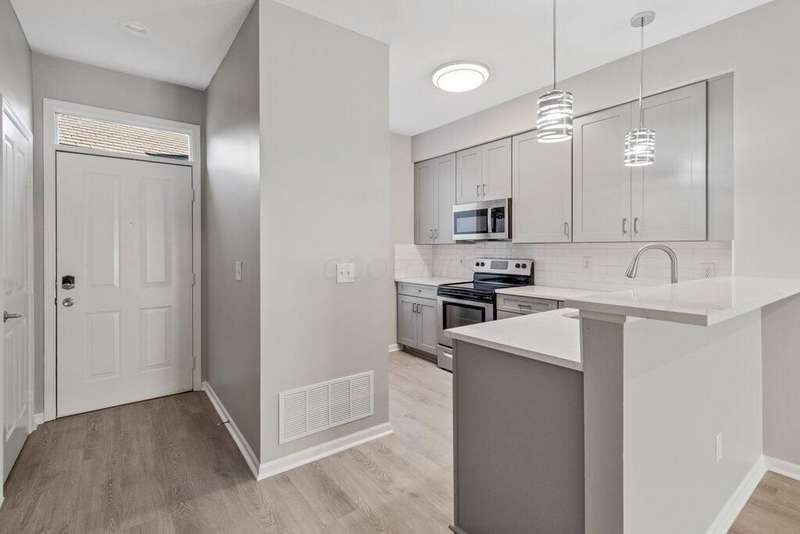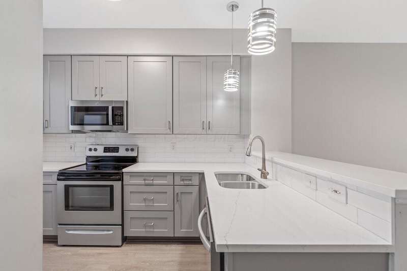 Highly-sought after Historic Brewery District townhouse now offered for lease! This is a newer CONDO development with Unit 801 enjoying a brand new full renovation with all new kitchen (quality cabinets, quartz cabinets, stainless steel appliances w/ wine fridge), bathrooms, new flooring, freshly painted, etc. There are two bedrooms upstairs both offering en-suite full baths and ample closet space. A rare amenity for the location is a finished basement providing extra living space & a third full bath! Washer/dryer included. Tall ceilings, numerous large windows, open-concept main floor, private fenced-in patio, covered front porch. Includes water, trash, snow removal, monthly condo fee. Please, no short term rental requests. Call today for a private showing. AVAILABLE January 1st!
