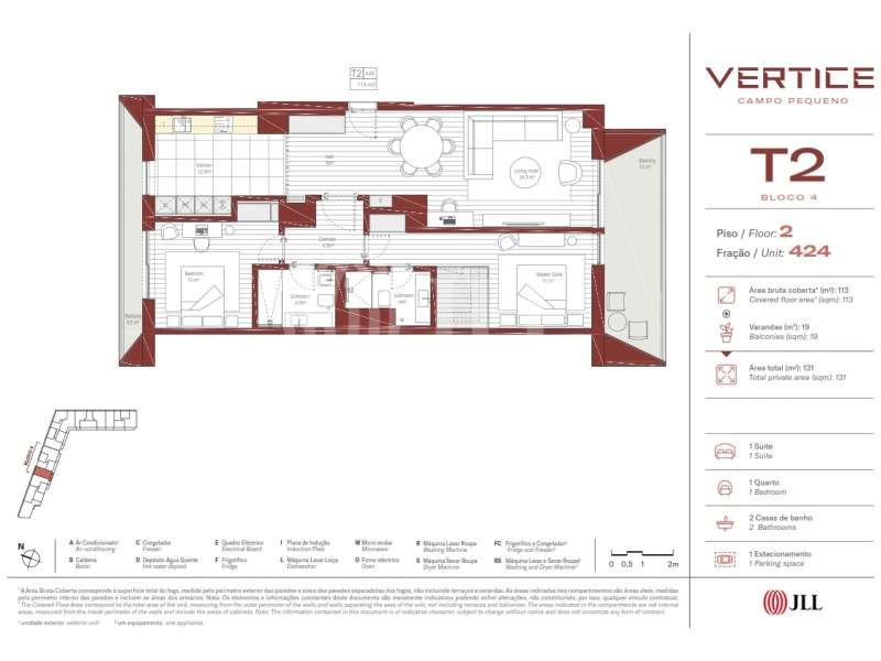 Apartamento T2, novo, com 113 m2 de área bruta privativa, varanda e estacionamento, inserido no Vertice, na zona do Campo Pequeno, Lisboa. O apartamento conta com sala de estar, sala de jantar e cozinha totalmente equipada. Dispõe de ar condicionado, piso radiante no pavimento das casas de banho privadas, caixilharia de corte térmico com vidros duplos, muita luz natural e apresenta interiores modernos e funcionais. Composto por 119 apartamentos, o Vertice combina sofisticação, conforto e uma variedade de características exclusivas numa localização estratégica, para quem procura um estilo de vida moderno e prático. Localizado a poucos passos de distância de cafés e restaurantes charmosos e tradicionais e de espaços verdes variados. Está a 5 minutos de walking distance da estação de Entrecampos e a 10 minutos da estação de metro do Campo Pequeno e Avenida de Roma, o Vertice oferece acesso imediato a excelentes opções de transporte público, como comboios, autocarros e metros. Está ainda a 10 minutos de driving distance da Cidade Universitária, a 15 minutos do Marquês de Pombal e a 20 minutos do Parque das nações. O Aeroporto Humberto delgado encontra-se a 10 minutos de driving distance. Categoria Energética: A #ref:80640