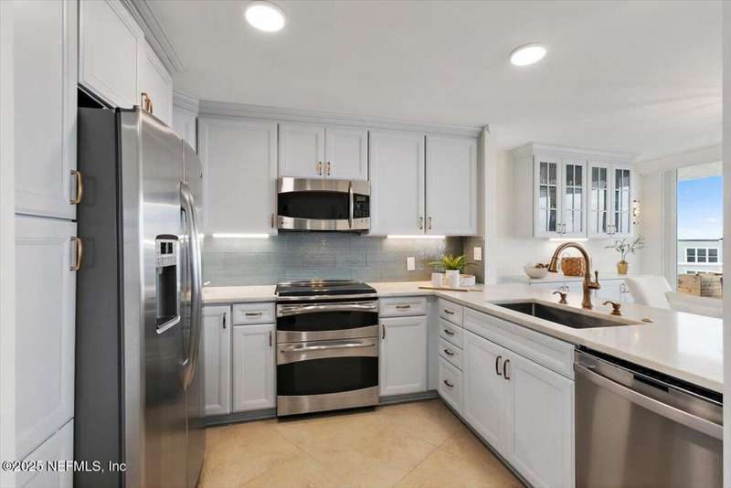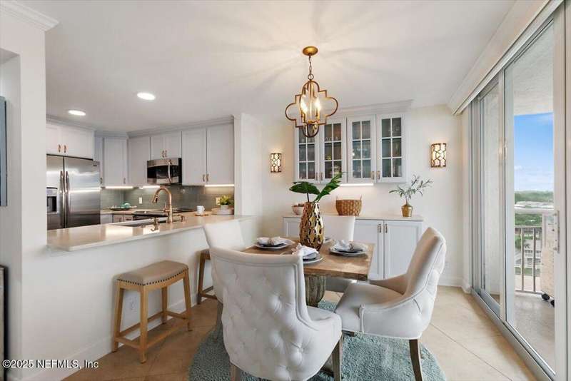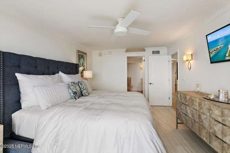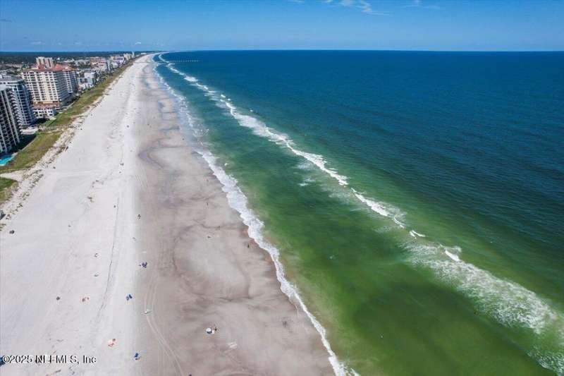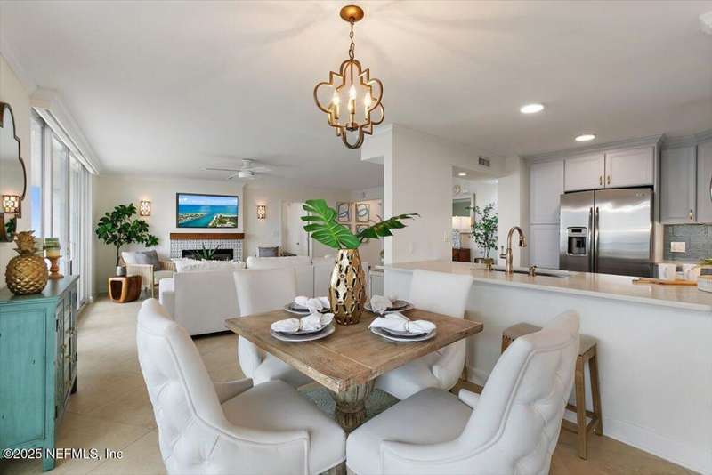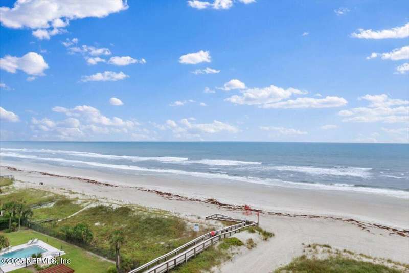 Beautifully appointed 2BR/2BA condo w/40' balcony with sunrise & sunset views. Enjoy beach & downtown Jax fireworks & the Blue Angels without leaving your balcony! Floor to ceiling glass doors w/automated shades. Living rm w/custom FP. Kitchen w/GE Profile SS appl, glass back splash & quartz. Dining w/glass front buffet & b'fast bar. Outdoor dining & sitting area to take in ocean breezes. King primary suite w/large walk-in custom closet, additional closet, bath w/walk-in shower, custom niches, & double vanity w/quartz. Hall closet for storage. Queen BR w/closet. Stacked W/D in unit. Guest bath w/large soaking tub & rain head shower. Designer touches throughout. HOA dues include fitness cntr, (2) pools, grill area, bike storage, building ins, water & sewer, trash, grounds maintenance & on-site property mgmt. $7 million restoration completed May 2025 & assessment PIF. SELLER REQUIRES pre-approval or POF letter to tour this home.