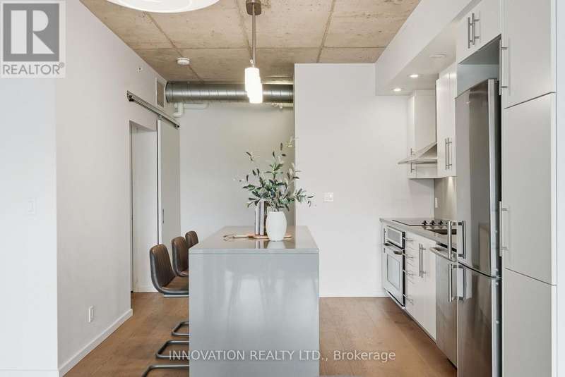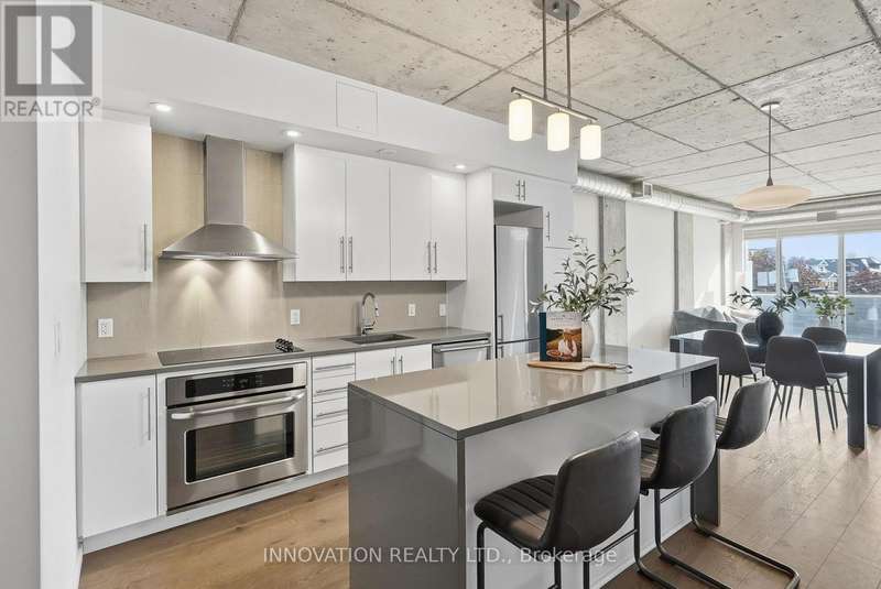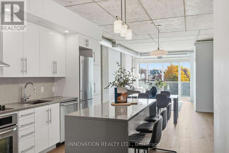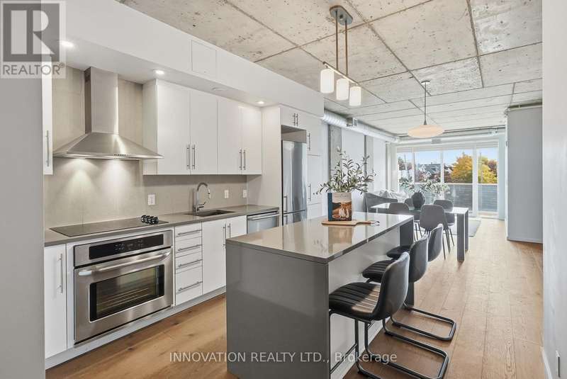 Welcome to this bright and stylish 2-bedroom + den condo offering 1,079 sq. ft. of thoughtfully designed living space in one of Ottawa's most sustainable buildings. The Eddy is LEED-Platinum certified, blending modern comfort with environmentally conscious design in the heart of Hintonburg. This south-facing unit enjoys peaceful treetop and residential views, filling the open-concept layout with natural light. Inside, the exposed concrete accents create a sleek, contemporary feel. The den is ideal for a home office or guest area, while both bedrooms are spacious and have southern facing windows. Enjoy worry-free living with condo fees that include heating, cooling, and water. Parking is also included. Step outside to discover a vibrant neighbourhood - walk to cafes, restaurants, boutiques, and transit just moments from your door. (id:6509)