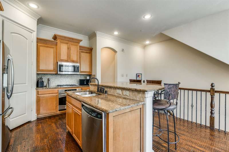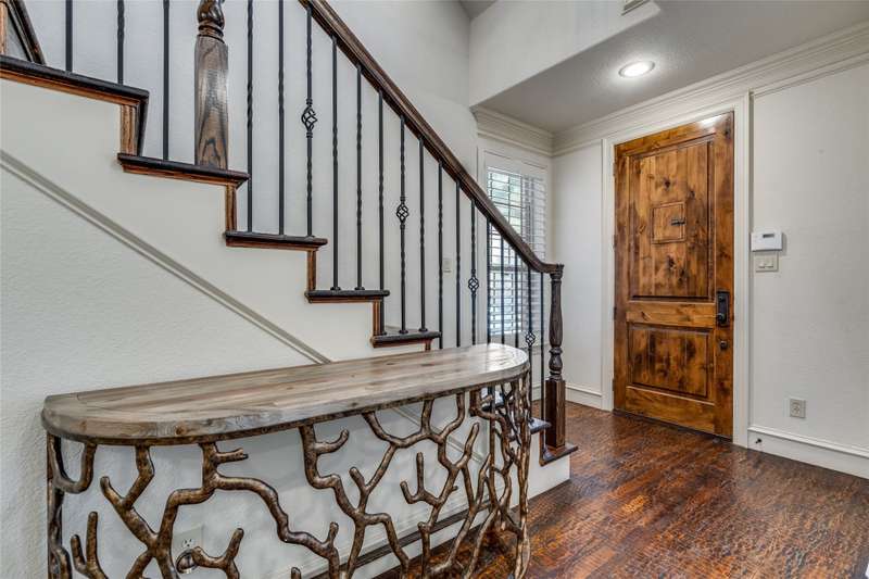 Newer construction luxury townhome in prime location within close proximity to many private schools. First floor living area could be an office or game room. Gourmet kitchen on 2nd floor features granite counters, custom cabinetry, island, SS appliances and hand scraped wood floors that flow into the adjacent dining room. Windows and atrium doors provide natural light and view of blooming crepe myrtles. Primary bedroom with Juliet balcony is also on the second floor with bath containing separate tub and shower, double vanities, and large walk in closet. Enjoy the spacious family room with magnificent stone fireplace on the third floor, along with two secondary bedrooms, both with access to the outdoor balcony. 2 car garage with rear entry are at the back of the townhome. Enjoy the outdoors as this quiet community has walkways and exquisite fountains running through the property. Move in & enjoy!