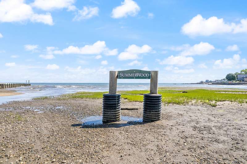 Summerwood on the Sound. Step into this stunning townhouse condominium featuring a fabulous kitchen with spacious quartz counters and breakfast bar, custom designed cabinetry and stainless steel appliances. The open concept living room and dining area boast beautiful wood flooring, elegant crown molding and glass doors to the private deck area, perfect for relaxing and entertaining. There is also an updated half bath on the first floor. The second floor features the primary bedroom with views of the tidal marsh, en suite bath and two large walk in closets for personal items and extra storage. There is also a guest bedroom on the second floor. The versatile third floor loft area provides flexible space for an office, family or guests. Located in Summerwood, this community offers resort style amenities for your enjoyment, including a large pool, private sandy beach on Long Island Sound, tennis and pickle ball courts. Enjoy the lifestyle.