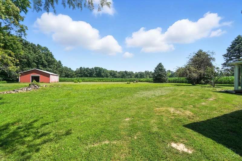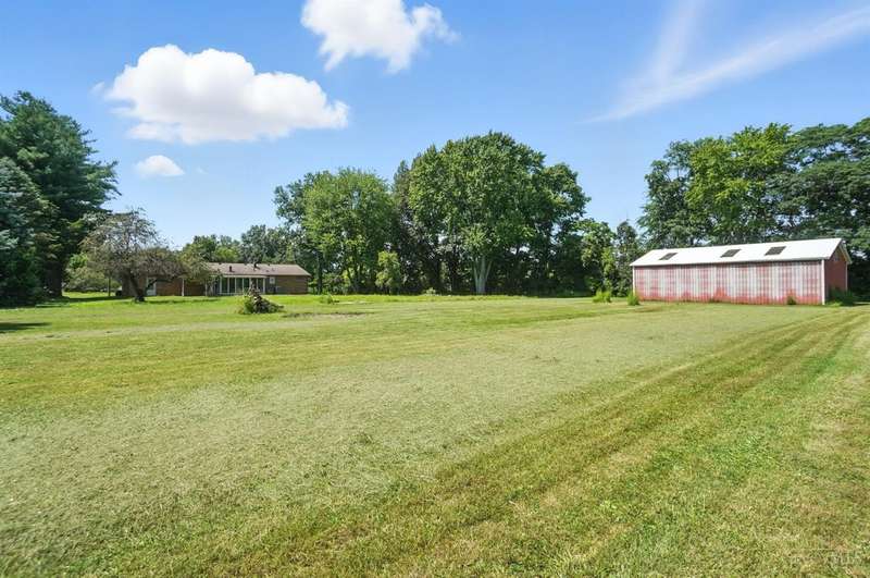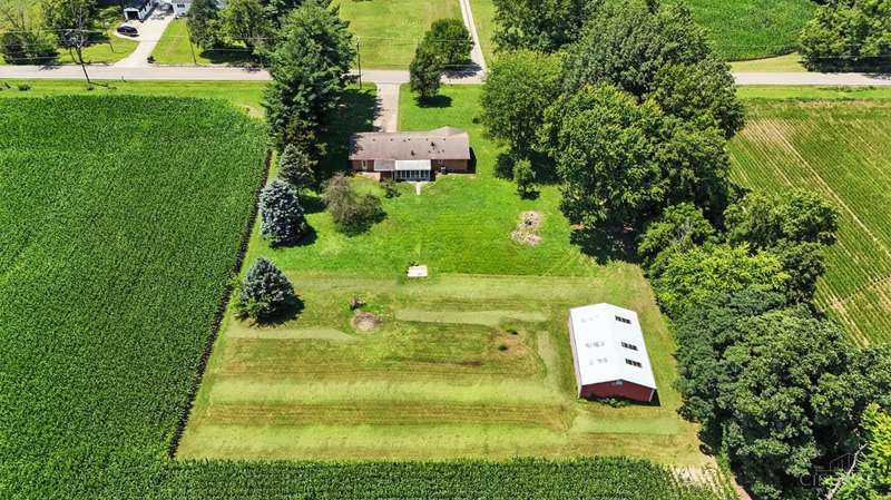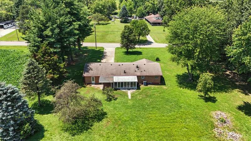 Welcome to your own slice of peaceful tranquility! This well-maintained brick ranch is perfectly nestled on 10 acres of scenic countrysideideal for hobbyists, farmers, or anyone seeking space and serenity. Inside, enjoy hardwood floors in the kitchen and living room, plus hardwood under the bedroom carpets. The eat-in kitchen offers ample cabinetry, counter space, and a stylish tile backsplash. Stove, microwave, and refrigerator stay. Dining area opens to a 10' x 16' sunroomperfect for morning coffee or evening relaxation. The full unfinished basement offers potential for added living space, storage, or workshop. Outdoors, the 20' x 40' pole barn provides great space for projects, farming, or equipment. Whether you enjoy 4-wheelers, livestock, or gardening, the 10 acres offer endless options for work or play. Don't miss this rare chance to own a well-cared-for home with land, privacy, and potential!