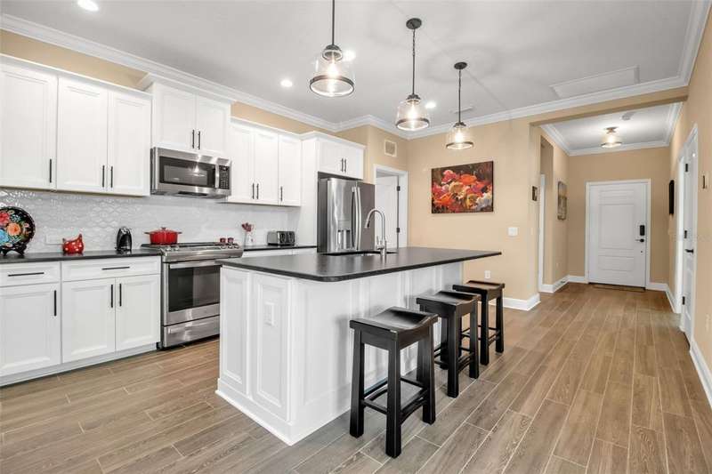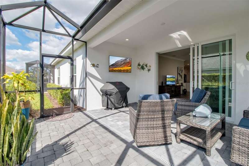 Better than new Neal-built villa-only four years young and nearly 2,000 sq feet loaded with over $75,000 in premium builder upgrades. This immaculate home features HURRICANE IMPACT WINDOWS/SLIDER, crown molding, elegant tile flooring, and stunning upgraded carpeting. Gourmet kitchen with spacious island, custom tile backsplash, natural gas range, upgraded cabinetry, stainless steel matching appliances with warranty, and alluring granite countertops. Open-concept great room and dining area offer an expansive layout ideal for entertaining with recessed LED lighting. Primary suite features dual vanities with quartz countertops, makeup vanity, double closets, and a spa-inspired walk-in shower. Two additional generously sized bedrooms provide flexibility for guests. Impressive size Den/Study to work from home/extra living space. Guest bathroom with expansive vanity and shower/tub combo. Off the kitchen find resourceful laundry room with cabinet and storage. Enjoy your private outdoor oasis on the extended screened lanai with gas hookup ready for an outdoor kitchen-perfect for relaxing or entertaining. Located in the highly sought-after gated Indigo community, residents enjoy access to the exclusive Indigo Oasis private pool for villa owners, Activities director with substantial calendar, plus a clubhouse with resort-style pool and cabanas, outdoor spa, 24-hour fitness center, bocce ball, pickleball courts, and playground. HOA takes your worries away by managing lawn/landscaping mowing and trimming, fertilizing, irrigation, mulch, and roof maintenance. Looking to make a second home - turnkey optional. Situated in Lakewood Ranch, the nation's award-winning master-planned community, with convenient access to shopping, dining, A-rated schools, beaches, professional sports/entertainment. Elevated, stylish, and move-in ready-this villa offers the best of luxury Florida living.