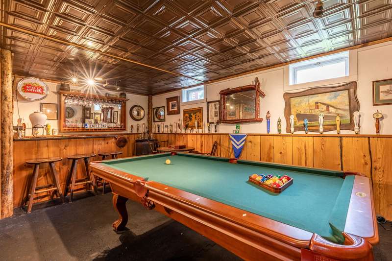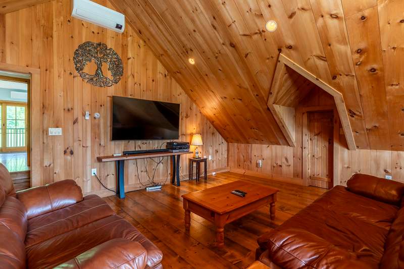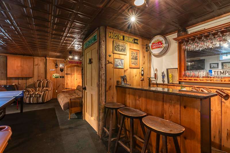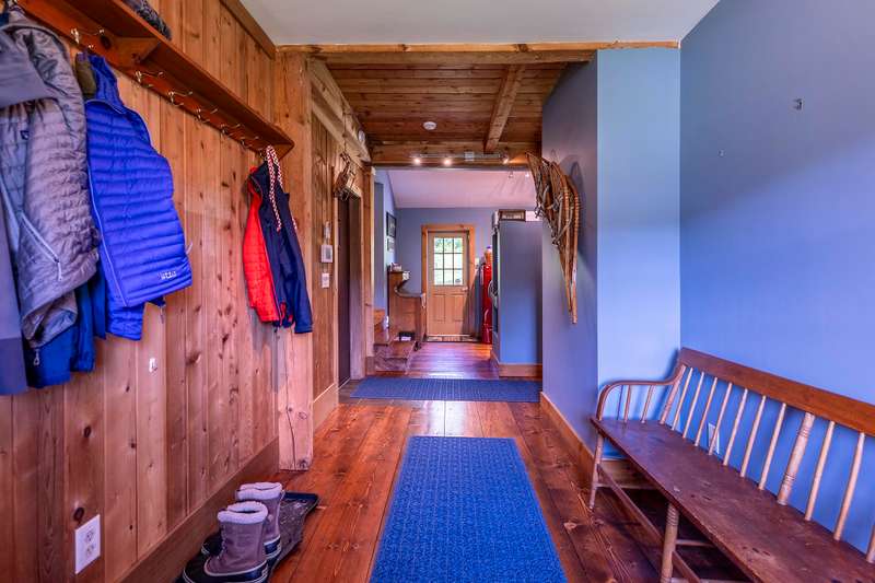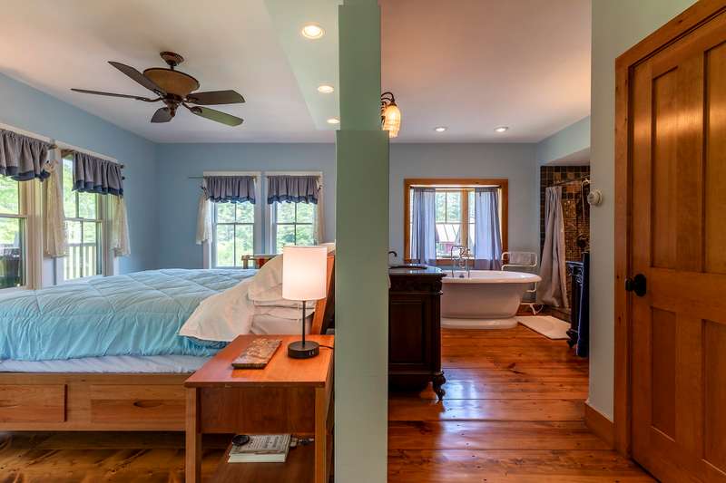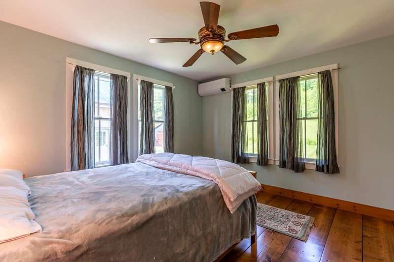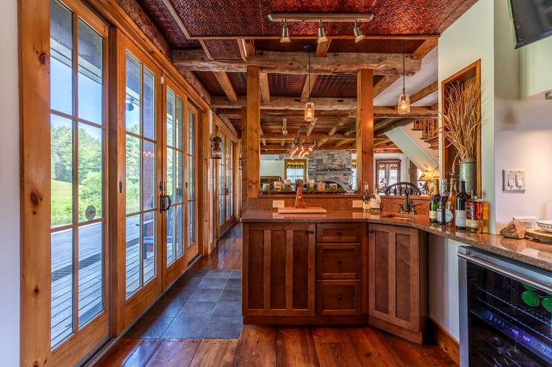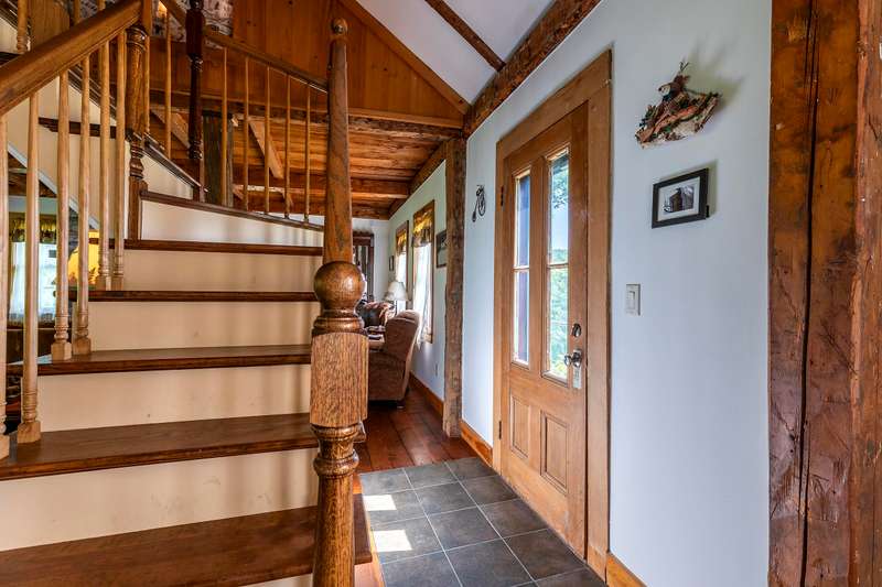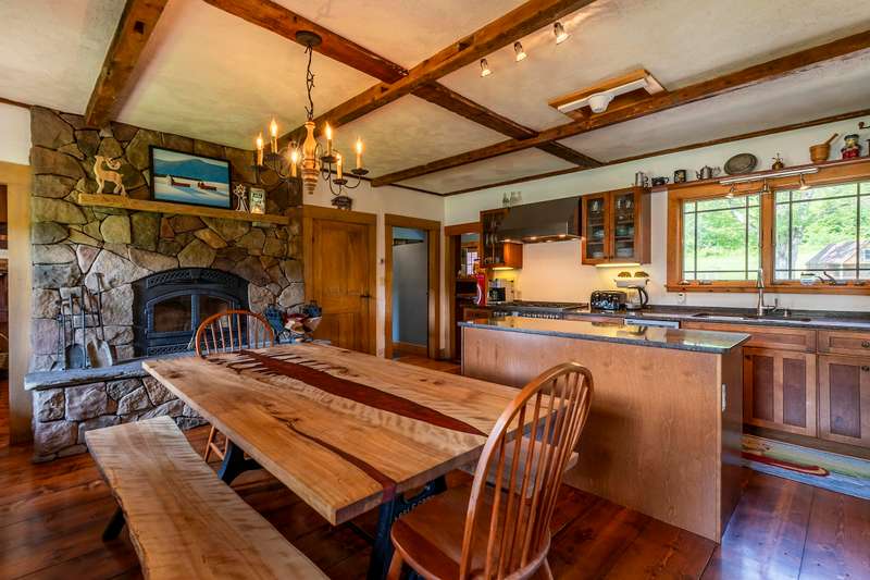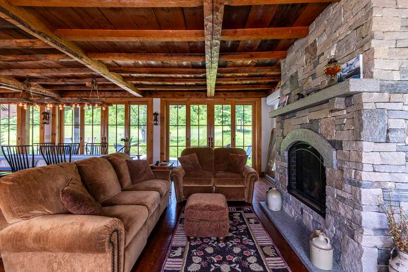 Experience timeless elegance and modern luxury in this exquisitely renovated 1834 farmhouse, gracefully sited on one of Cavendish s most sought-after country roads. Thoughtfully updated while preserving its historic charm, this extraordinary residence features a state-of-the-art chef s kitchen, whole house a/c and an expansive open-concept main level adorned with original hand-hewn beams and architectural character throughout. French doors lead to an oversized deck, ideal for alfresco entertaining, with sweeping views of the serene swimming pond and pastoral fields. Choose between the warmth of a classic stone hearth wood-burning fireplace or the ease of a sophisticated new propane fireplace for the perfect apr s-ski ambiance. The home offers a luxurious primary suite and three additional en-suite guest rooms, ensuring comfort and privacy for all. A spacious media and bunkroom above the attached three-bay garage, along with a fully finished lower-level game room, provide exceptional sp