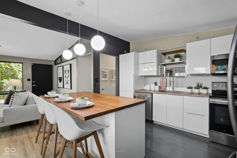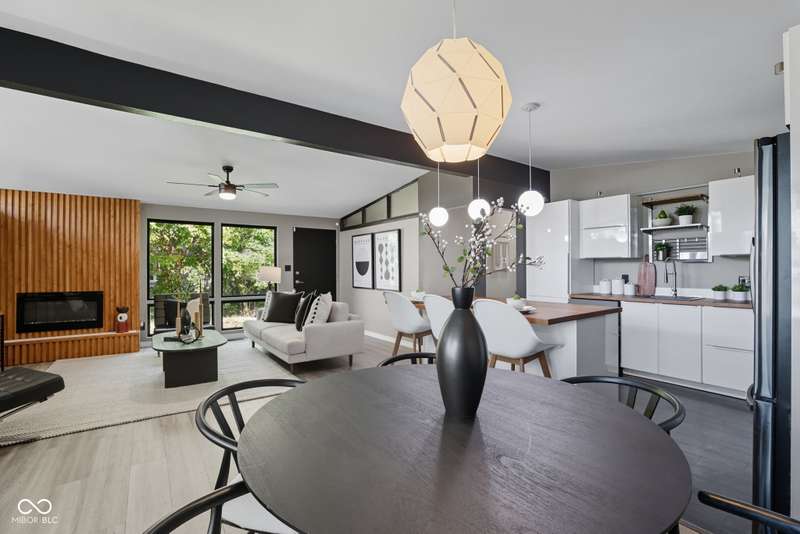 Mid-Century Modern Masterpiece in Devington - Historic Model Home Step into architectural history with this iconic Mid-Century Modern home, originally designed by Fran E. Schroeder & Associates and built by R. F. Wirsching was one of the model homes for Devington. One of 26 contemporary designs in the neighborhood built by R. F. Wirsching, this 1954 ranch showcases the timeless elegance of the era, including striking clerestory windows, a sandstone accent wall, and redwood siding. Awarded "Most Outstanding New Design" by the National Association of Home Builders in 1954, this home blends vintage character with modern updates. Recent improvements include a new roof and copper penny-colored gutter system (2024), HVAC (2020), water heater (2020), and a beautifully remodeled kitchen true to its character (2020) with stainless steel appliances. Situated on a nearly half-acre wooded lot, this home offers privacy, charm, and a connection to nature, while maintaining the sleek, clean lines of classic Mid-Century Modern design. A true gem for collectors, enthusiasts, or anyone seeking a unique architectural statement.