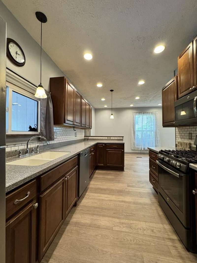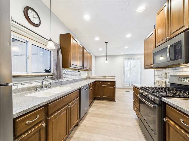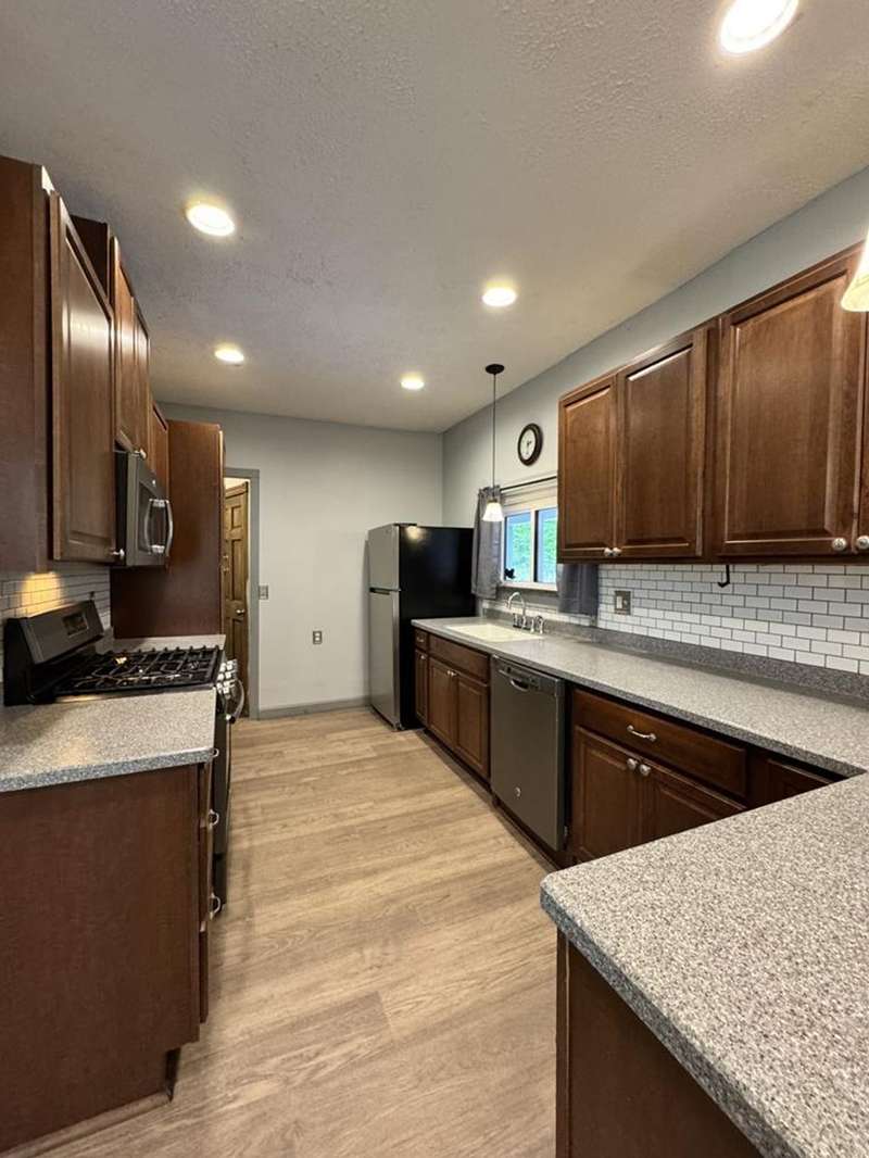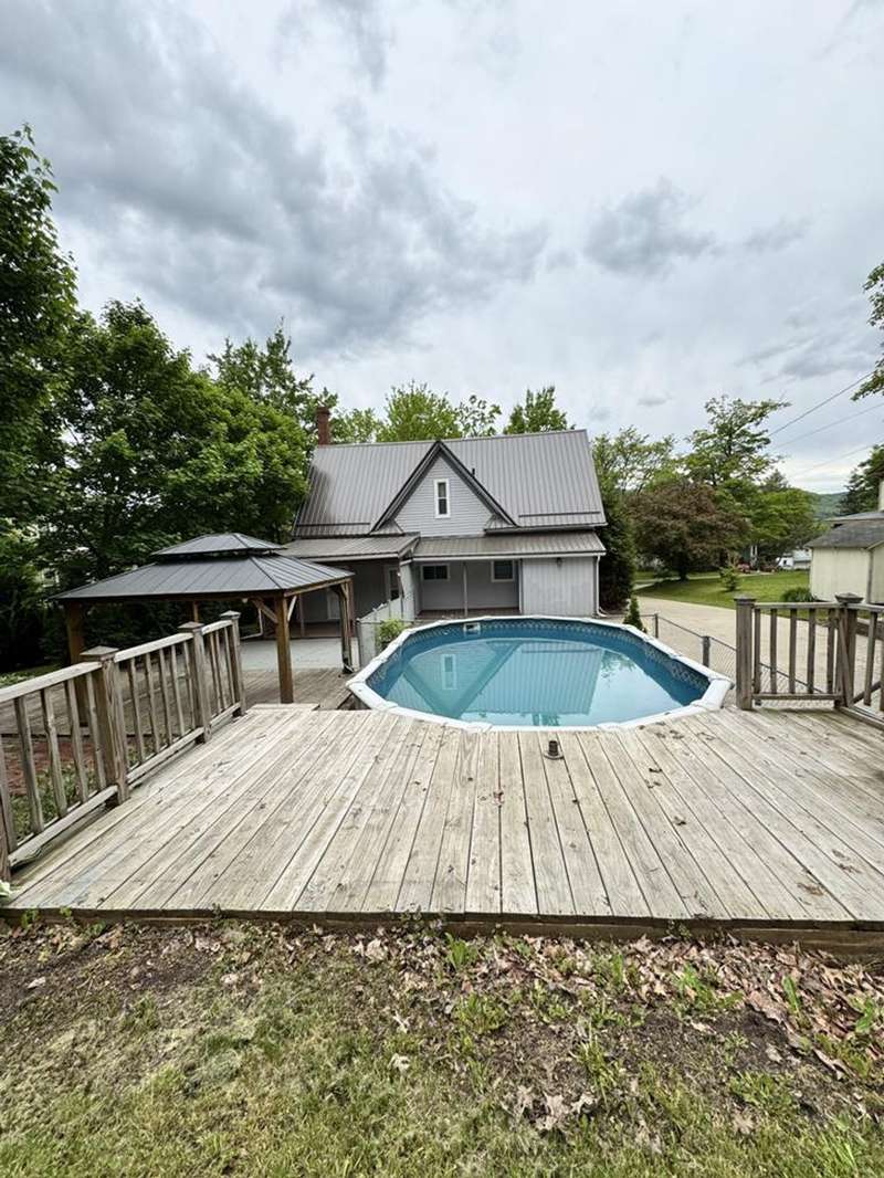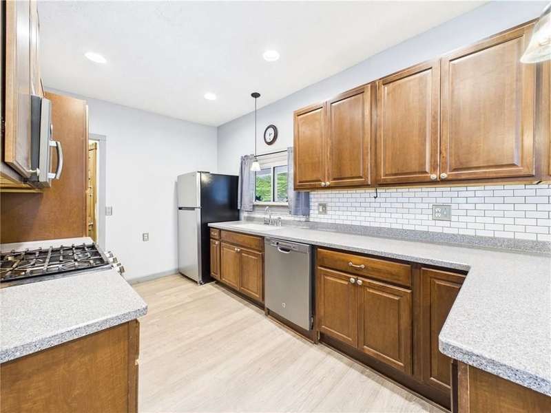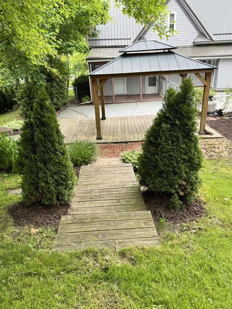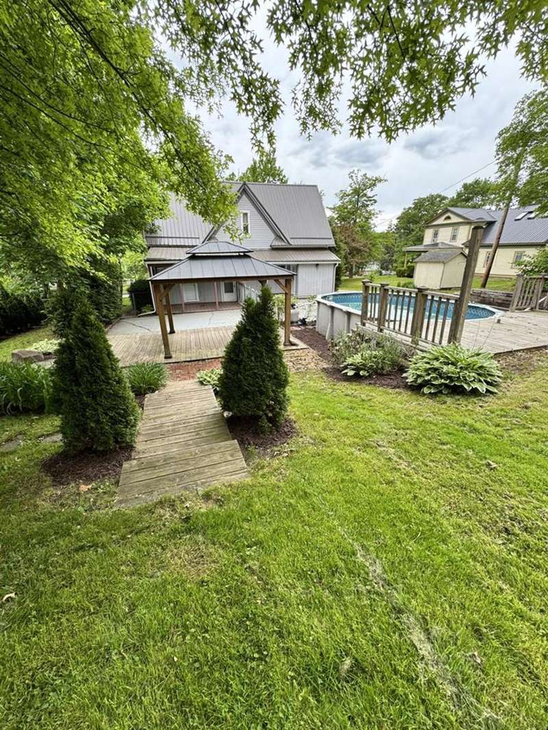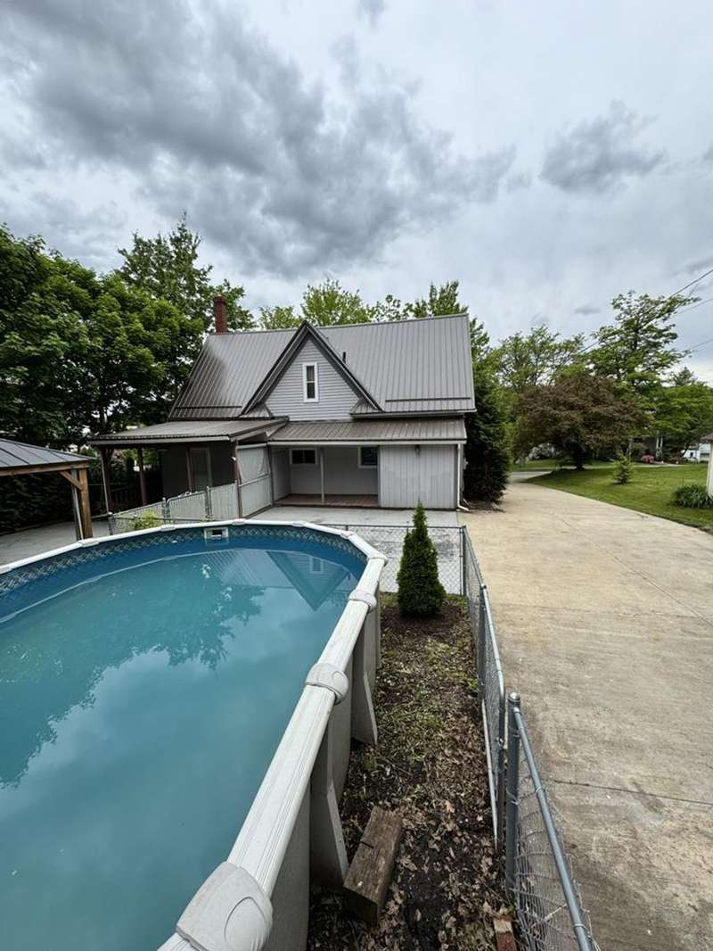 Copy link to view tour: https://tour.giraffe360.com/271a6f8df68549b5af2b274335f56e27/ - Step into this contemporary two-story home, where modern living meets comfort. The heart of this home is the remodeled kitchen, featuring Corian countertops and stainless-steel appliances. Bedroom and bathroom on each level. Elevate your space with the unique wall handcrafted string-art musical note that adds a touch of modern elegance and visual interest to any room, creating a captivating focal point. Enjoy outdoor living with an above-ground pool with an attachment for a heater. Enjoy poolside entertaining under the covered pavilion with electric hookups. Ideal for hosting gatherings and relaxing with family and friends. Fully fenced backyard. The concrete driveway adds to the home's curb appeal.
