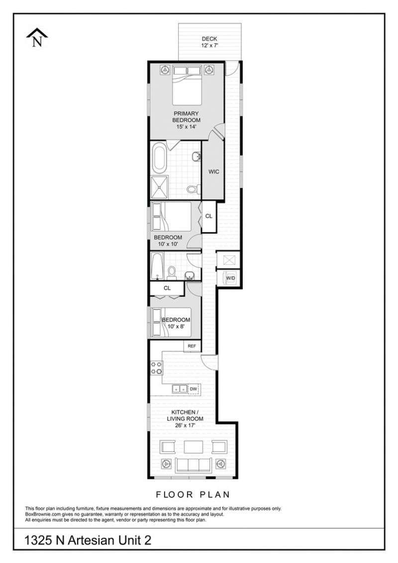 Welcome to 1325 N Artesian, West Town's premier ground up new construction development. This second floor simplex is a can't miss with luxury upgrades at every turn. Walk into the entertainer's kitchen- panel ready Thermador appliance package, custom European Cabinetry, granite countertops (time for customization), counter depth refrigerator, undermount lighting, microwave drawer, pendant lighting, soaring ceilings, and a large peninsula. East-facing, show-stopping, floor to ceiling windows shine light throughout the open concept family/kitchen space. Luxury feature list includes built in speakers throughout, smart thermostats, and Kohler bath spa finishes. The primary suite features extra large WIC, spa soaking tub, and a private balcony with a view. Top notch capex includes tankless water heater, high efficiency mechanicals and humidifier. Private outdoor space, carport garage space with EV charger, one year builder's warranty, time for some customization (don't wait), late Sept Delivery. Enjoy all that West Town and Wicker Park has to offer from a quiet, tree-lined block. Run don't walk.