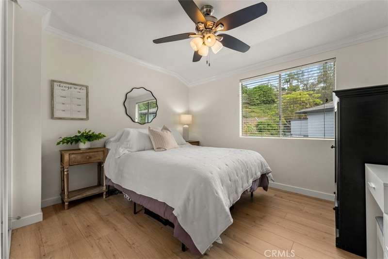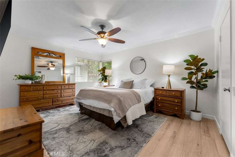 RARE 2 CAR GARAGE!!! Welcome to this beautifully updated upper-level, single-story home in the highly desirable community of Fairmont Hills. Featuring 3 spacious bedrooms and 2 bathrooms, this residence combines comfort, convenience, and modern upgrades. Step inside to find brand-new laminate flooring and fresh interior paint, creating a light and airy feel throughout. The open layout is filled with natural light and enhanced by crown molding and thoughtful finishes. The upgraded HVAC system and whole-house fan ensure year-round comfort. The generously sized bedrooms include a primary suite with a large walk-in closet, while the additional bedrooms offer plenty of space for family, guests, or a home office. Convenient inside laundry room with storage. Unique to this floor-plan, this unit comes with its own private 2-car garage--with no one living below you, just the garages. Outdoor living is just as enjoyable, thanks to a private porch balcony with scenic hill views, the perfect spot to relax or entertain. Location is key, and this home delivers: as an end unit, you'll enjoy extra privacy along with over a dozen unreserved guest parking spaces conveniently located right in front of and adjacent to the property. With its blend of modern updates, thoughtful layout, and unbeatable location, this home is truly a rare find in Yorba Linda.