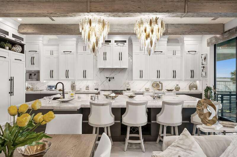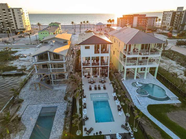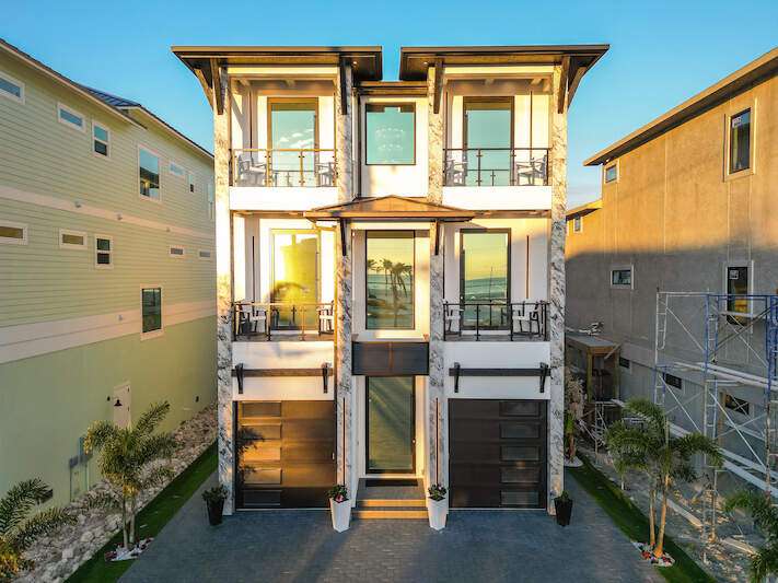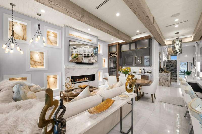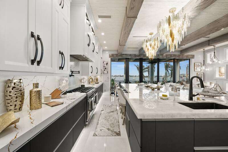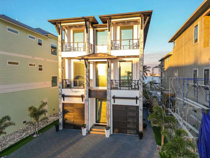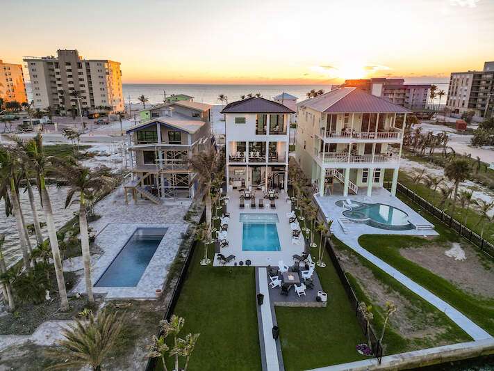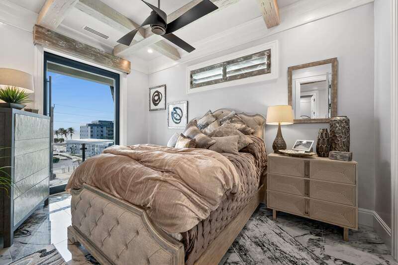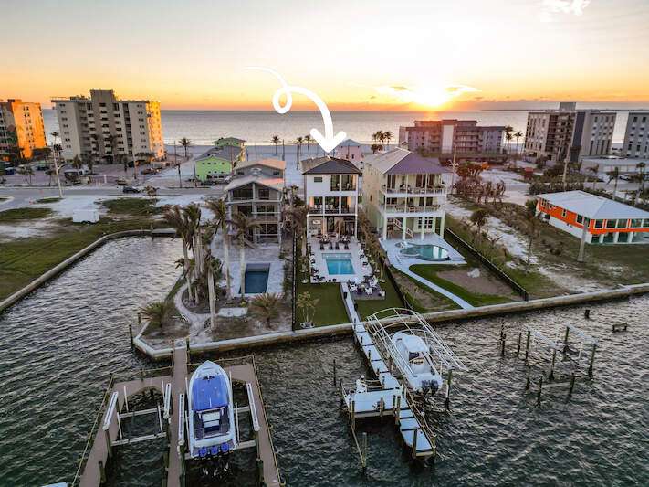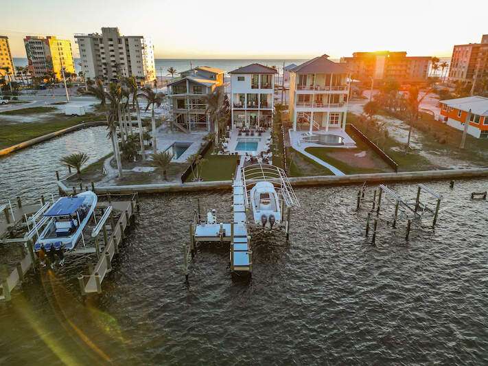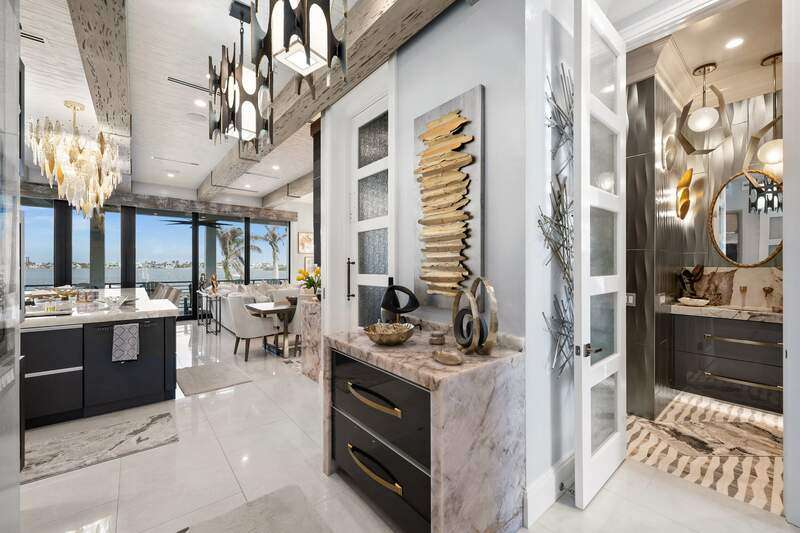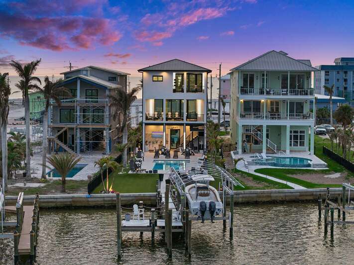 441 seamlessly merges modern luxury with coastal elegance while featuring 4 bedrooms and 4 bathrooms. This architectural masterpiece is designed for those who demand the unparalleled. Elevated to perfection, this home features 30-inch reinforced concrete slabs, PGT windows with advanced tinted glass, 2 Insta-hot Water Heaters, and a robust 24-gauge standing seam metal roof. The expansive bayside veranda offers panoramic views of San Carlos Bay and radiant sunrises. Inside, a symphony of curated details creates an ambiance of refined elegance. Architectural resin pecky cypress beam ceilings, monolithic quartzite slab surfaces, and Lauriermax cabinetry add depth and texture. A Sonos entertainment system, smart-controlled blinds, and a full-spectrum LED lighting design enhance modern living. The gourmet culinary space is a showpiece, with a Wolf gas 6-burner stove, Sub-Zero panel refrigerator, quartzite surfaces, and integrated barista system. The living and dining areas are adorned with polished 24"x48" flooring, custom cabinetry, interior gas fireplace, and unobstructed bayfront views. 2 Guest bedrooms offer luxury en-suite baths, while all bathrooms are highlighted by quartzite counters, custom cabinetry, and spa-like showers. All bedrooms offer a private balcony. The owner's suite features a hydrotherapy jet tub, walk-in wardrobe, custom finishes and serene views of the Bay. The exterior is a private oasis with an alfresco culinary space including roll down screens and shutters, a pool featuring custom underwater seating, Outdoor fire pit, Florida landscaping with artificial grass (no cutting!) plus Native palm trees and plants with hydration system. Walk out to the high-performance dock with 2 boat lifts: one up to 15,000 lbs and one up to 6,000lbs, and a brand new seawall! The intricate details and bespoke appointments are abundant, defying description-A true masterpiece that must be experienced to be fully appreciated.