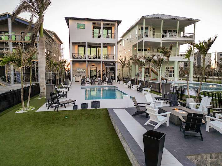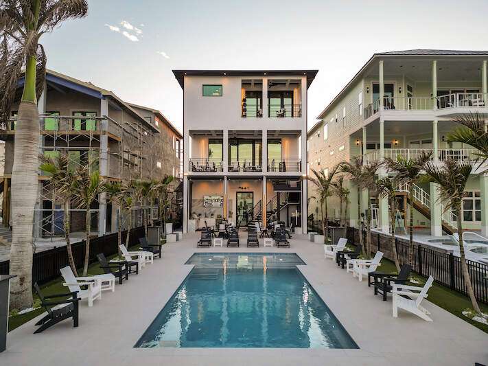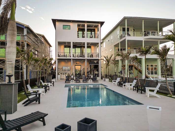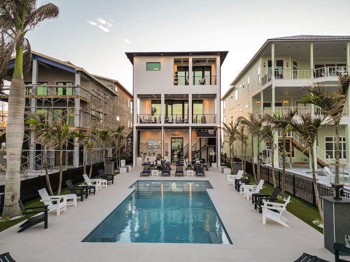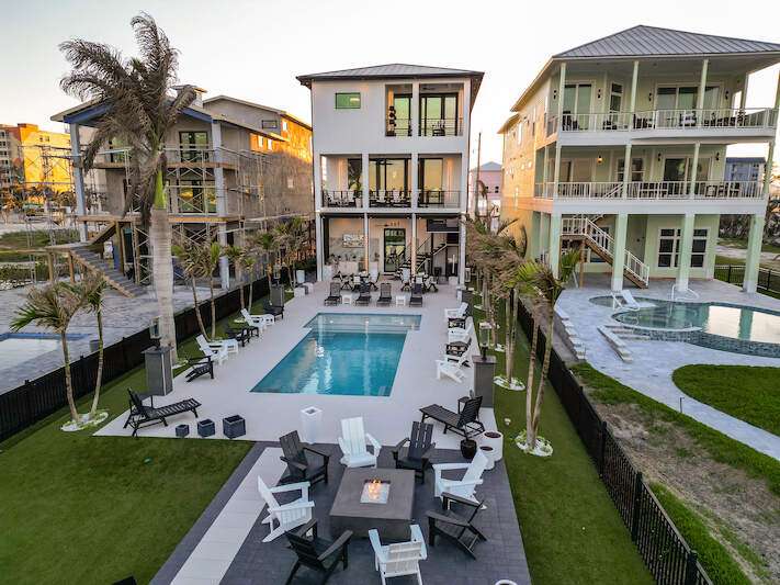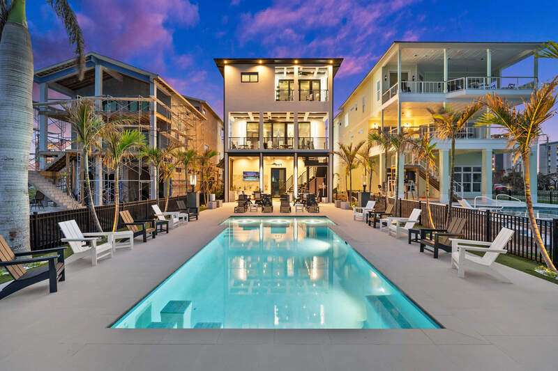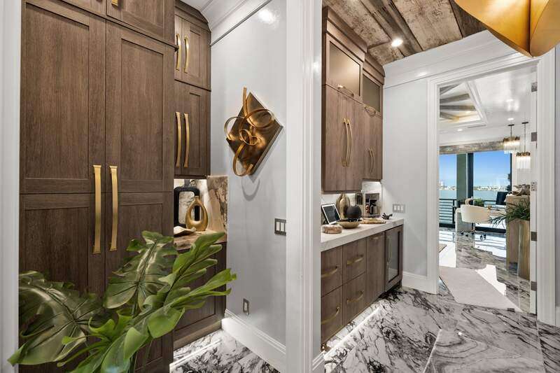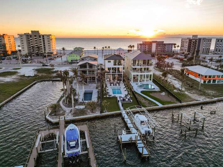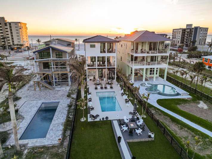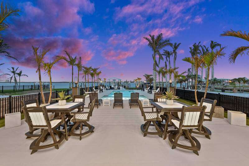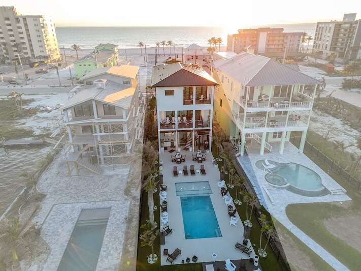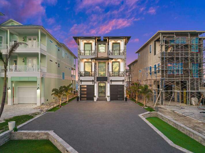 441 seamlessly merges modern luxury with coastal elegance while featuring 4 bedrooms and 4 bathrooms. This architectural masterpiece is designed for those who demand the unparalleled. Elevated to perfection, this home features 30-inch reinforced concrete slabs, PGT windows with advanced tinted glass, 2 Insta-hot Water Heaters, and a robust 24-gauge standing seam metal roof. The expansive bayside veranda offers panoramic views of San Carlos Bay and radiant sunrises. Inside, a symphony of curated details creates an ambiance of refined elegance. Architectural resin pecky cypress beam ceilings, monolithic quartzite slab surfaces, and Lauriermax cabinetry add depth and texture. A Sonos entertainment system, smart-controlled blinds, and a full-spectrum LED lighting design enhance modern living. The gourmet culinary space is a showpiece, with a Wolf gas 6-burner stove, Sub-Zero panel refrigerator, quartzite surfaces, and integrated barista system. The living and dining areas are adorned with polished 24"x48" flooring, custom cabinetry, interior gas fireplace, and unobstructed bayfront views. 2 Guest bedrooms offer luxury en-suite baths, while all bathrooms are highlighted by quartzite counters, custom cabinetry, and spa-like showers. All bedrooms offer a private balcony. The owner's suite features a hydrotherapy jet tub, walk-in wardrobe, custom finishes and serene views of the Bay. The exterior is a private oasis with an alfresco culinary space including roll down screens and shutters, a pool featuring custom underwater seating, Outdoor fire pit, Florida landscaping with artificial grass (no cutting!) plus Native palm trees and plants with hydration system. Walk out to the high-performance dock with 2 boat lifts: one up to 15,000 lbs and one up to 6,000lbs, and a brand new seawall! The intricate details and bespoke appointments are abundant, defying description-A true masterpiece that must be experienced to be fully appreciated.