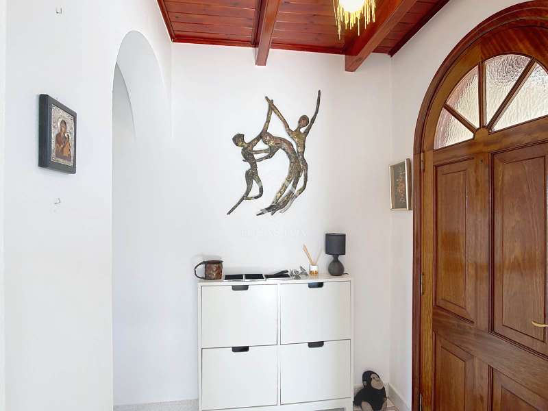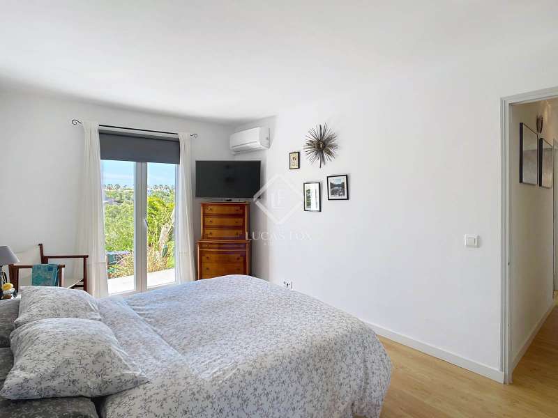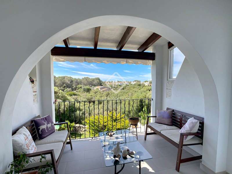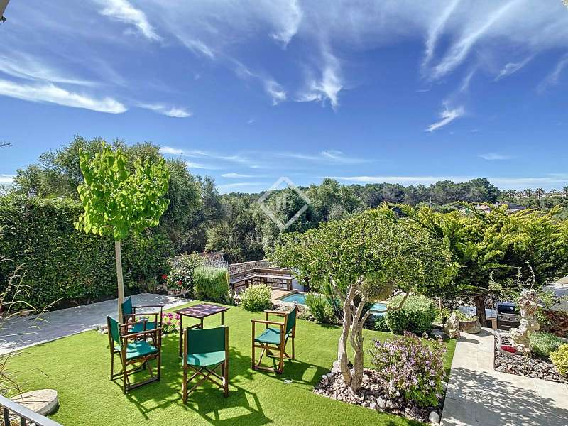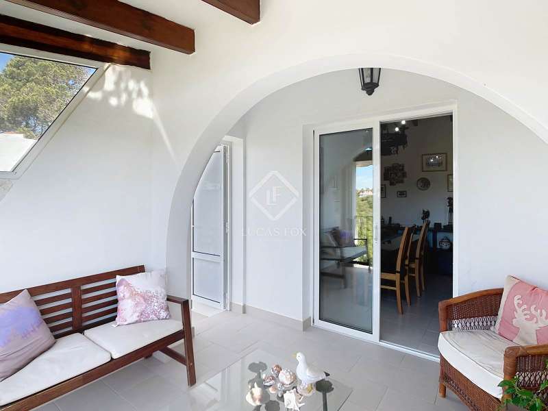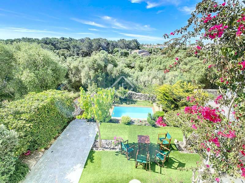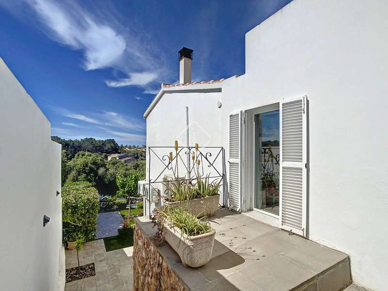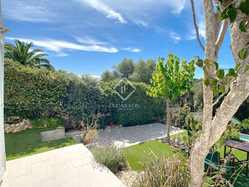 Lucas Fox presents this exclusive 163 m² villa on a magnificent 432 m² multi-level plot , in the protected area of Des Pinaret and Santandria, in the municipality of Ciutadella de Menorca. The property is spread over two comfortable floors. The entrance, with a beautiful wrought-iron gate, welcomes us into a small entrance hall that leads to a single bedroom with access to the terrace and garden , and to a bathroom with a shower. Next to this is a spacious and bright living-dining room with a fireplace, high wood-paneled ceilings, and large windows that flood the entire room with natural light. They access onto a cozy covered porch with unobstructed views of the countryside and stairs leading down to the garden. Adjacent to the dining room is a modern, fully equipped kitchen that provides access to the garage. From the living room and through a comfortable staircase we go down to the lower floor that leads us to the night area, where we find two elegant bedrooms with built-in wardrobes, both with access to the terrace and the garden, a bathroom with a corner bathtub and access to the utility room area. The house has hot-and-cold split air conditioning in all rooms, solar panels, and an alarm. The exterior offers a tranquil setting spread over two levels. It is very peaceful and features a well-kept garden with native plants and artificial turf, where we have a barbecue area for outdoor gatherings and dinners with family or friends, a swimming pool, two storage rooms, and a vegetable garden garden. Without a doubt, this is a perfect property for year-round living or relaxing during the summer months, enjoying a privileged setting with family and/or friends. Contact us for more information or to arrange a viewing.