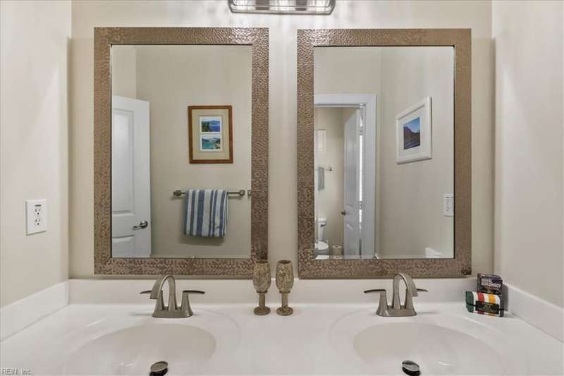 COASTAL DESIGN IN NEWER SOUGHT AFTER WATERFRONT COMMUNITY ON THE ELIZABETH RIVER! Community boasts an expansive waterfront Gazebo w/ access to deep water, Clubhouse w/ pool, Fitness Room, Nature Preserves w/ expansive green spaces & private trails throughout the Community. Garden Views! STUNNING WOOD FLOORING throughout the downstairs. Luxurious Culinary Kitchen features Granite Counter tops, Butler's pantry & ss appliance package. Comfortable open living spaces w/ 8 ft doors, high ceilings + BONUS downstairs Flex Space for Office/5th bedroom. Spacious Master Bedroom w/ Flex Space for Sitting Room/Home Office, LARGE walk-in closet! Luxurious master bath w/ tile, separate shower & oversized tub. Complete w/ Gazebo, large back yard & 2 car detached garage. All the BELLS & WHISTLES you can Dream of... & so much more. ...WELCOME HOME! Turnkey Ready!