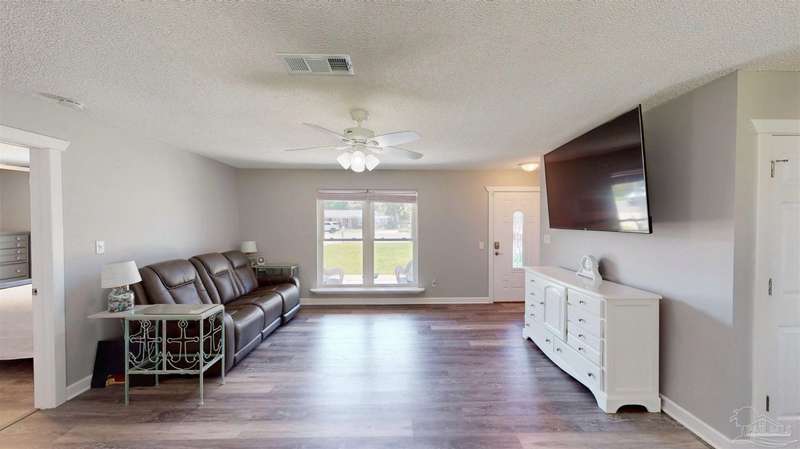 OPEN HOUSE Sept 28th Sunday 1-4pm! This beautifully maintained 3-bedroom, 2-bathroom home offers 1,288 square feet of comfortable living space on an impressive .44-acre lot. Built in 1986 and thoughtfully updated, it blends modern finishes with practical upgrades, making it move-in ready. Inside, you'll find luxury vinyl flooring throughout, a renovated kitchen with new quartz countertops, a slimline microwave, LG refrigerator, and a double-deep sink, along with updated bathrooms, new toilets, fresh lighting, and ceiling fans. Hurricane windows with a lifetime transferable warranty provide added peace of mind. Recent system updates include a roof installed in 2021, a water heater in 2020, HVAC in 2023, and septic serviced in 2023, plus a termite bond in place. In addition to a one-car garage and a two-car carport, the property stands out for its outdoor features. The fully fenced backyard is perfect for relaxing or entertaining, and it boasts a 22' x 14' powered workshop with a new wall-mounted AC unit, as well as a 15' x 11' powered storage shed-ideal for hobbies, projects, or extra storage space. A covered patio and hurricane shutter panels complete the package. Tucked away on a cul-de-sac, this home sits on a generous .44-acre lot, fully fenced in, offering plenty of space outside for your enjoyment! Conveniently located near NAS Pensacola, home of the Blue Angels, Perdido Key beaches, Johnson Beach, the new Publix, downtown Pensacola, Blue Wahoos Stadium, and the Bay Center for Ice Flyers hockey, this home offers both comfort and convenience. This is a rare find that delivers space, functionality, and an unbeatable location.