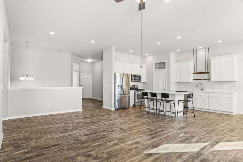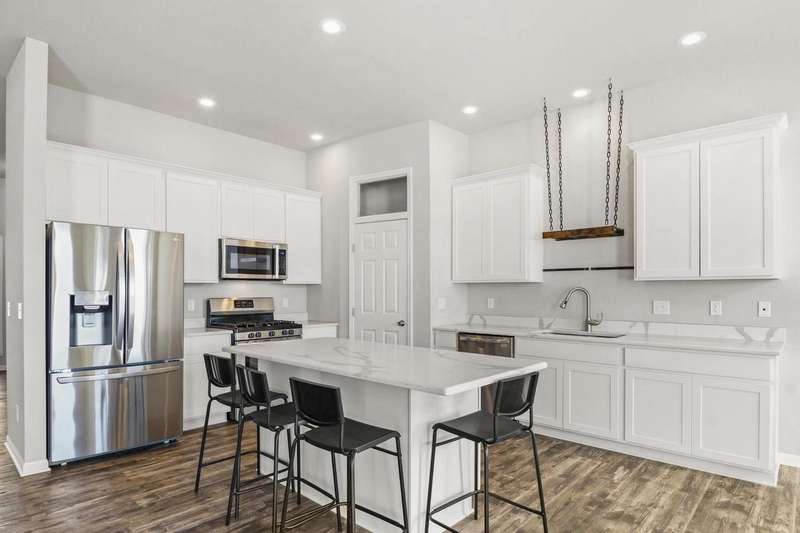 Why wait to build when you can move right into this upgraded, like-new Belleville ranch? You'll love the open layout w/ soaring ceilings, stylish LVP floors, recessed lighting, classic 6-panel doors, & inviting living room with a cozy gas fp seamlessly connected to the stunning kitchen featuring quartz counters, a gas range, & walk-in pantry. 3 bdrms include a primary suite w/ an en suite bath & walk-in closet. The front flex room makes the perfect home office or playroom, while the expansive LL is filled w/ natural light & stubbed for a full bath, ready to finish to your style. Other stand-out features hard to find within a new construction include a convenient laundry rm (w/ washer & dryer included!), mounted EV charger in the 3-car garage, & fully fenced-in yard with concrete patio!