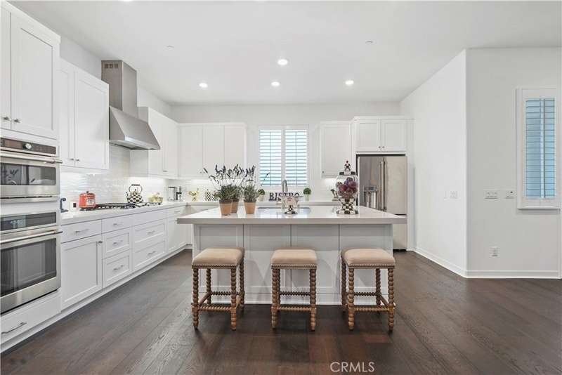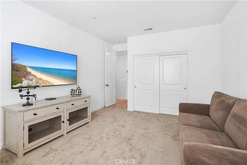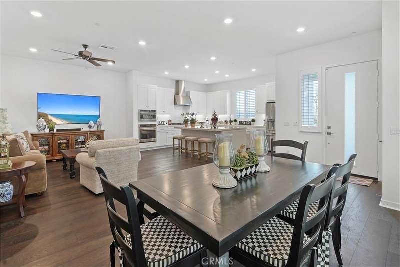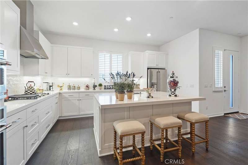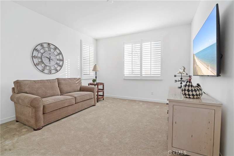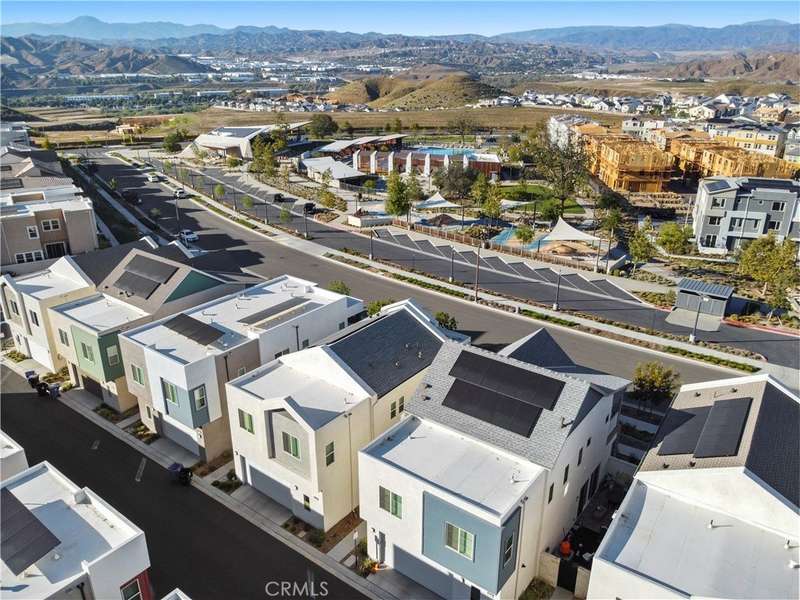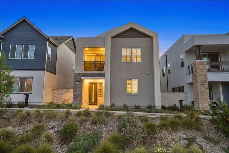 Welcome to this gorgeous detached home in the highly desirable Five Point community prime positioned location with incredible city lights and mountain views. From the moment you arrive, you'll notice the attention to detail, stylish upgrades, and open, airy feel that make this home stand out. Step inside to a bright and spacious layout with soaring ceilings and tons of natural light. The main level features a large great room that's perfect for entertaining, a spacious dining area that leads to a sliding glass door that opens to a serene patio—ideal for al fresco dining or morning coffee, a convenient powder room, and direct access to the garage. The kitchen is a showstopper with sleek quartz countertops, white shaker cabinets, a designer tile backsplash, an oversized island with a breakfast bar, and top-of-the-line appliances. Upstairs, you'll find three roomy bedrooms all with impressive 11-foot ceilings. The primary suite feels like a luxury retreat, complete with dual vanities, upgraded tile, a huge walk-in closet, and a private balcony where you can enjoy those amazing views. The other two bedrooms share a beautifully upgraded full bath, and there's even a laundry room upstairs for added convenience. This home is packed with upgrades, including plantation shutters, hardwood floors downstairs, designer carpet upstairs, ceiling fans, and smart home features. The attached 2-car garage has an EV charger, overhead storage, built-in cabinets, a workbench, and pegboard everything you need for storage and hobbies. Out back, a private patio with custom pavers and low-maintenance turf is perfect for weekend BBQs or relaxing in the sun. Even better? The home comes with solar, and the Five Point community is built as a net-zero, eco-conscious neighborhood. Right across the street, Confluence Park offers three resort-style pools, playgrounds, BBQ grills, a community garden, fire pits, and regular events to bring neighbors together. With 24/7 private security, top-rated schools on the way, and easy access to Magic Mountain and everything nearby, this is more than just a house it's a lifestyle you'll love.