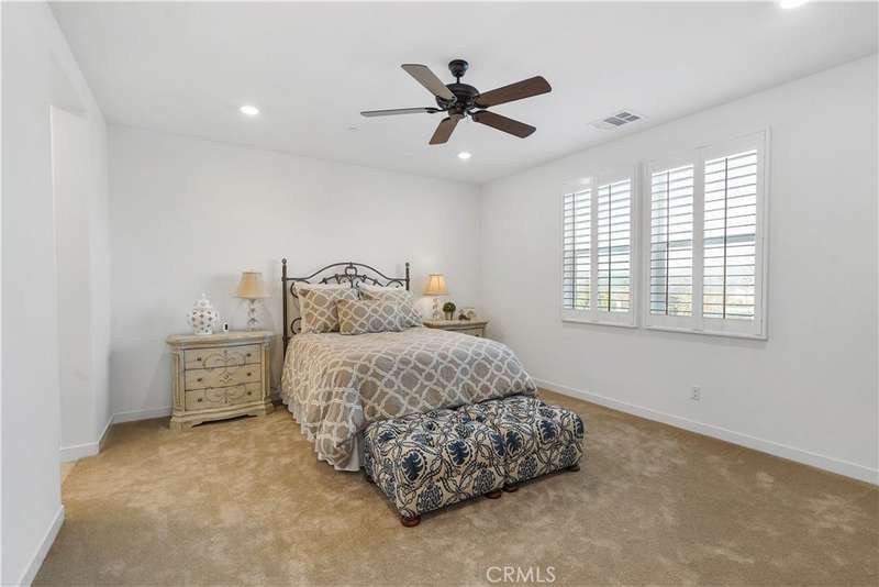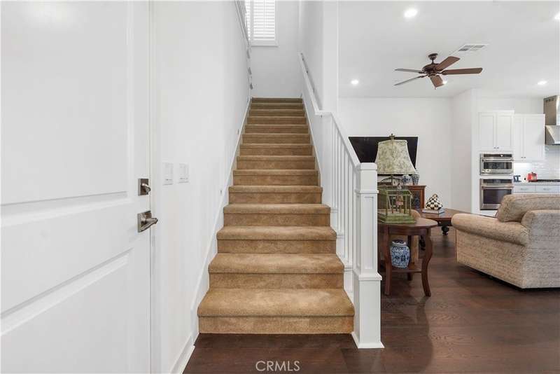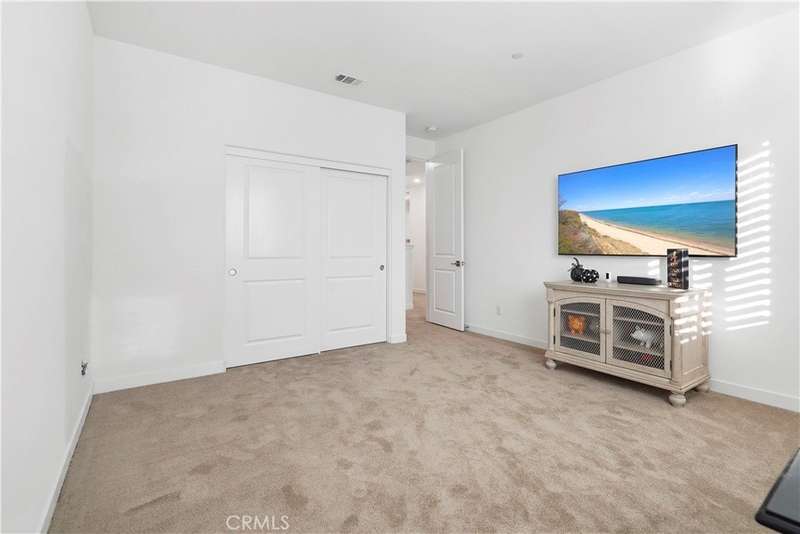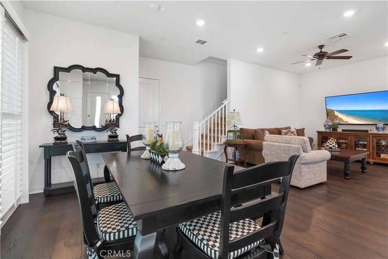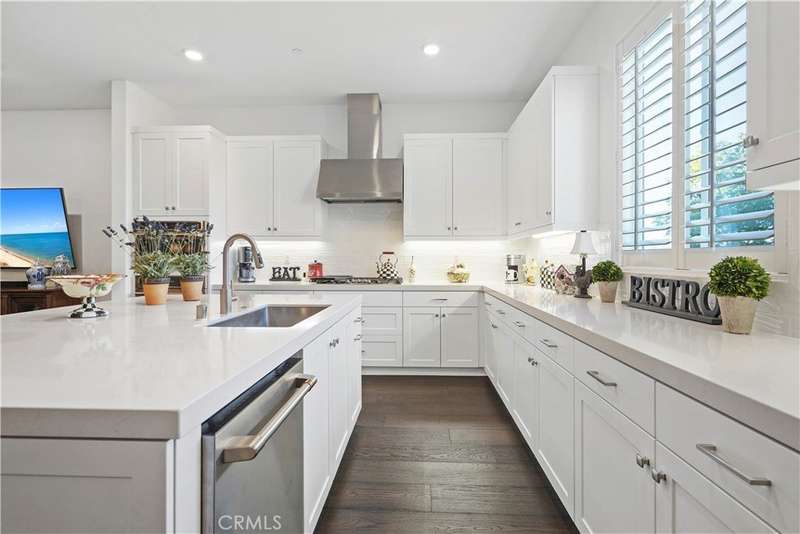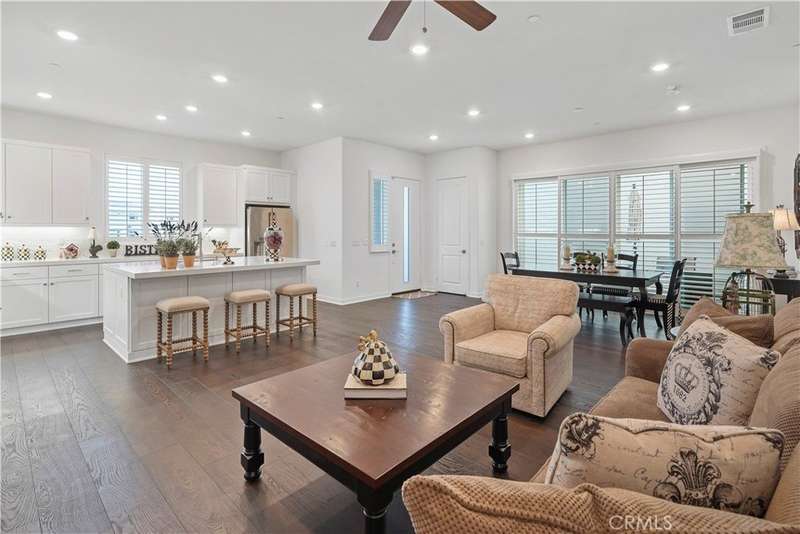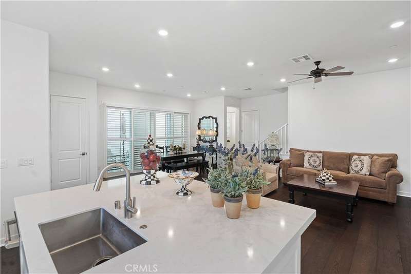 Welcome to this gorgeous detached home in the highly desirable Five Point community prime positioned location with incredible city lights and mountain views. From the moment you arrive, you'll notice the attention to detail, stylish upgrades, and open, airy feel that make this home stand out. Step inside to a bright and spacious layout with soaring ceilings and tons of natural light. The main level features a large great room that's perfect for entertaining, a spacious dining area that leads to a sliding glass door that opens to a serene patio—ideal for al fresco dining or morning coffee, a convenient powder room, and direct access to the garage. The kitchen is a showstopper with sleek quartz countertops, white shaker cabinets, a designer tile backsplash, an oversized island with a breakfast bar, and top-of-the-line appliances. Upstairs, you'll find three roomy bedrooms all with impressive 11-foot ceilings. The primary suite feels like a luxury retreat, complete with dual vanities, upgraded tile, a huge walk-in closet, and a private balcony where you can enjoy those amazing views. The other two bedrooms share a beautifully upgraded full bath, and there's even a laundry room upstairs for added convenience. This home is packed with upgrades, including plantation shutters, hardwood floors downstairs, designer carpet upstairs, ceiling fans, and smart home features. The attached 2-car garage has an EV charger, overhead storage, built-in cabinets, a workbench, and pegboard everything you need for storage and hobbies. Out back, a private patio with custom pavers and low-maintenance turf is perfect for weekend BBQs or relaxing in the sun. Even better? The home comes with solar, and the Five Point community is built as a net-zero, eco-conscious neighborhood. Right across the street, Confluence Park offers three resort-style pools, playgrounds, BBQ grills, a community garden, fire pits, and regular events to bring neighbors together. With 24/7 private security, top-rated schools on the way, and easy access to Magic Mountain and everything nearby, this is more than just a house it's a lifestyle you'll love.