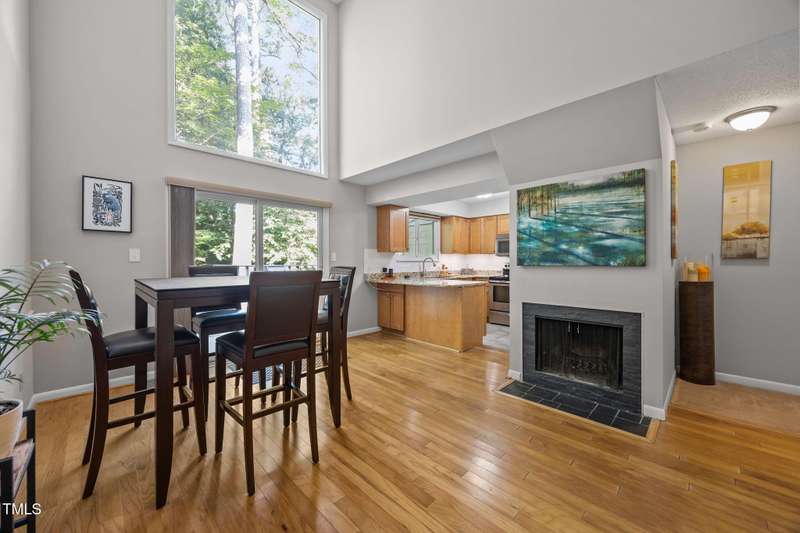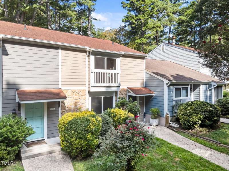 Incredible North Raleigh location near shopping, dining, major travel corridors, and North Hills. Stone Front and Covered Entry Porch welcome you into the Tile Entry with Stacked Slate Stone Accents in the Foyer. Large Family Room. Two Story Dining Room is flooded with Natural Light from the 2nd Story Window and overlooks a Private Backyard. Tile Kitchen with Maple Cabinetry, Granite Countertops, and Stainless Steel Stove, Microwave, and Dishwasher. Primary Bedroom features a sliding glass door balcony opening. Double Closets. Primary Bathroom has freshly Refinished Tile Flooring and Tile Shower. Guest Bathroom has New Tile Shower Surround and Refinished Tile Flooring. Fenced Paver Patio w/ Stacked Stone Wall. Refrigerator, Washer, and Dryer Convey! Fresh Interior Paint. New Anderson Windows 2023/24. New Hot Water Heater 2023. Great storage throughout. Community Pools & Clubhouse.