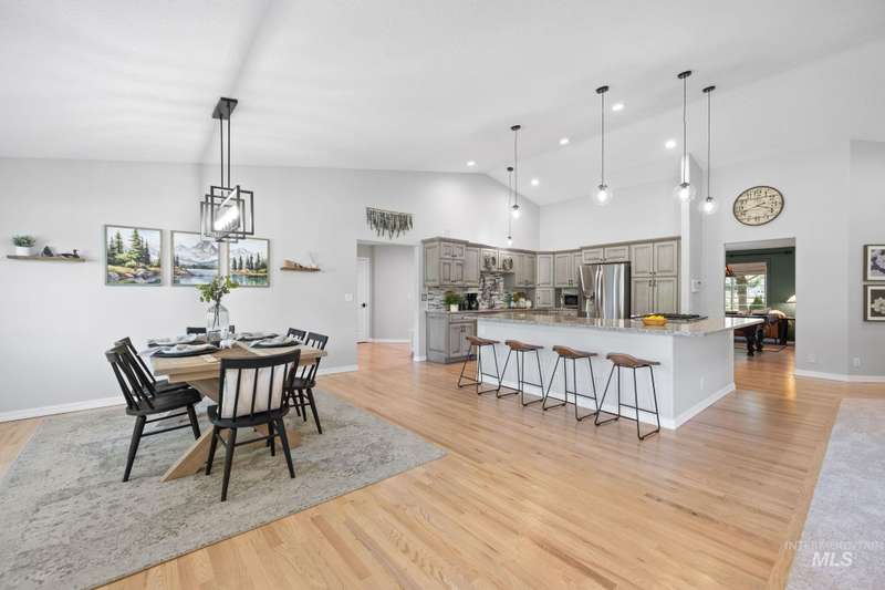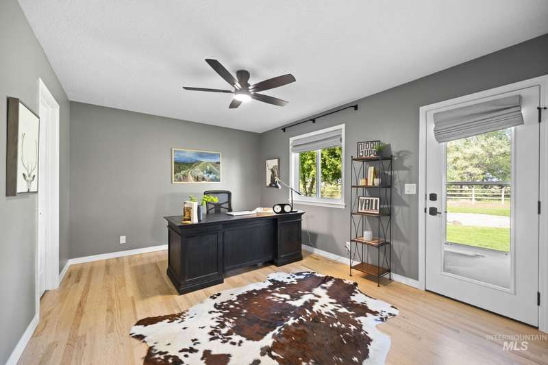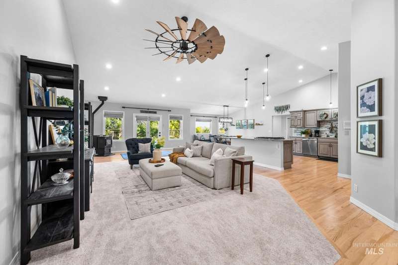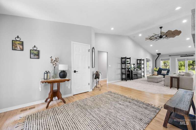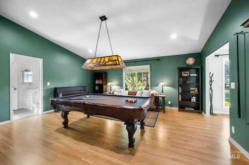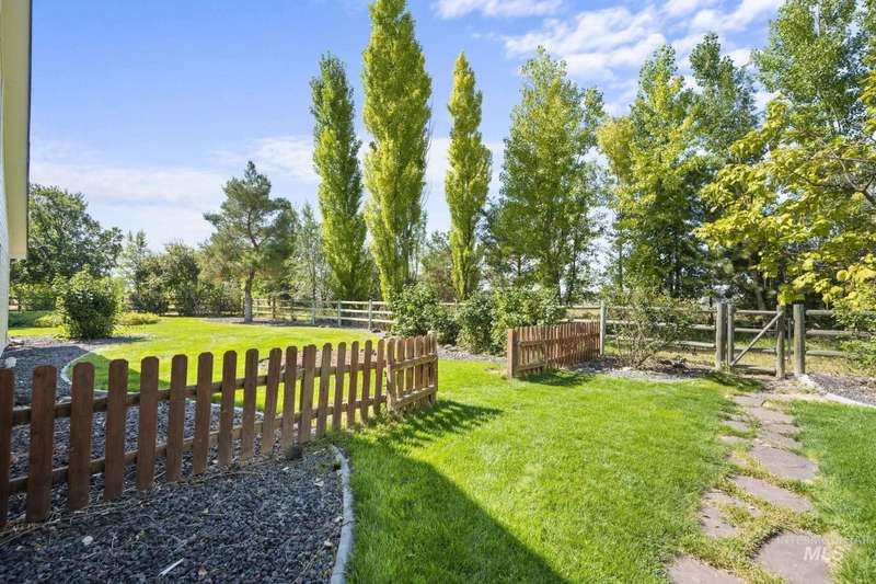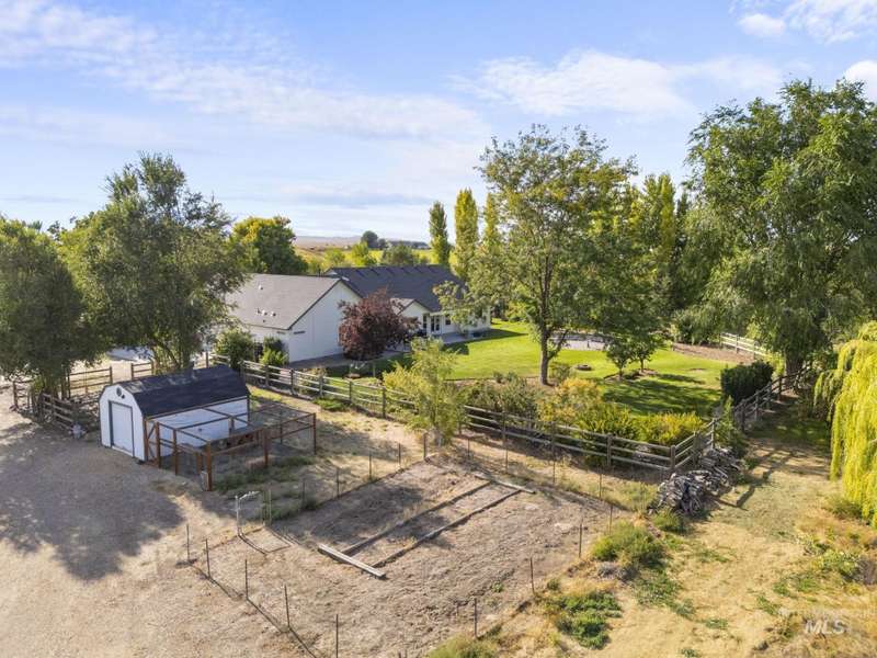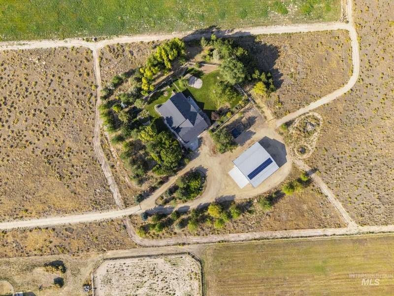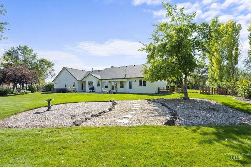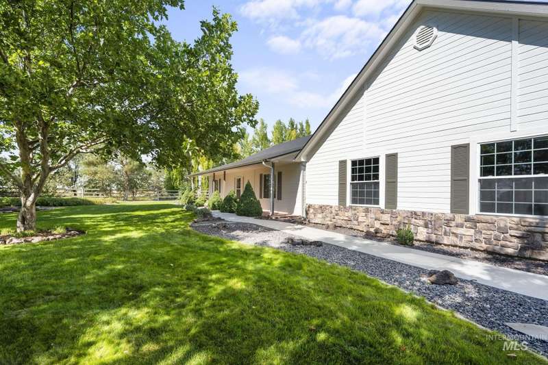 Sprawling Farmland and Open Skies, a Peaceful Retreat. This beautifully renovated single-level home blends refined country living with modern comfort. The open floor plan highlights sleek finishes and expansive windows that capture panoramic views. The large chef's kitchen opens to a spacious dining area perfect for gatherings, while the great room with pellet stove creates a warm retreat. A billiards room offers a pool table and entertaining space. The large private primary suite opens to lush green space and a hot tub, a true sanctuary. Solar panels deliver efficient, low cost electricity. The property boasts a 60'x40" insulated shop, mature trees including peach pear, plum, cherry apricot & apple, complement expansive irrigable acreage inviting your dream lifestyle- whether equestrian pursuits, hobby farming, or simply savoring wide open Idaho skies. Tractor and farm equipment included. Located just minutes from Kuna and a short drive to Boise, this property offers peace, privacy and endless possibilities.