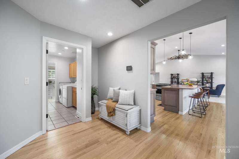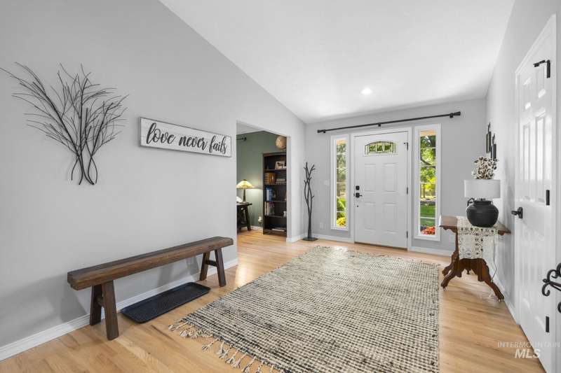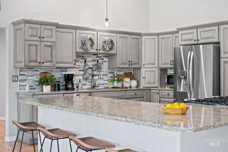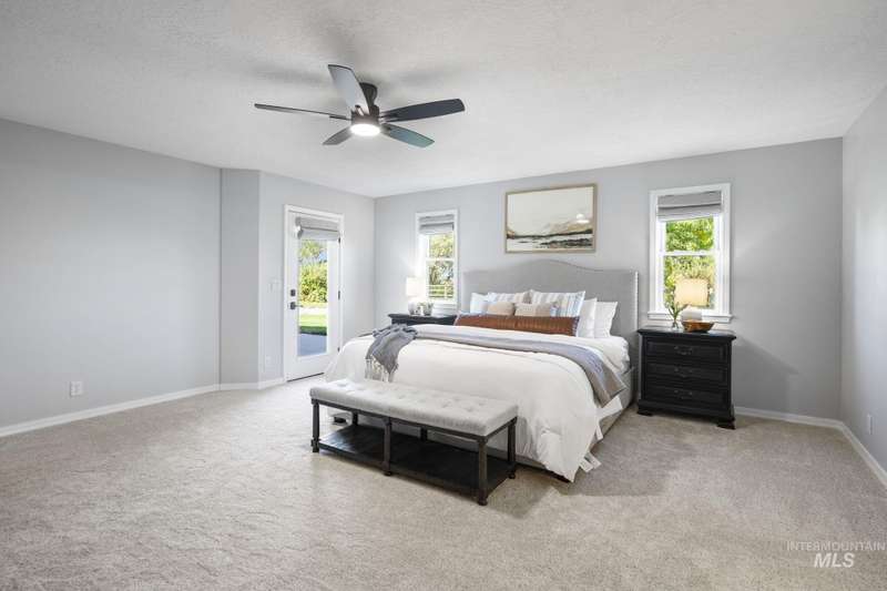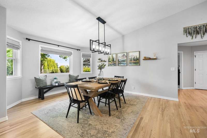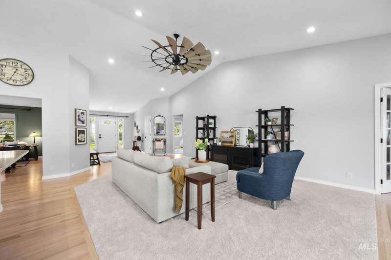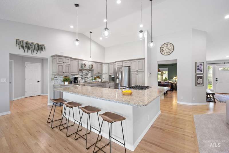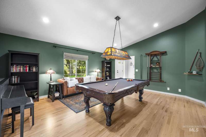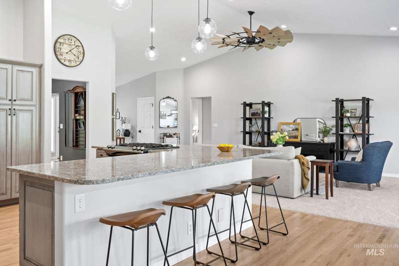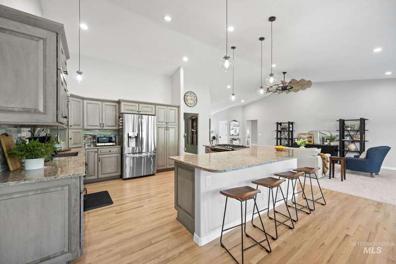 Sprawling Farmland and Open Skies, a Peaceful Retreat. This beautifully renovated single-level home blends refined country living with modern comfort. The open floor plan highlights sleek finishes and expansive windows that capture panoramic views. The large chef's kitchen opens to a spacious dining area perfect for gatherings, while the great room with pellet stove creates a warm retreat. A billiards room offers a pool table and entertaining space. The large private primary suite opens to lush green space and a hot tub, a true sanctuary. Solar panels deliver efficient, low cost electricity. The property boasts a 60'x40" insulated shop, mature trees including peach pear, plum, cherry apricot & apple, complement expansive irrigable acreage inviting your dream lifestyle- whether equestrian pursuits, hobby farming, or simply savoring wide open Idaho skies. Tractor and farm equipment included. Located just minutes from Kuna and a short drive to Boise, this property offers peace, privacy and endless possibilities.