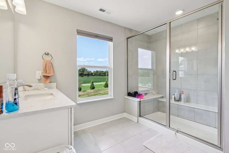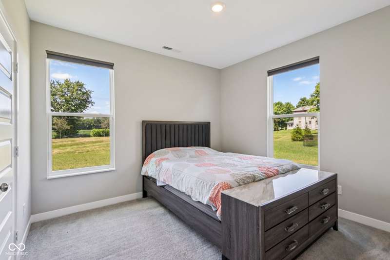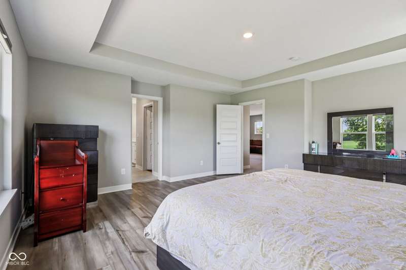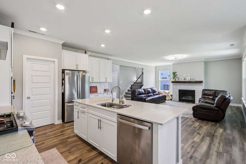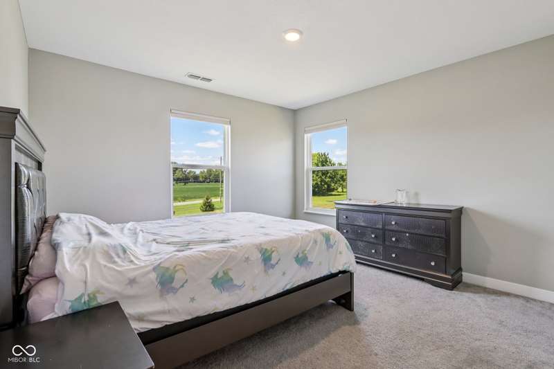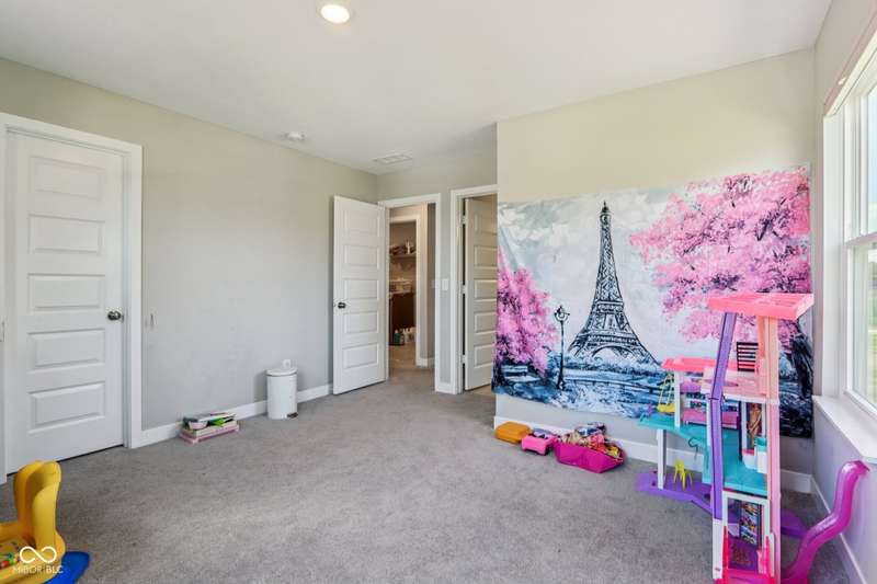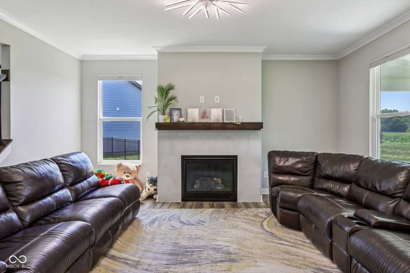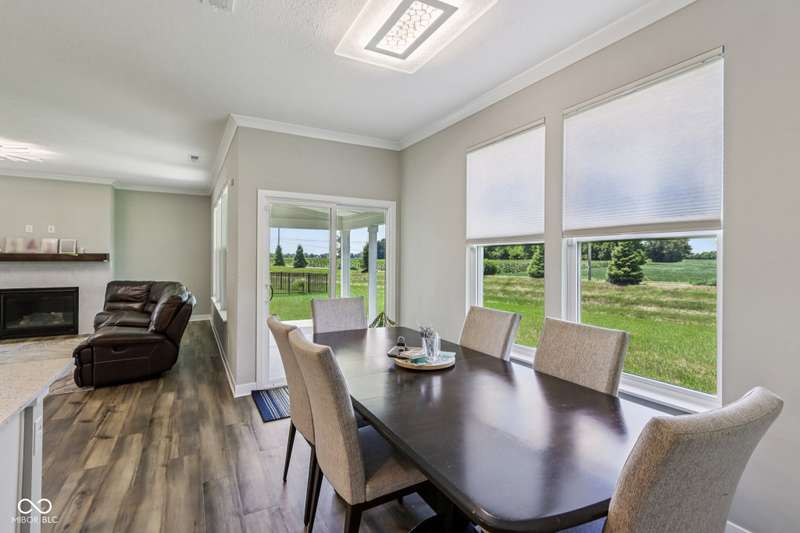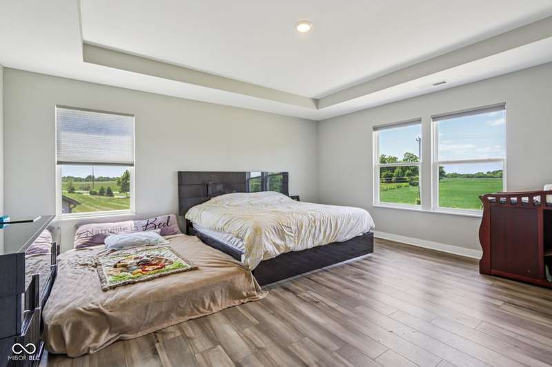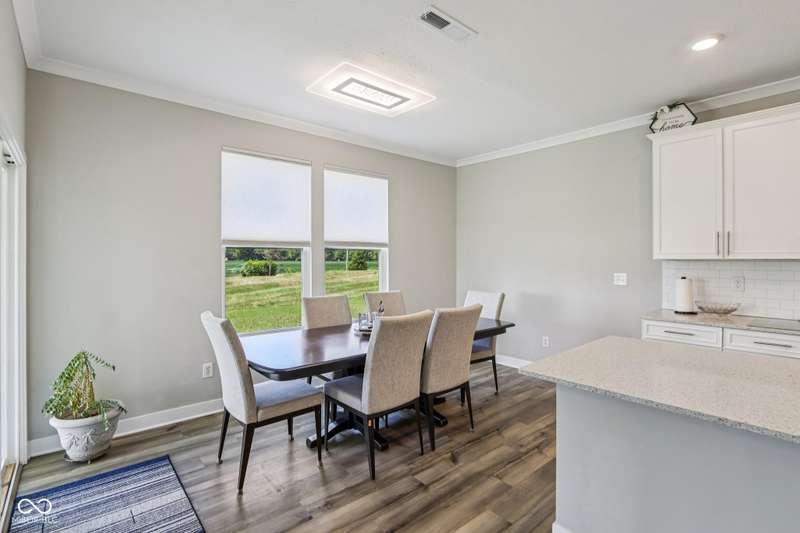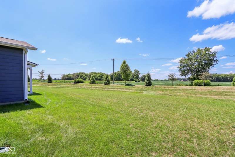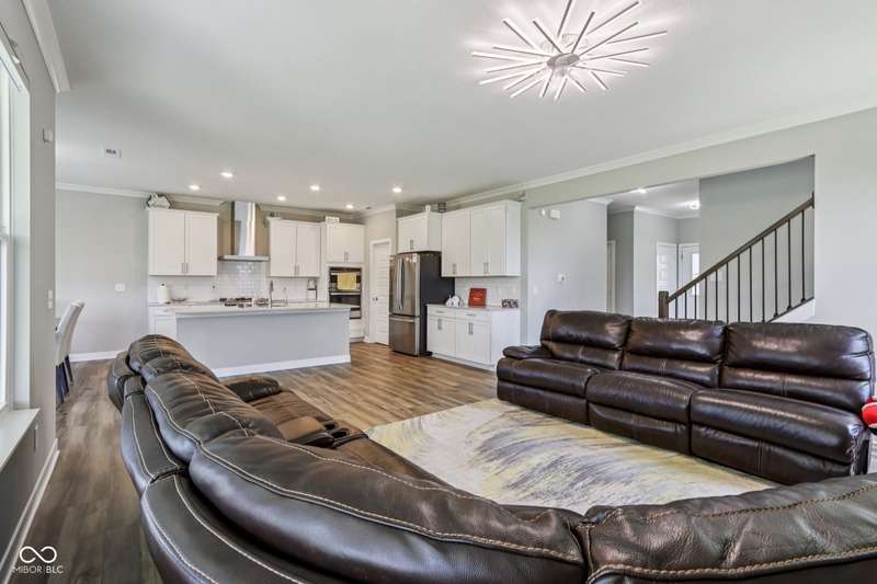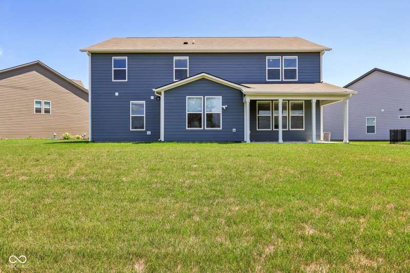 Welcome home to this stunning 5 bedroom, 4.5 bath residence in New Palestine, perfectly situated on a peaceful cul-de-sac. Practically new and filled with upgrades, this home was designed for both everyday living and entertaining. One of only five homes in the neighborhood with a true generational studio suite, it offers unmatched versatility. Complete with a living area, private bedroom and bath, kitchenette, stackable laundry, and its own private entrance, this space is ideal for in-laws, adult children, guests, or even a home office. The open-concept main level features premium LVP flooring, crown molding, a morning room, and a gourmet kitchen with white cabinetry, soft-close drawers, pullout shelves, quartz countertops, a spacious island, gas range with vented hood, plus an additional built-in oven and microwave. Upstairs, a large loft provides extra living space. The luxurious primary suite boasts dual vanities and dual walk-in closets, while the secondary bedrooms are split between an ensuite, and a Jack & Jill bath. Relax on the covered front porch or take in sunsets from the covered back patio with an unbeatable view. Additional highlights include: quartz countertops in bathrooms, higher-quality LVP flooring installed in 2024, full-house water system with reverse osmosis & alkaline water, 3-zone climate control, allergen-friendly living (no pets, no shoes, ducts cleaned post-construction), and generous storage with large closets & pull down ladder attic access. This home combines thoughtful design, premium finishes, and modern comfort. Schedule your showing today-you won't want to miss it!