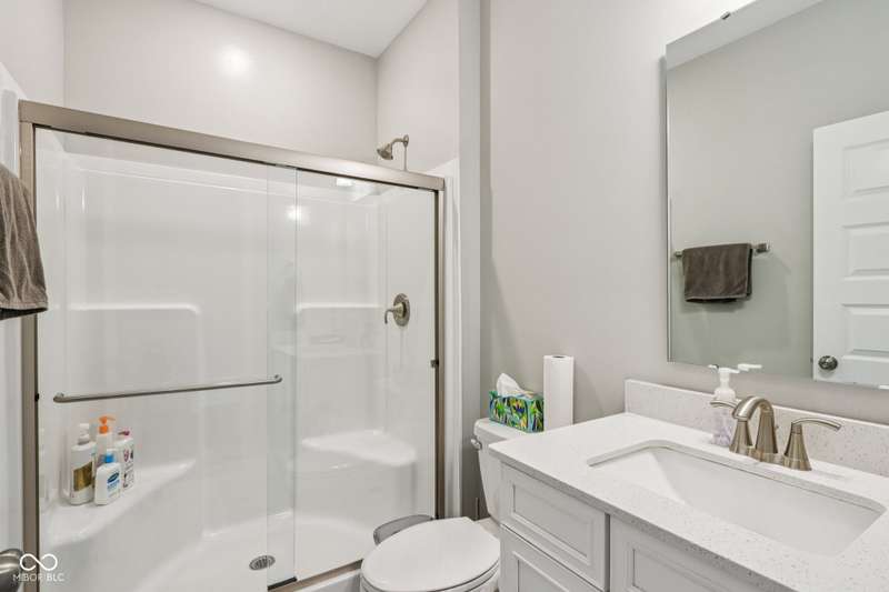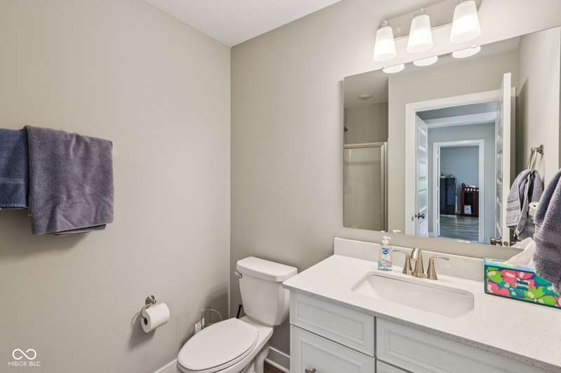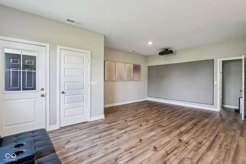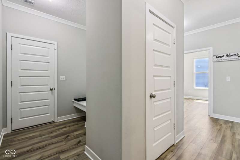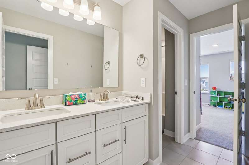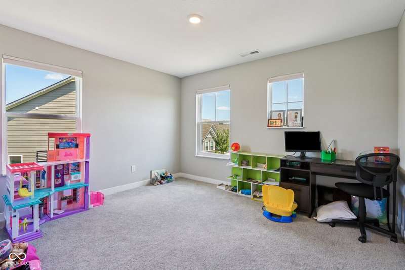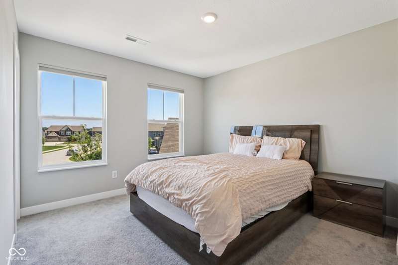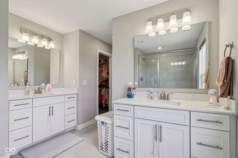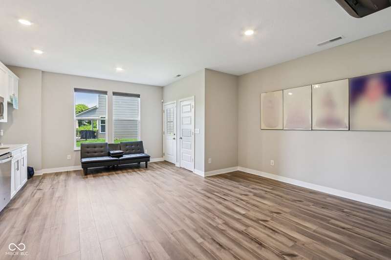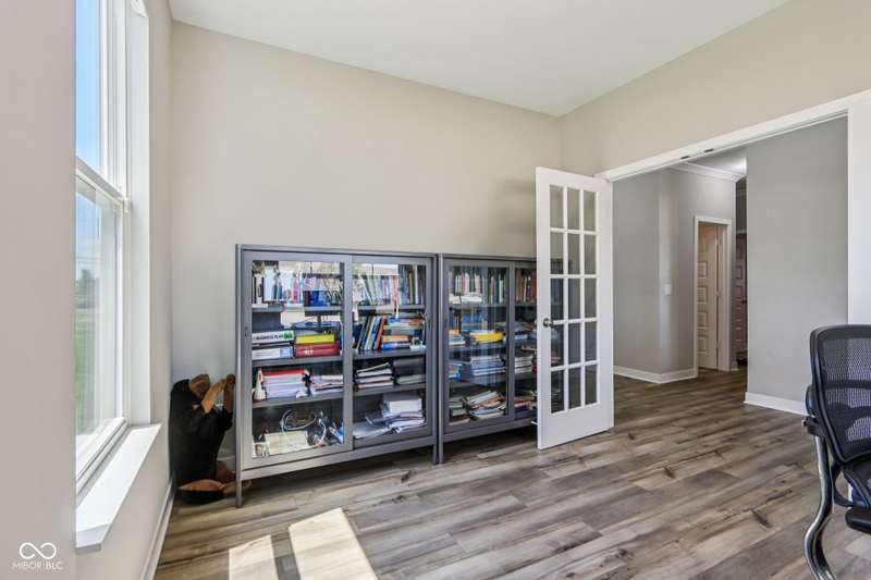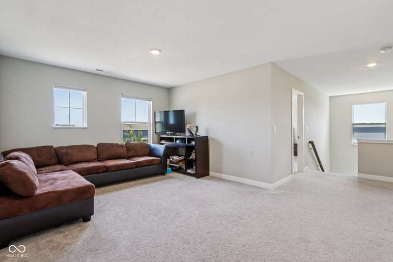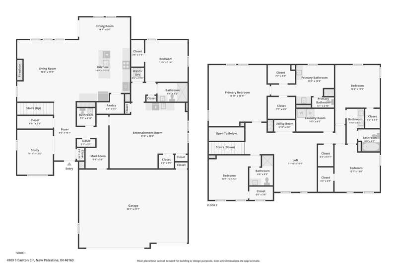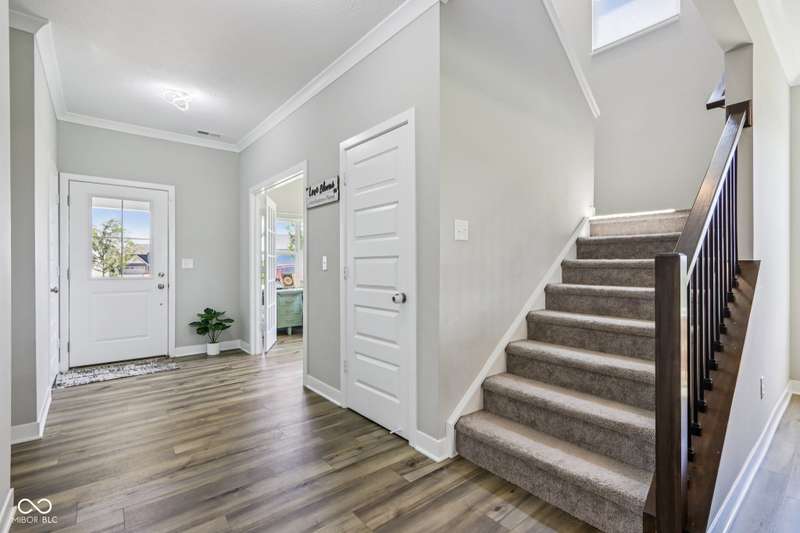 Welcome home to this stunning 5 bedroom, 4.5 bath residence in New Palestine, perfectly situated on a peaceful cul-de-sac. Practically new and filled with upgrades, this home was designed for both everyday living and entertaining. One of only five homes in the neighborhood with a true generational studio suite, it offers unmatched versatility. Complete with a living area, private bedroom and bath, kitchenette, stackable laundry, and its own private entrance, this space is ideal for in-laws, adult children, guests, or even a home office. The open-concept main level features premium LVP flooring, crown molding, a morning room, and a gourmet kitchen with white cabinetry, soft-close drawers, pullout shelves, quartz countertops, a spacious island, gas range with vented hood, plus an additional built-in oven and microwave. Upstairs, a large loft provides extra living space. The luxurious primary suite boasts dual vanities and dual walk-in closets, while the secondary bedrooms are split between an ensuite, and a Jack & Jill bath. Relax on the covered front porch or take in sunsets from the covered back patio with an unbeatable view. Additional highlights include: quartz countertops in bathrooms, higher-quality LVP flooring installed in 2024, full-house water system with reverse osmosis & alkaline water, 3-zone climate control, allergen-friendly living (no pets, no shoes, ducts cleaned post-construction), and generous storage with large closets & pull down ladder attic access. This home combines thoughtful design, premium finishes, and modern comfort. Schedule your showing today-you won't want to miss it!