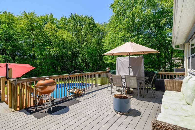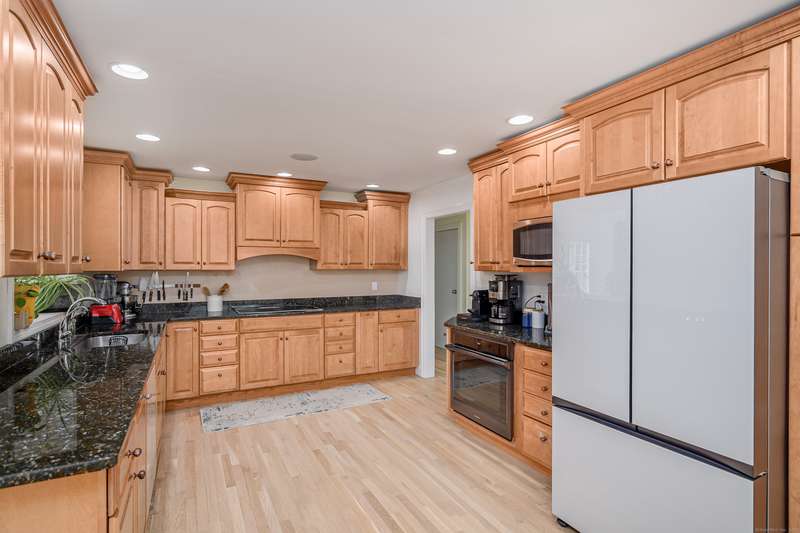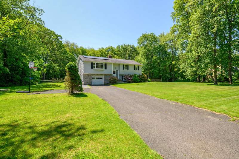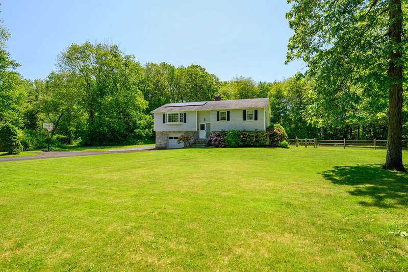 Priced to sell. This turn-key beautiful and spacious raised ranch is full of 2200+ sqft of unexpected space and charm. Tucked away in a quiet cul-de-sac neighborhood. Perfectly situated on a flat 1.45 acres of serene land.The previous expansion includes a dining room drenched with natural light and an adjoining private home office. The sizeable updated kitchen with new appliances, granite countertops opens to an oversized living room with plenty of space for gatherings. The remaining main floor living includes a primary bedroom with 1/2 bath along with 2 additional bedrooms and a full bath. Head downstairs to the finished lower level. Fully finished with full bath, separate laundry room, an optional wood stove (hook-up in place) and direct access to the garage and yard. This versatile square footage is ideal for multi-generational living, a guest suite or home gym or theater. The possibilities are endless. The oversized 1-car garage has tons of additional storage space. Excellent commu